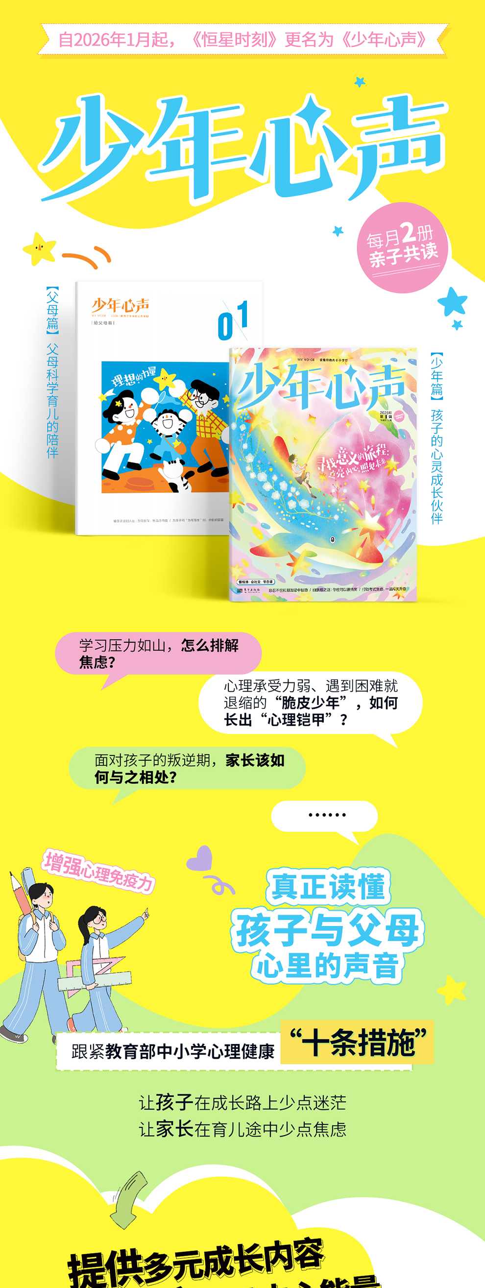 说明:接杂志社通知,《恒星时刻》2026年1月开始更名为《少年心声》。
