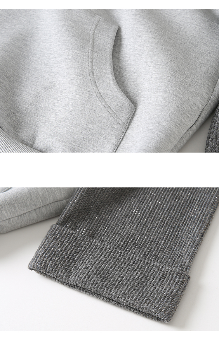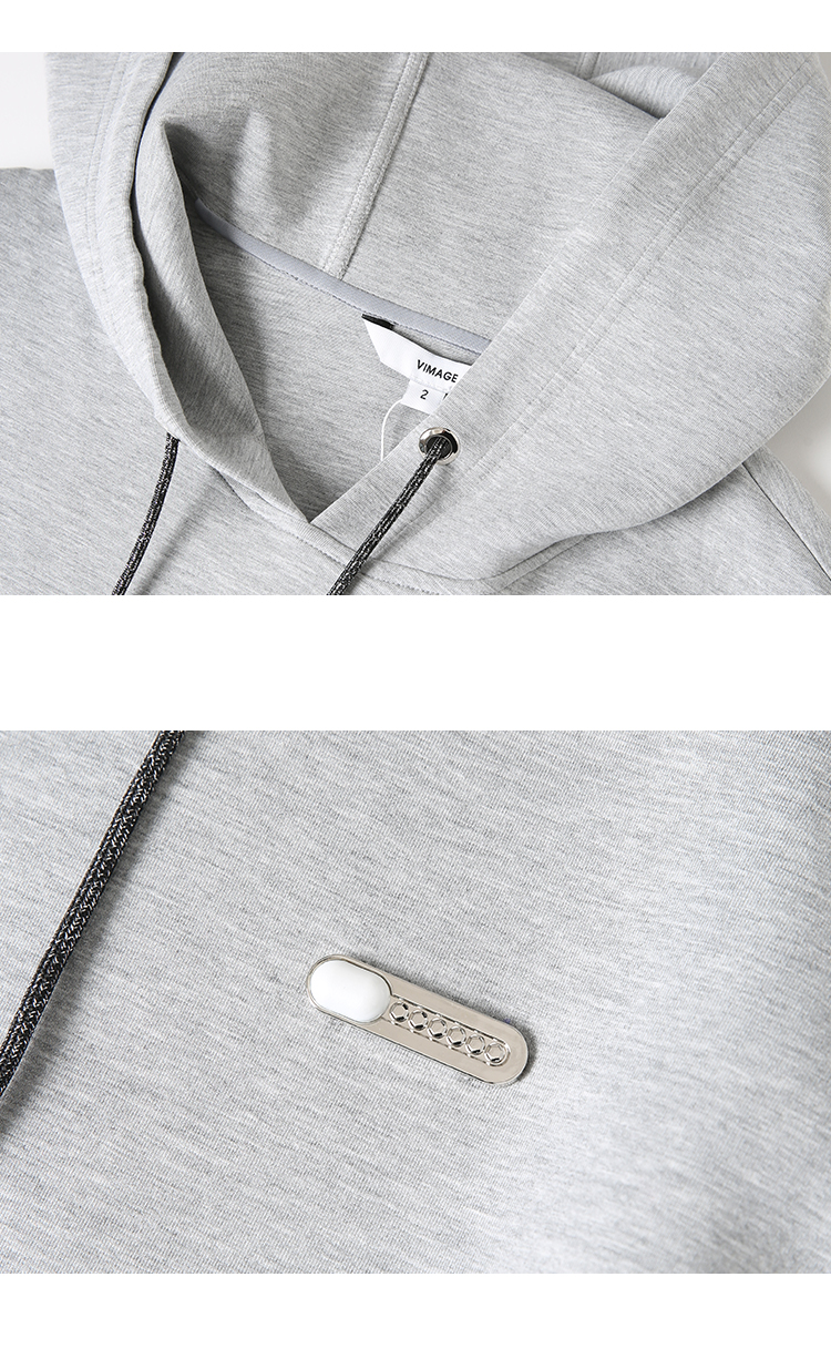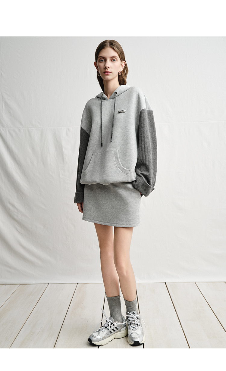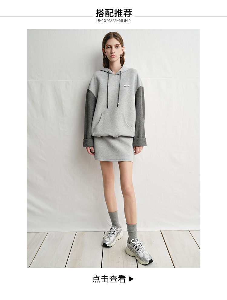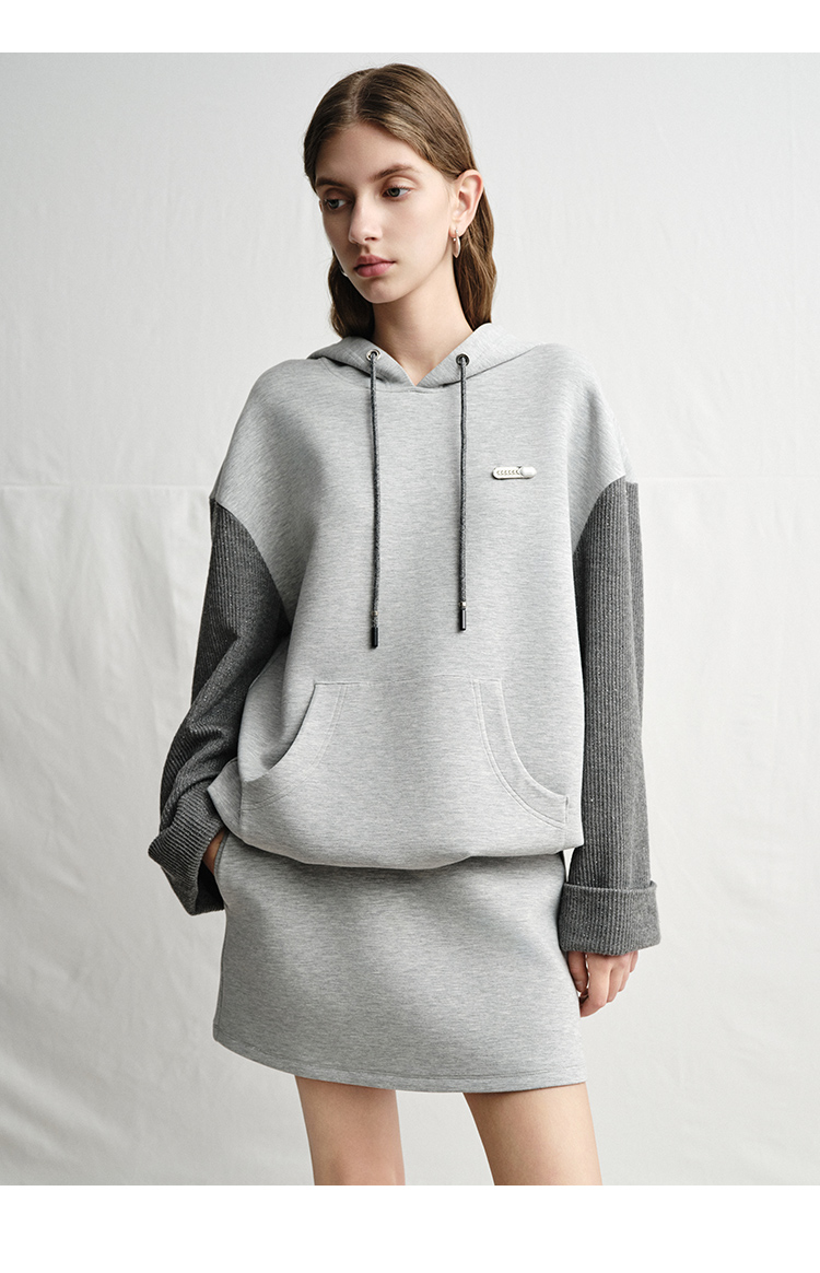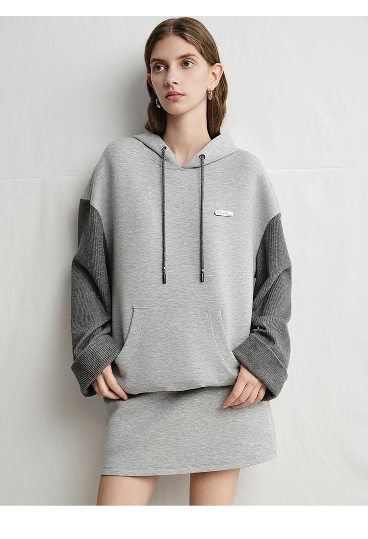 VIMAGE纬漫纪宽松休闲显瘦落肩拼接连帽灰色百搭卫衣2025春季新款V2313901