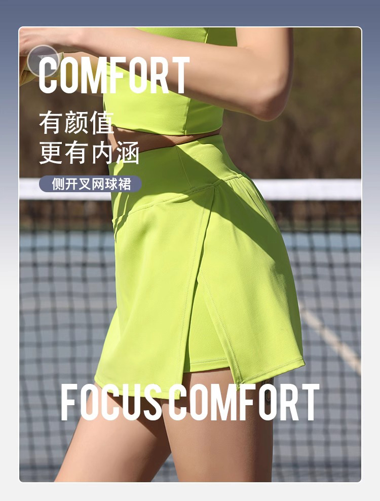 【3~5天发货】跃牌【美度空间】系列 BR冰薄荷夏季假两件运动短裙女高腰开叉网球裙内侧口袋健身裙子41011