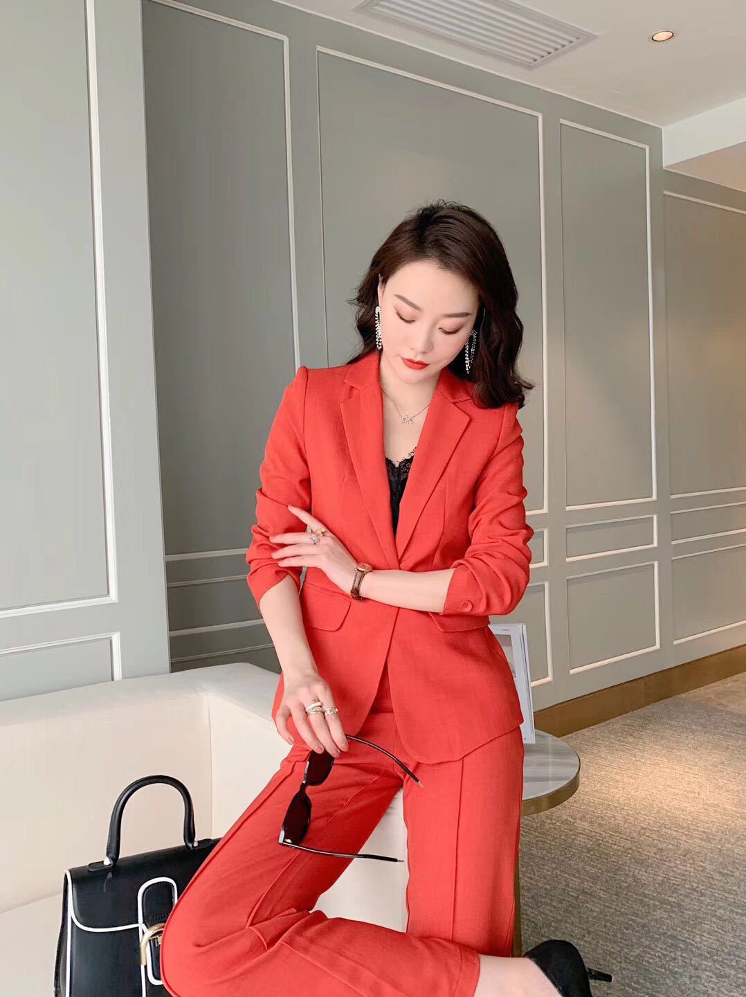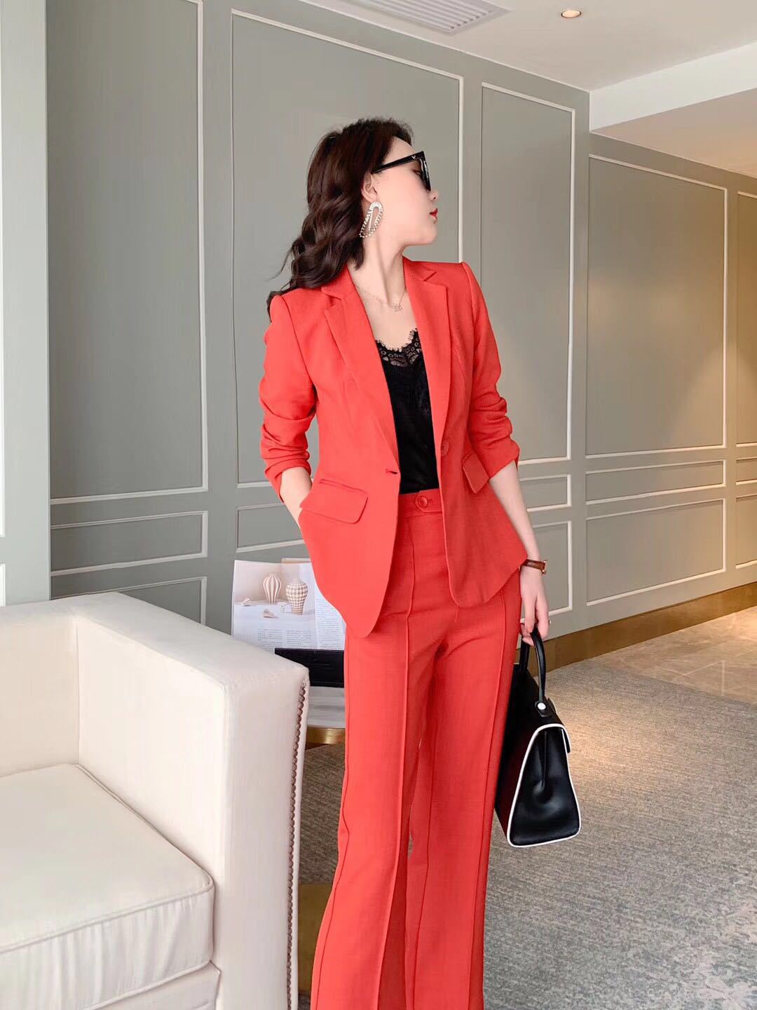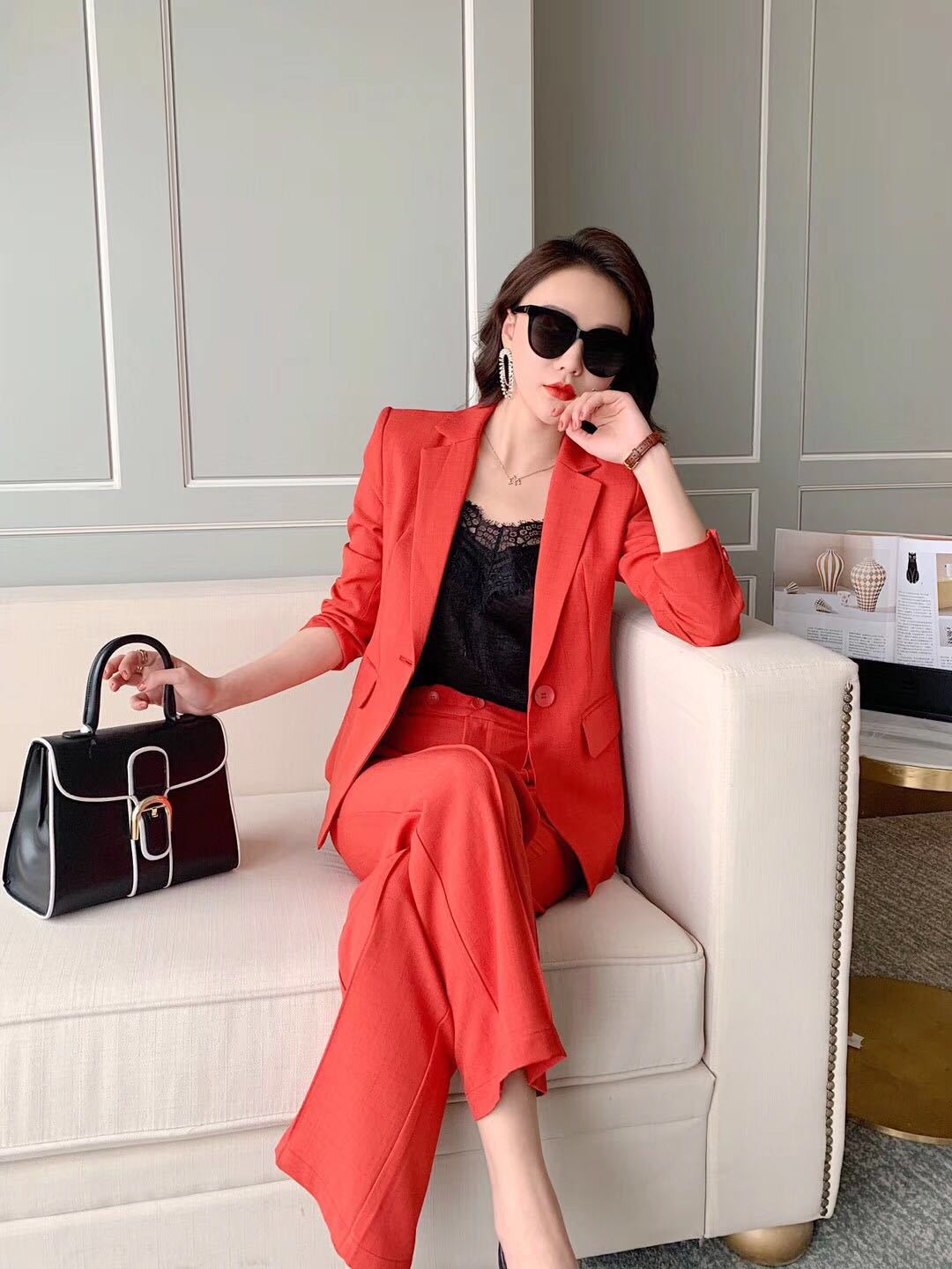 KLN-20201014春季新款女装时尚小西装直筒裤两件套