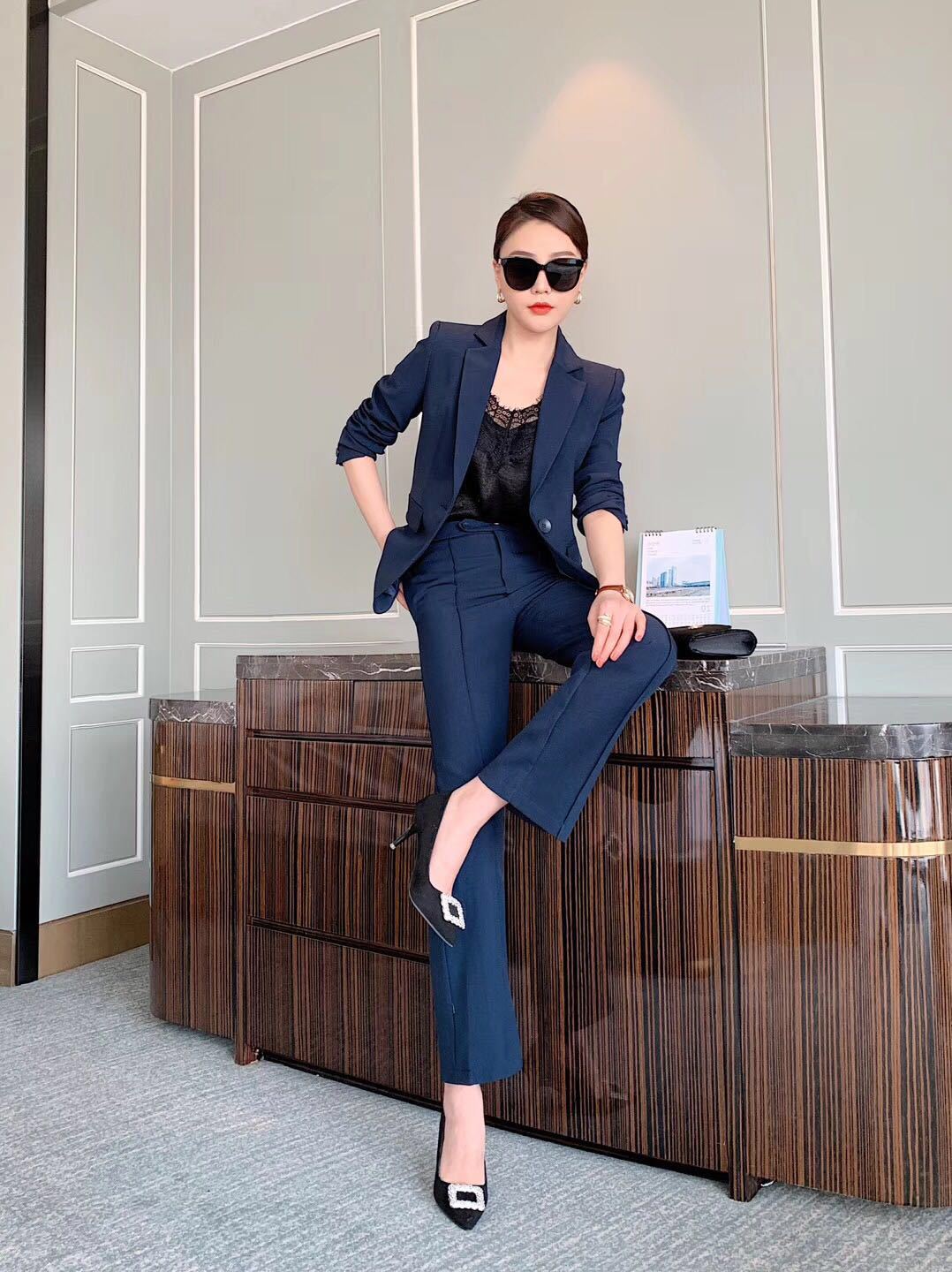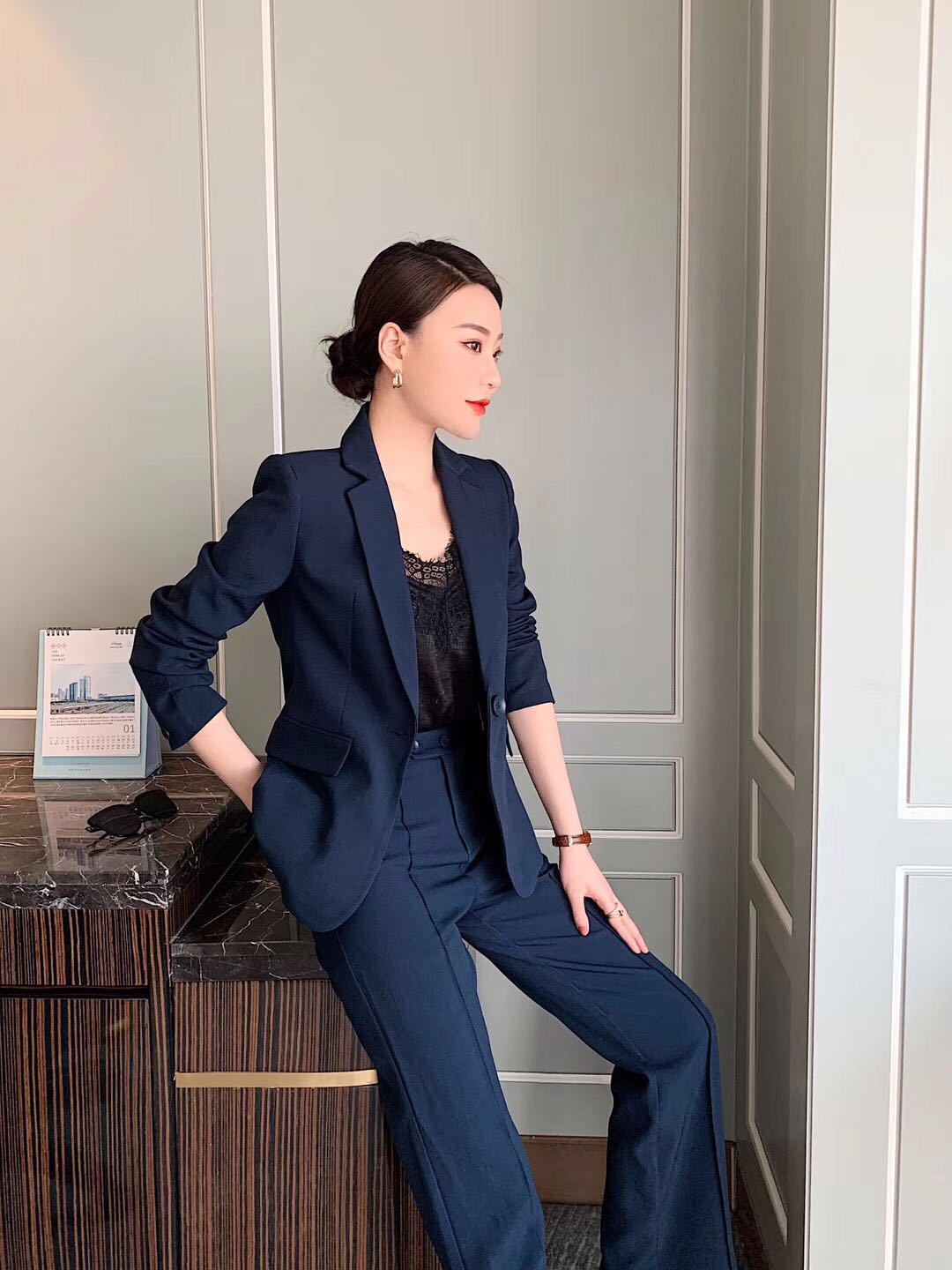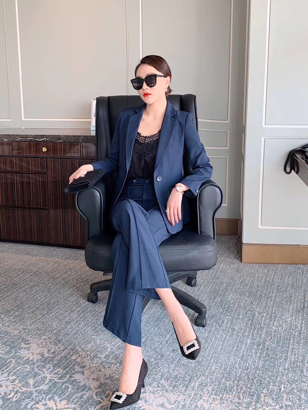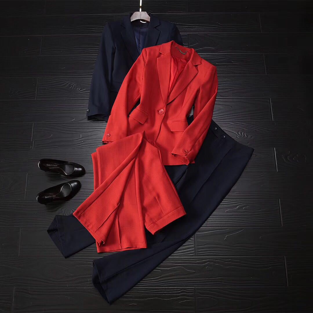 KLN-20201014春季新款女装时尚小西装直筒裤两件套