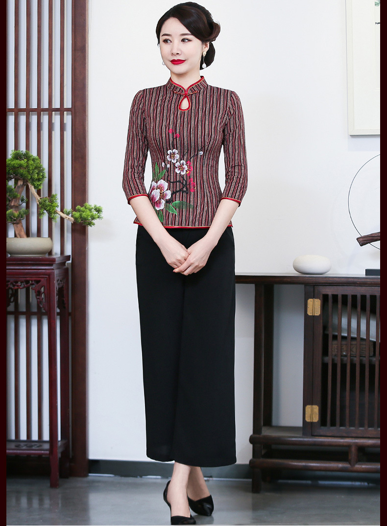 LYE2050新款改良亚麻短袖唐装套装