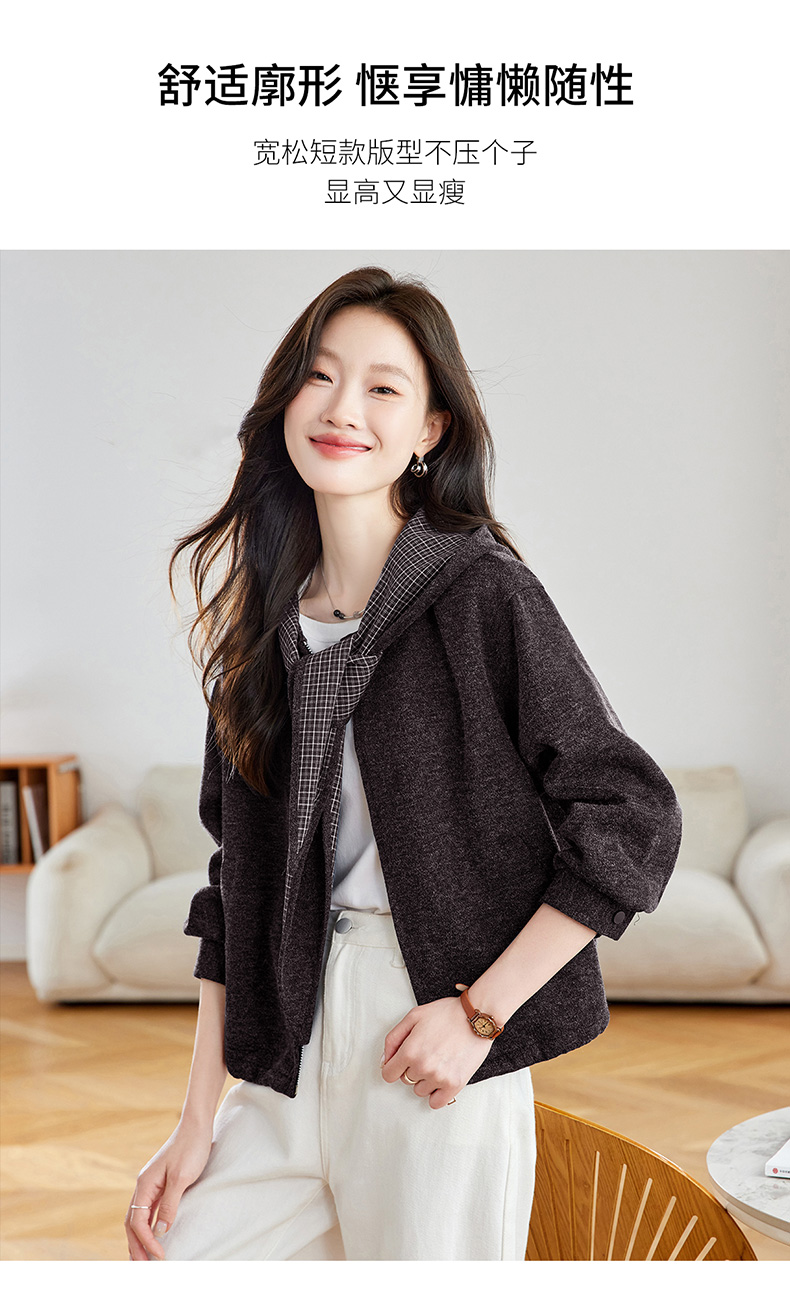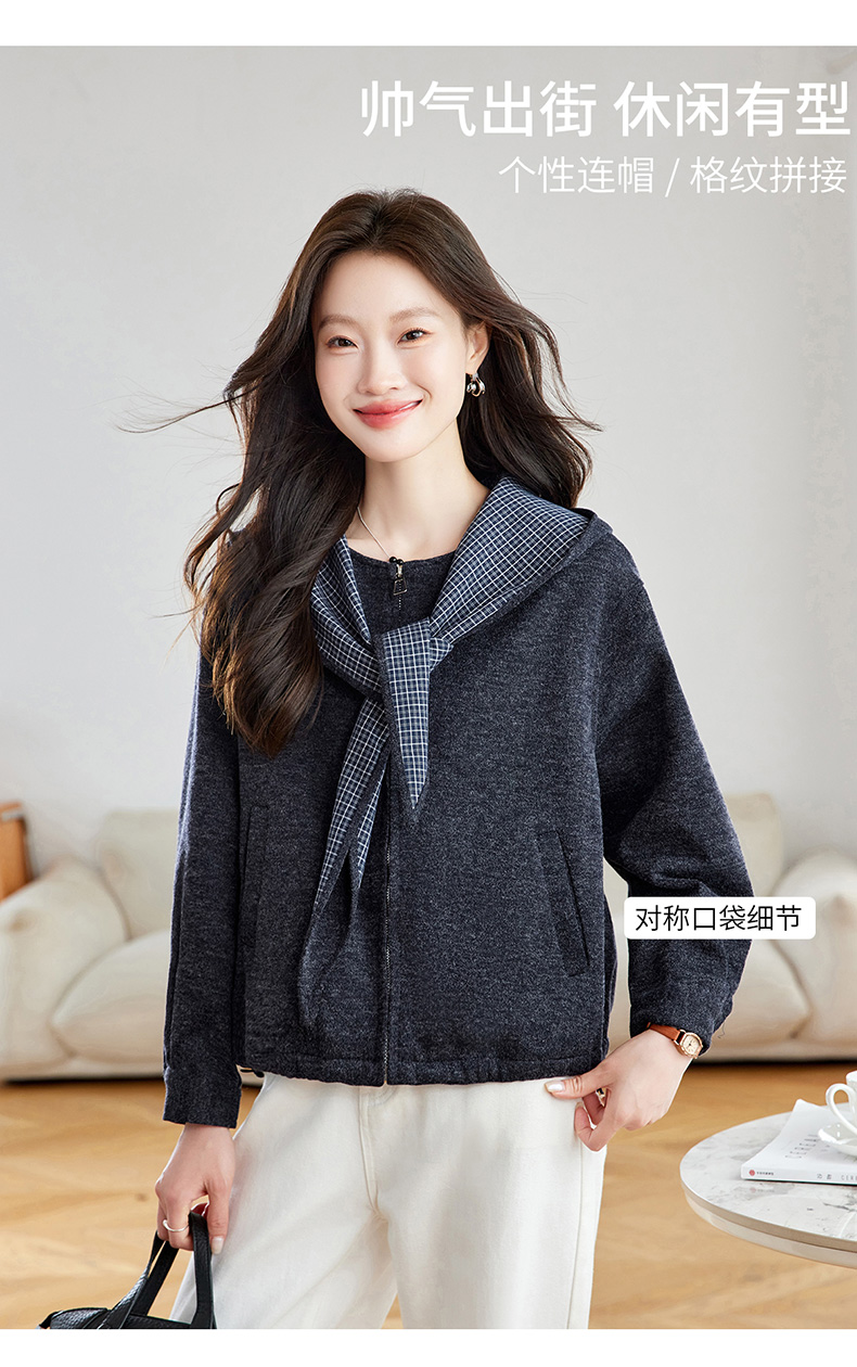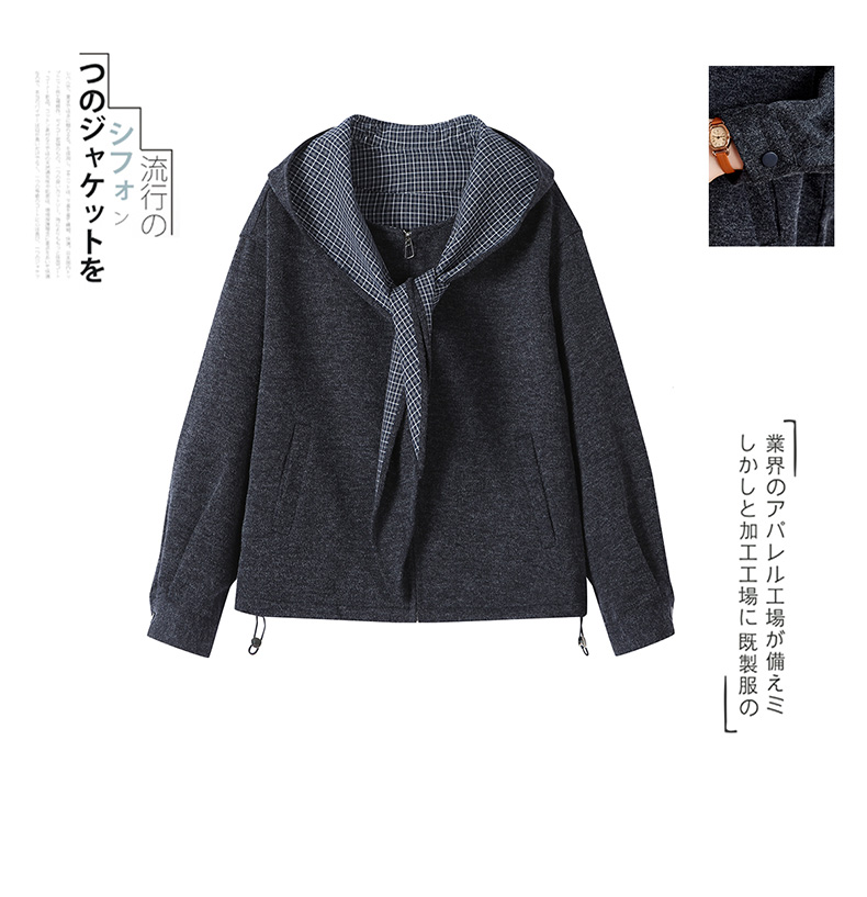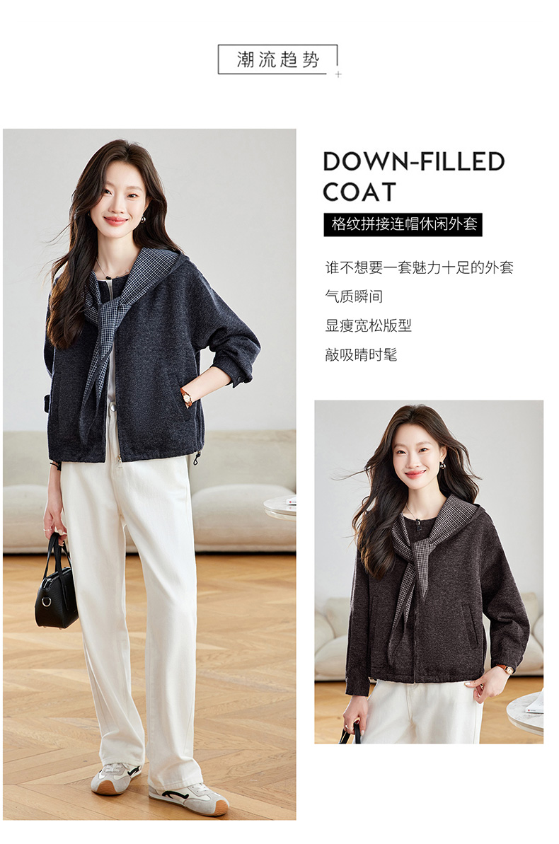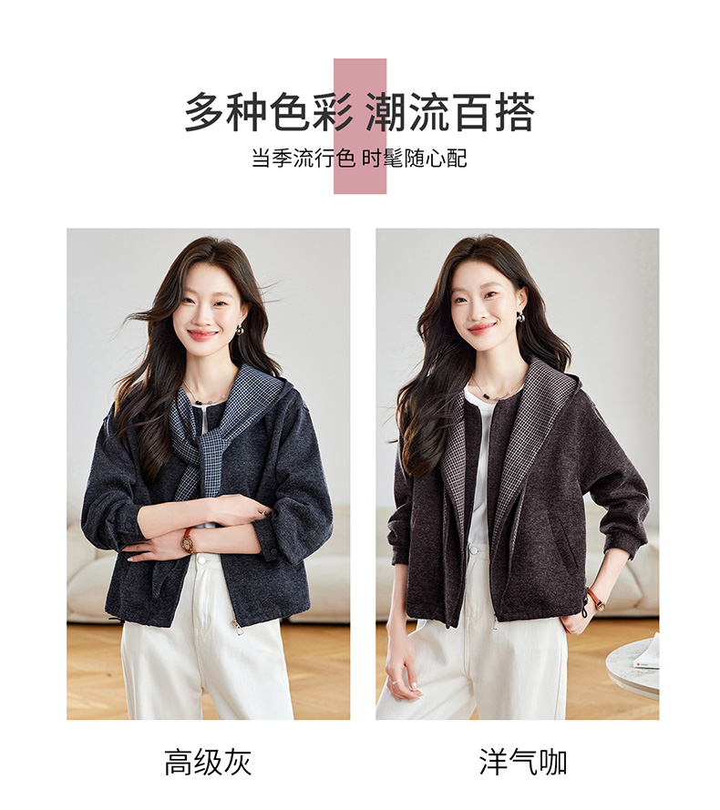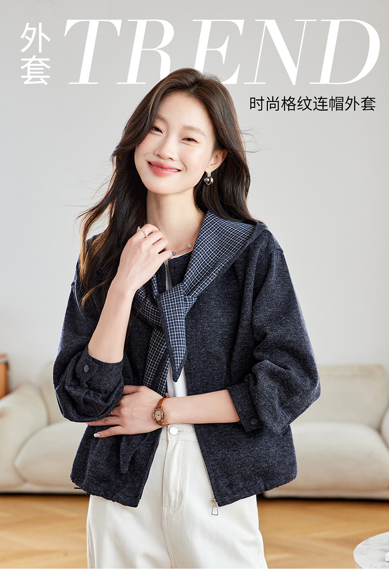 时尚格子拼接,高级灰上衣小个子外套HR-MUQQ1334