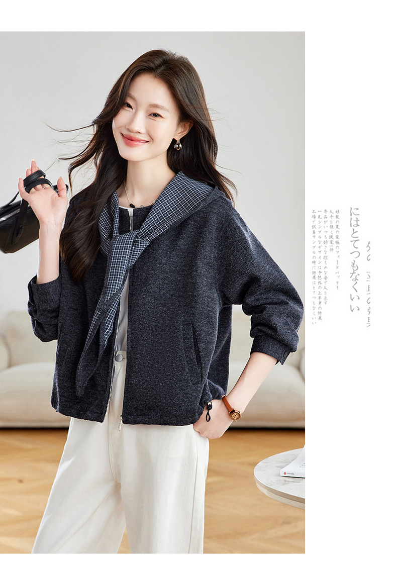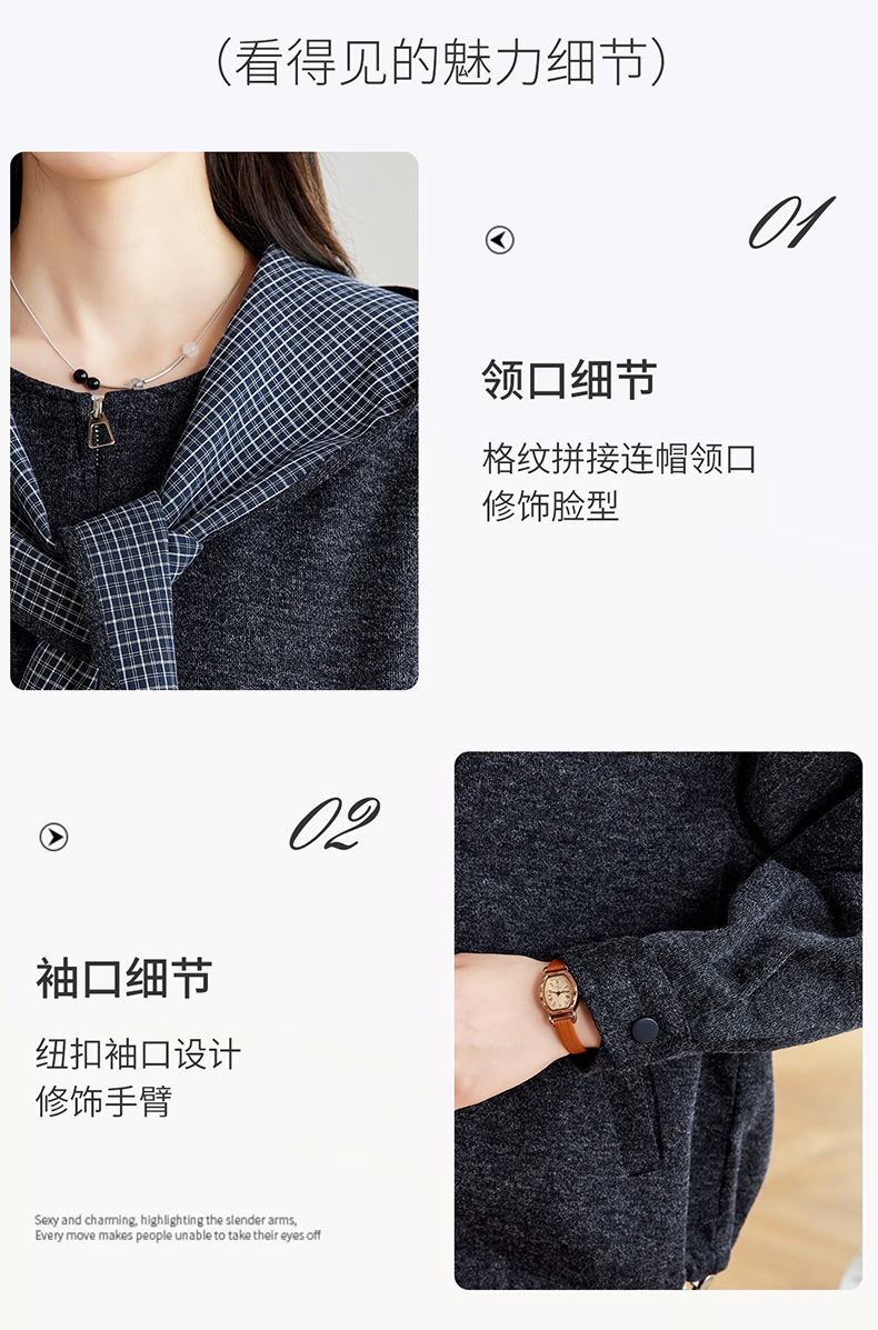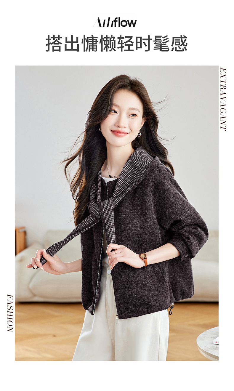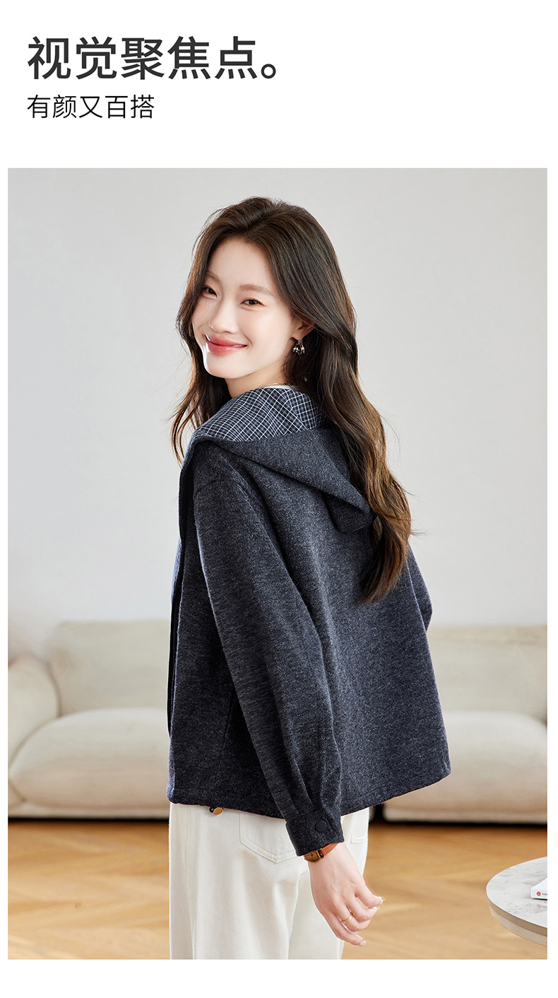 时尚格子拼接,高级灰上衣小个子外套HR-MUQQ1334