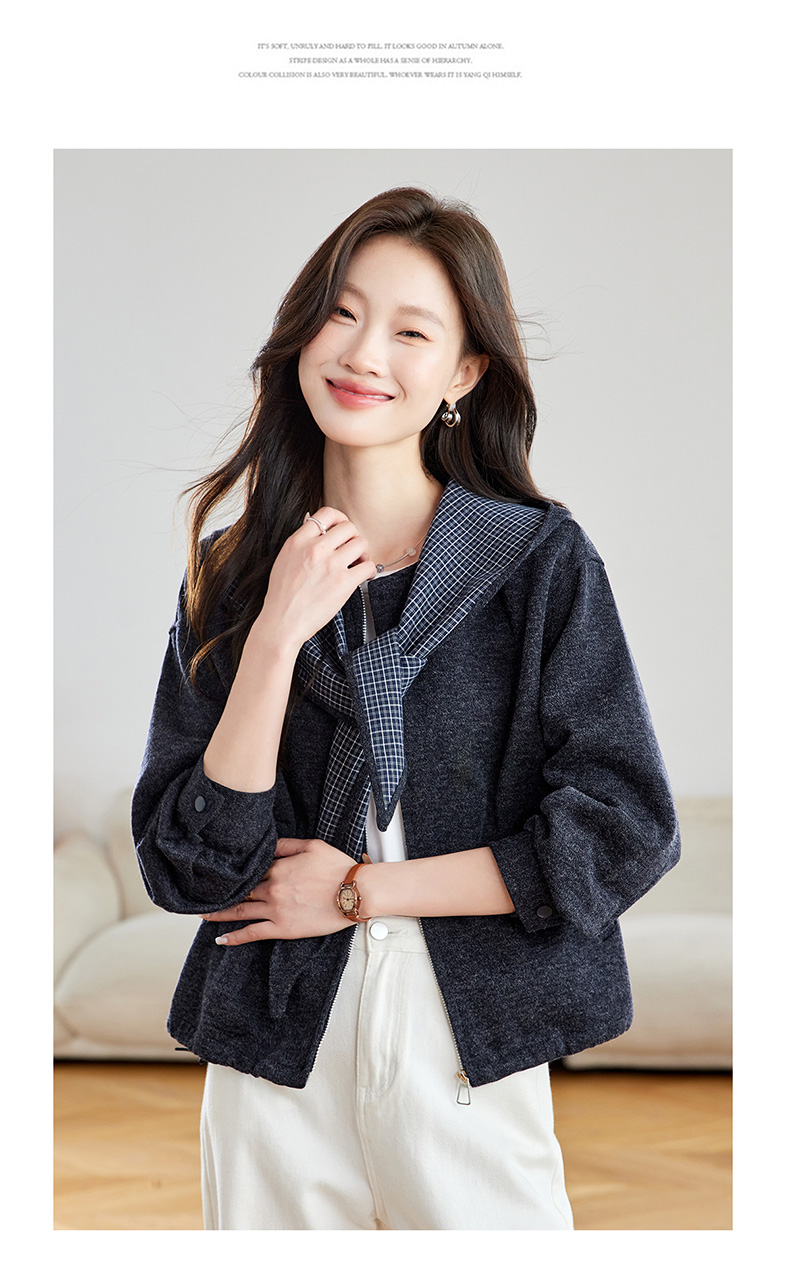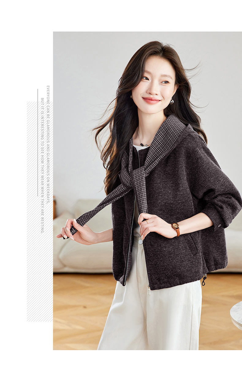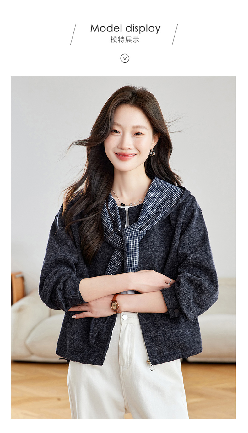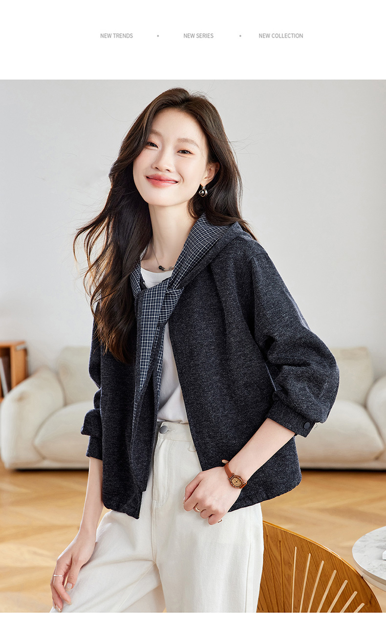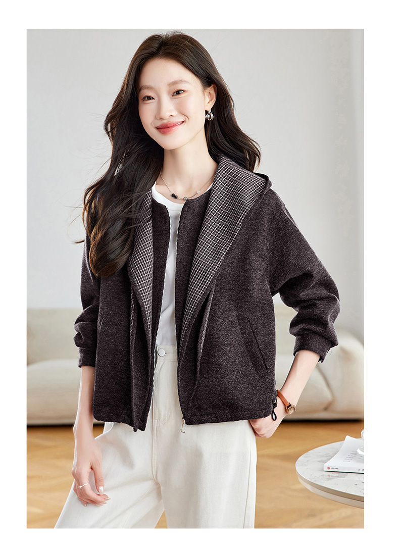 时尚格子拼接,高级灰上衣小个子外套HR-MUQQ1334