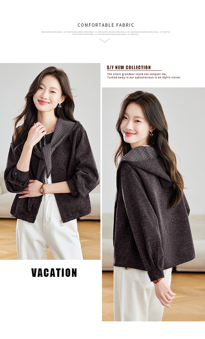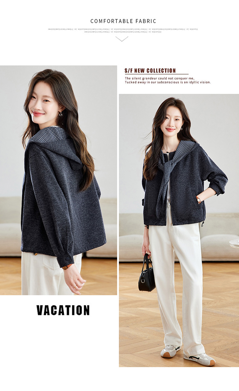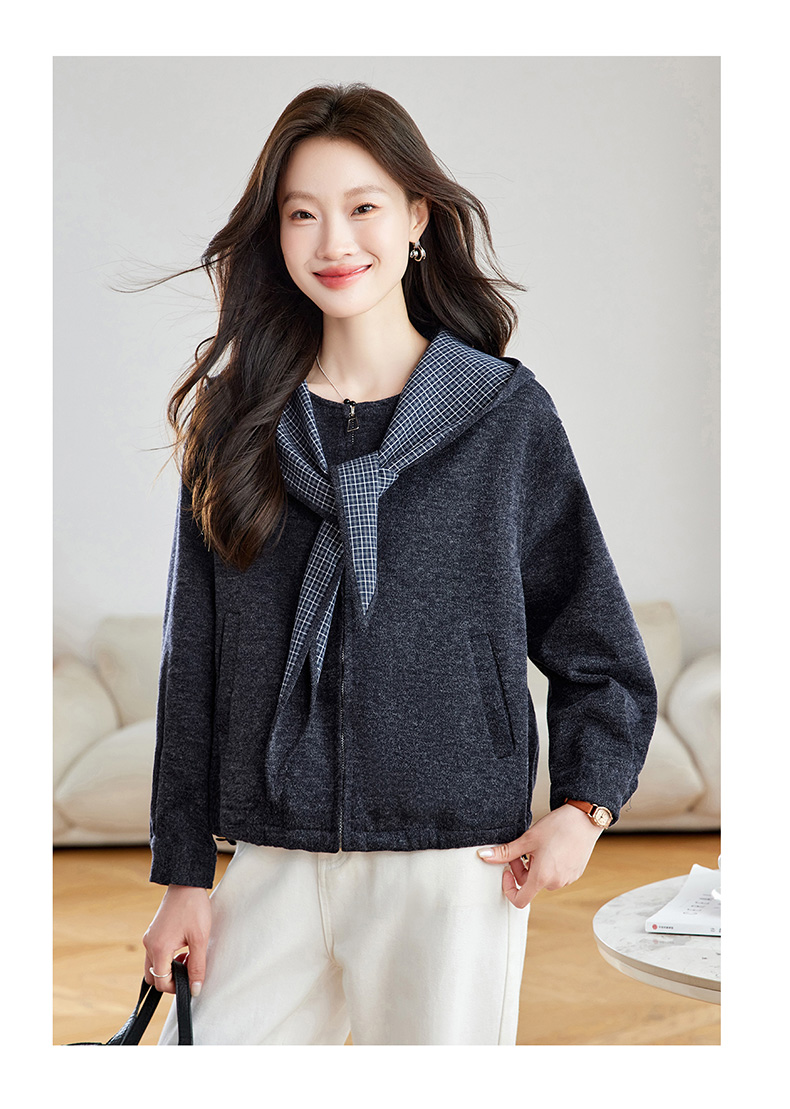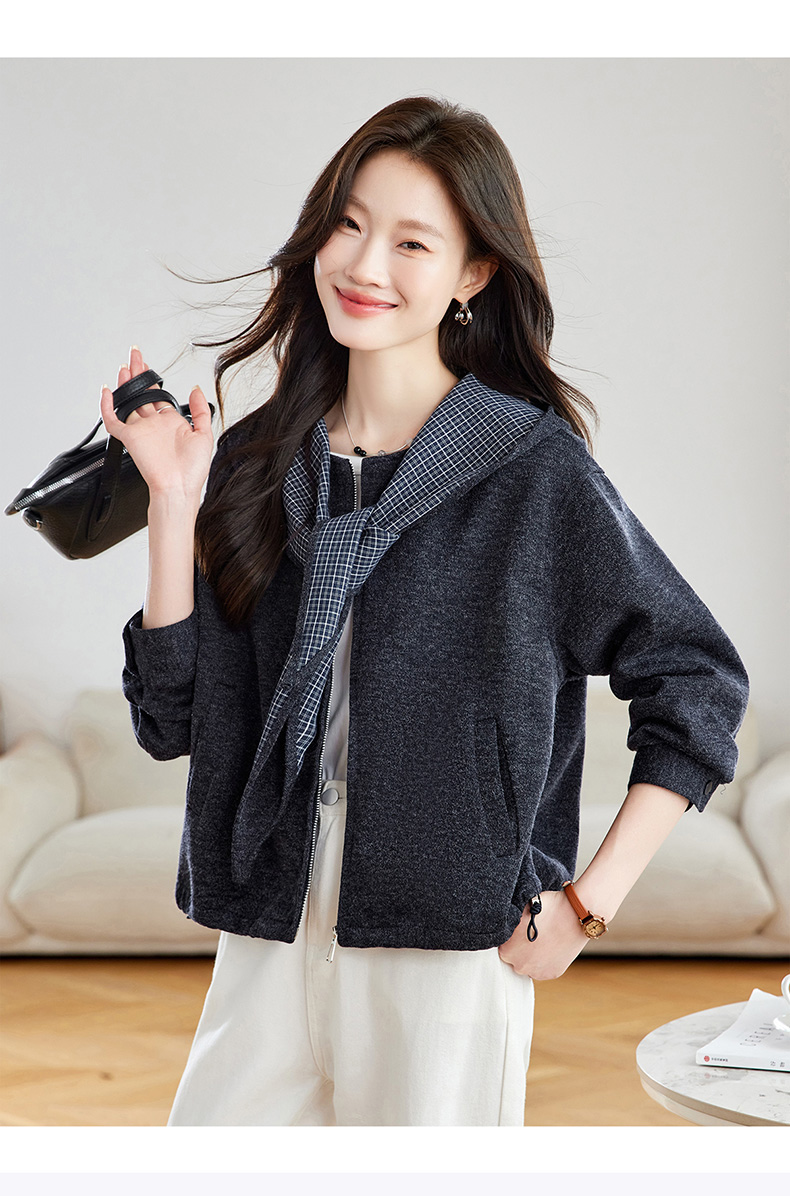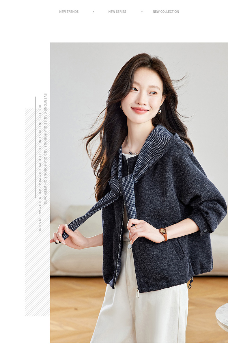 时尚格子拼接,高级灰上衣小个子外套HR-MUQQ1334