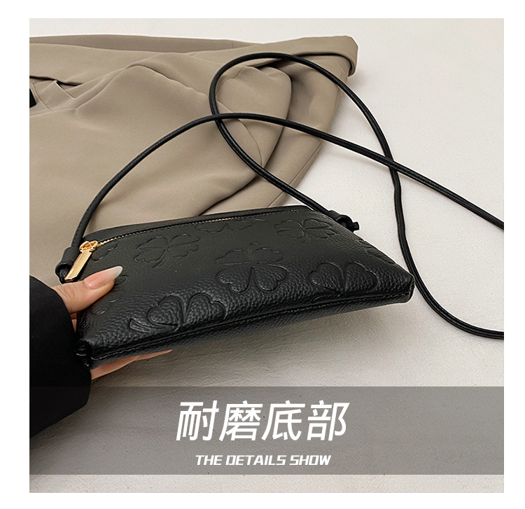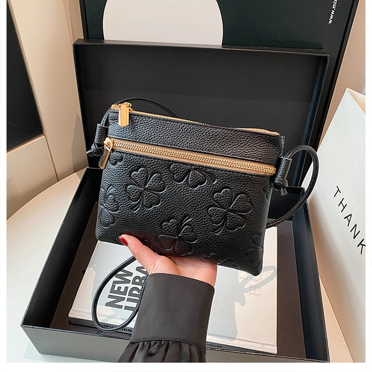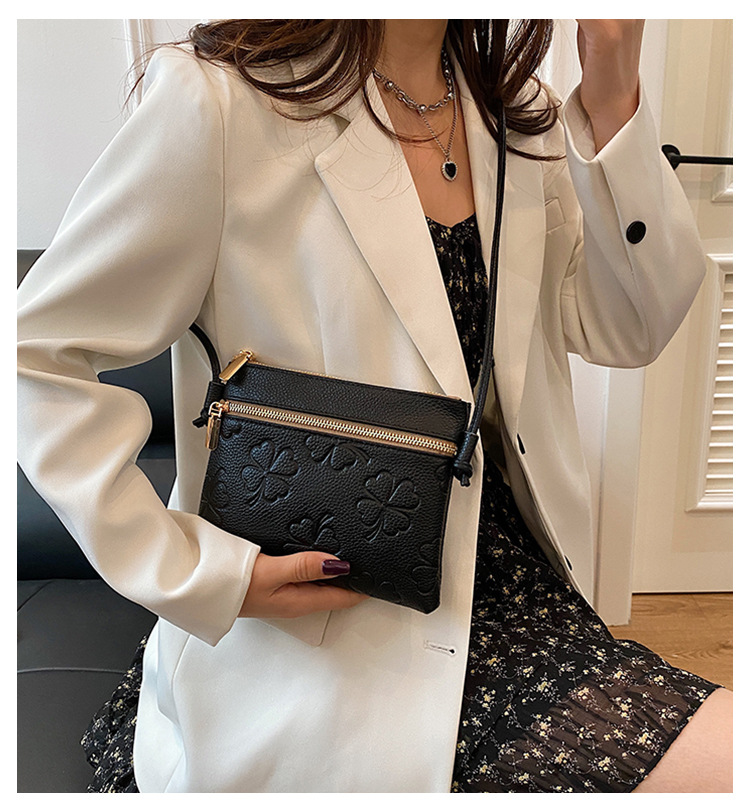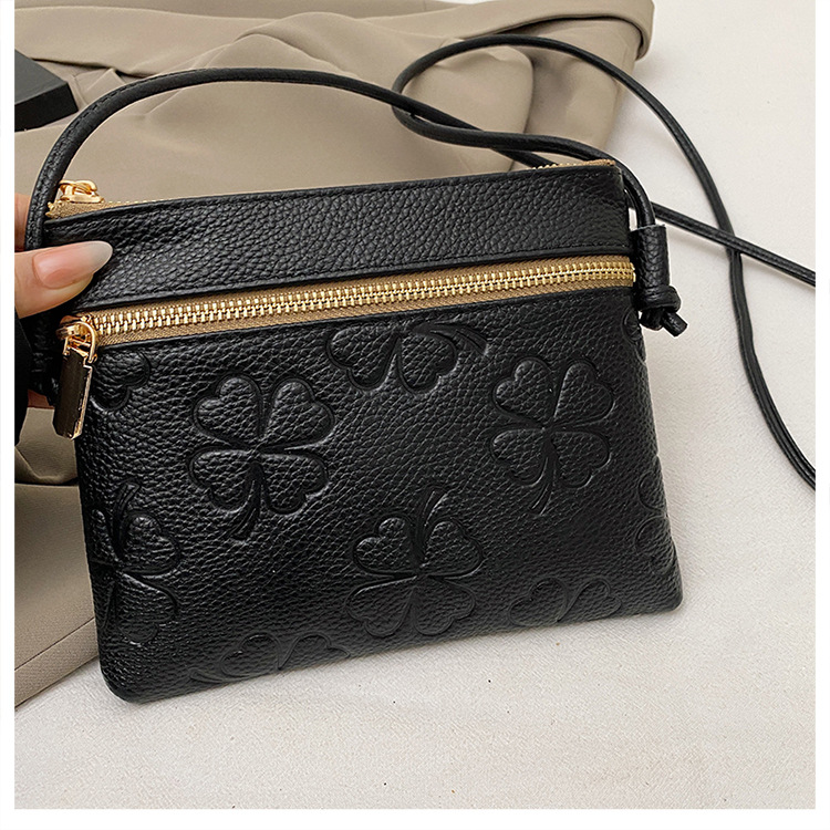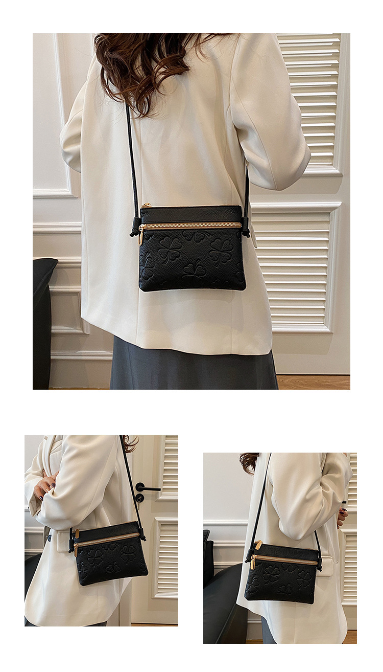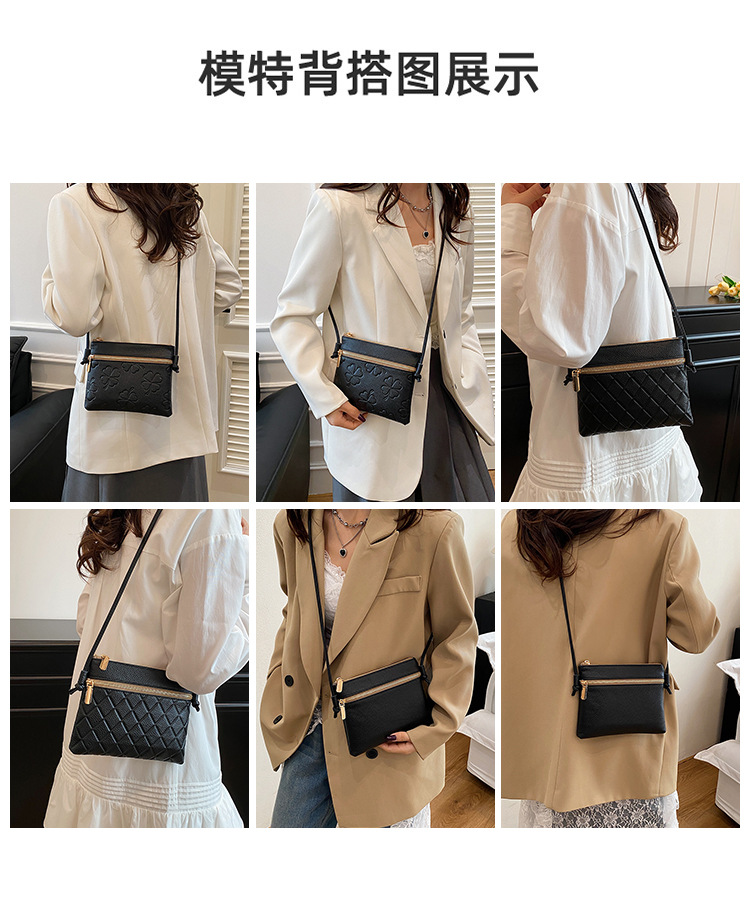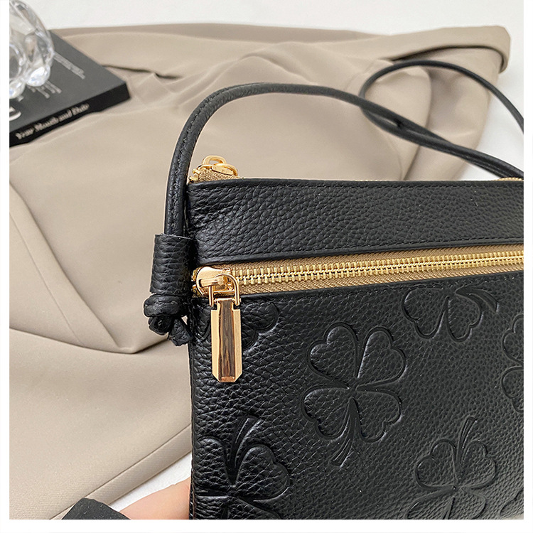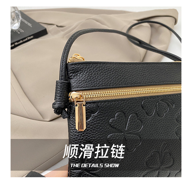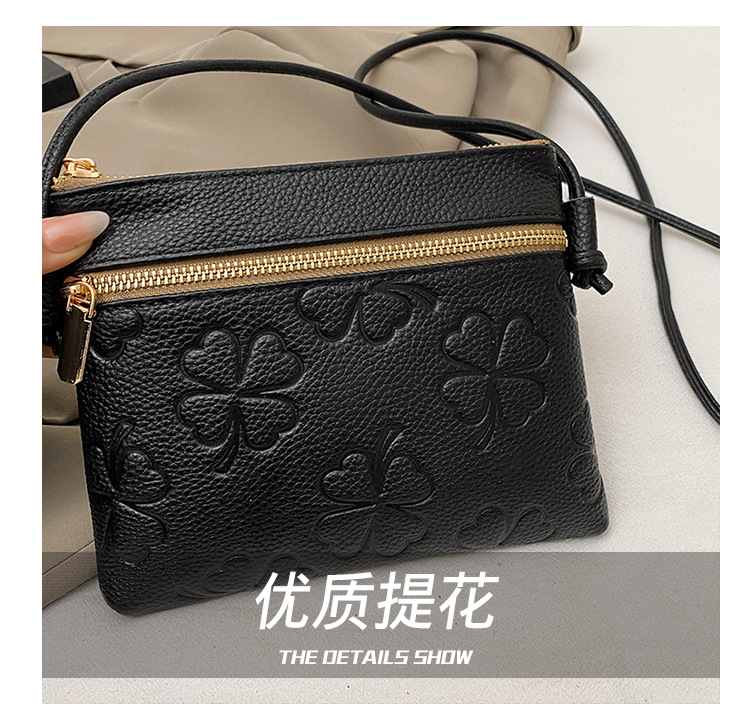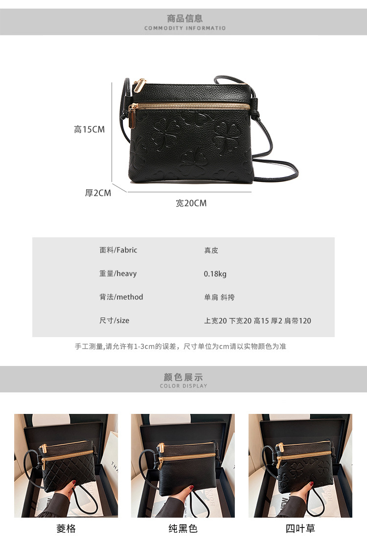 雀说 真皮菱格压花单肩包四叶草斜挎包小方包2037