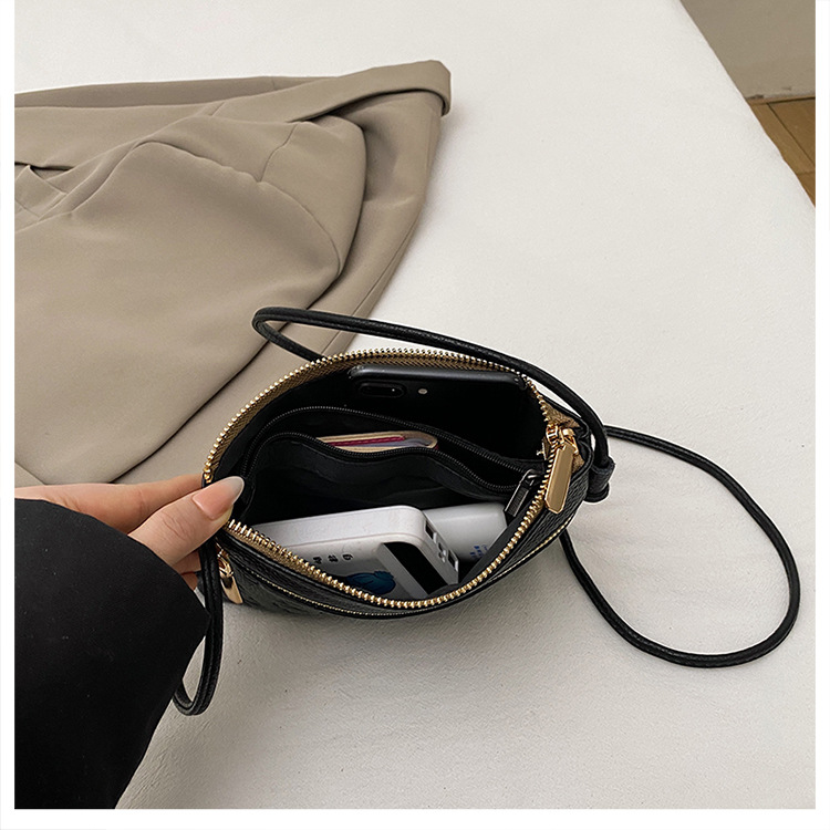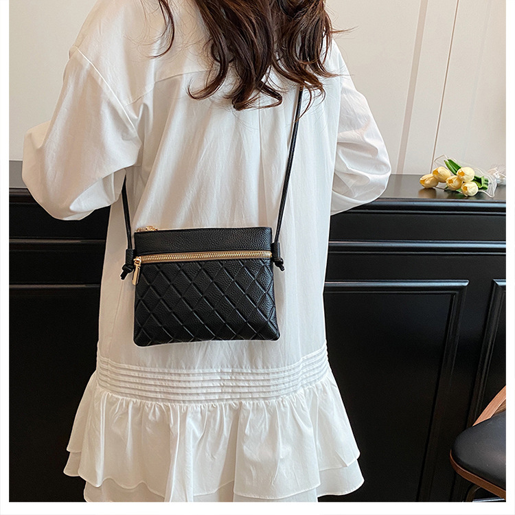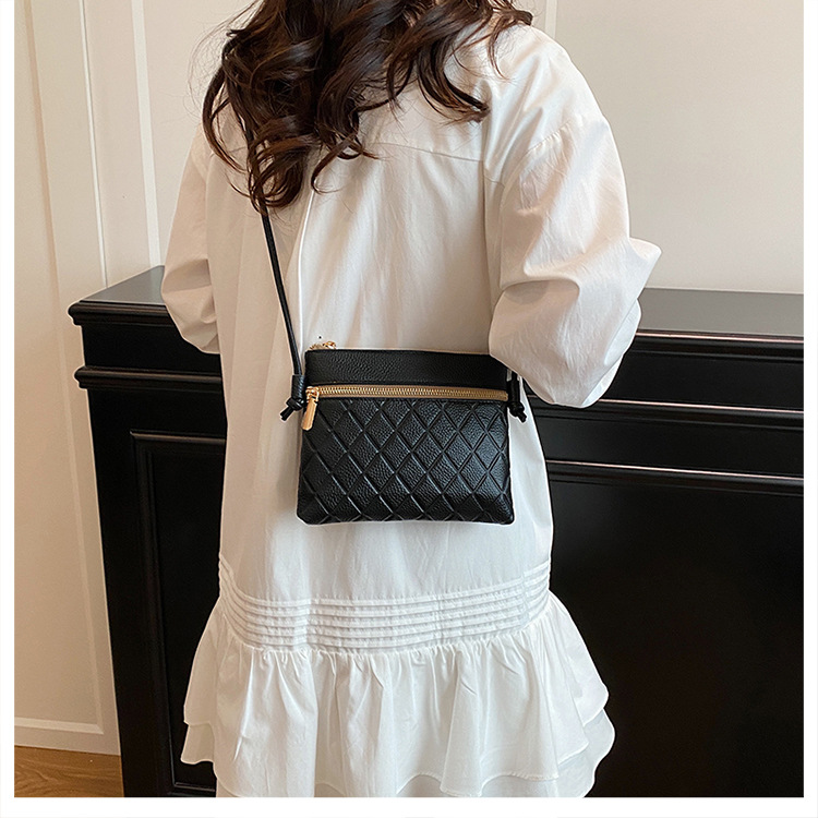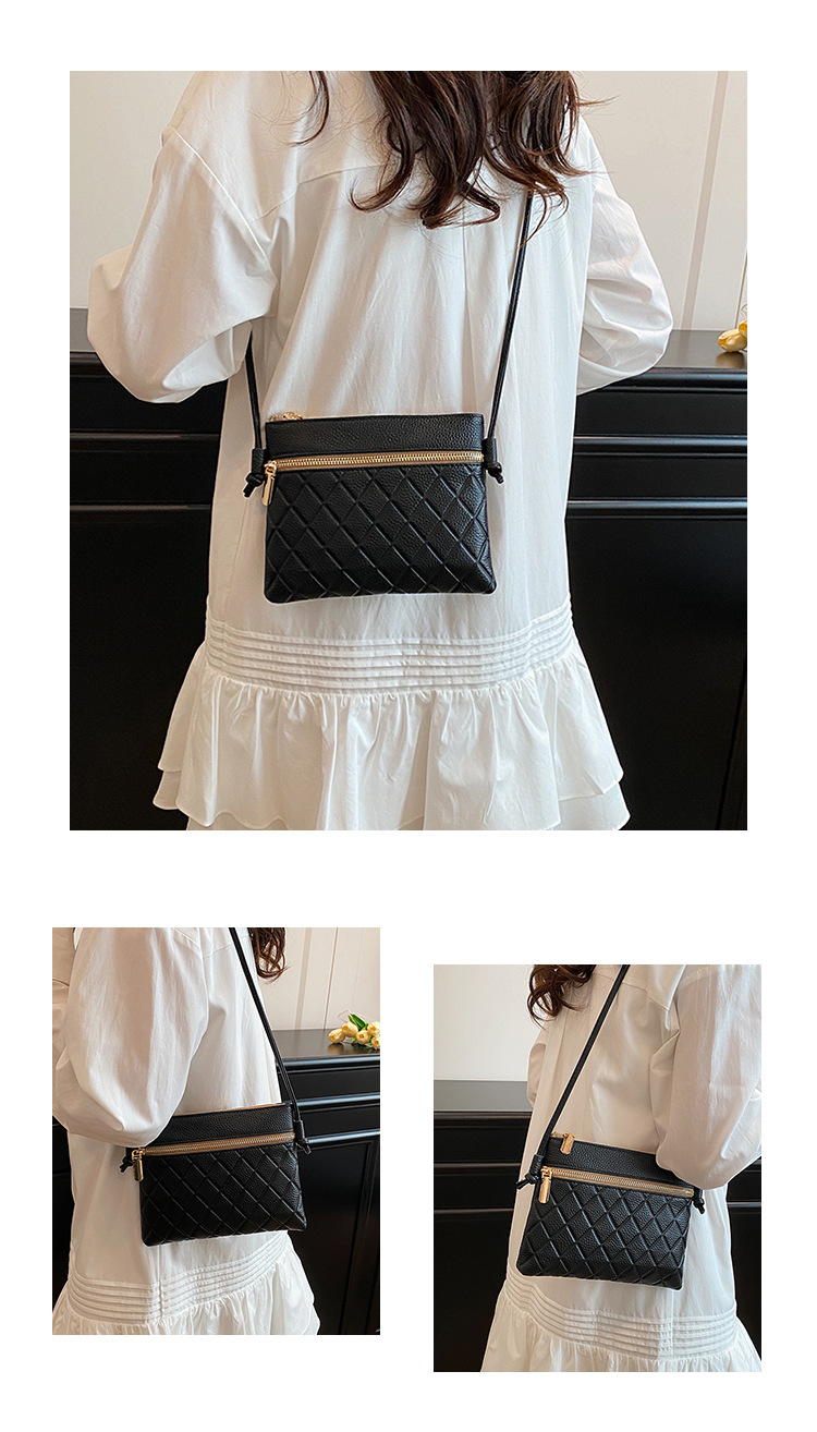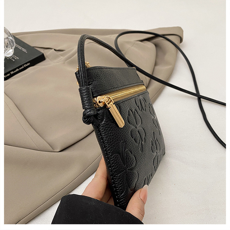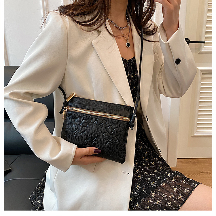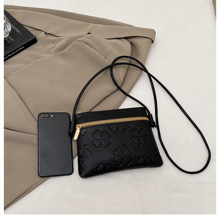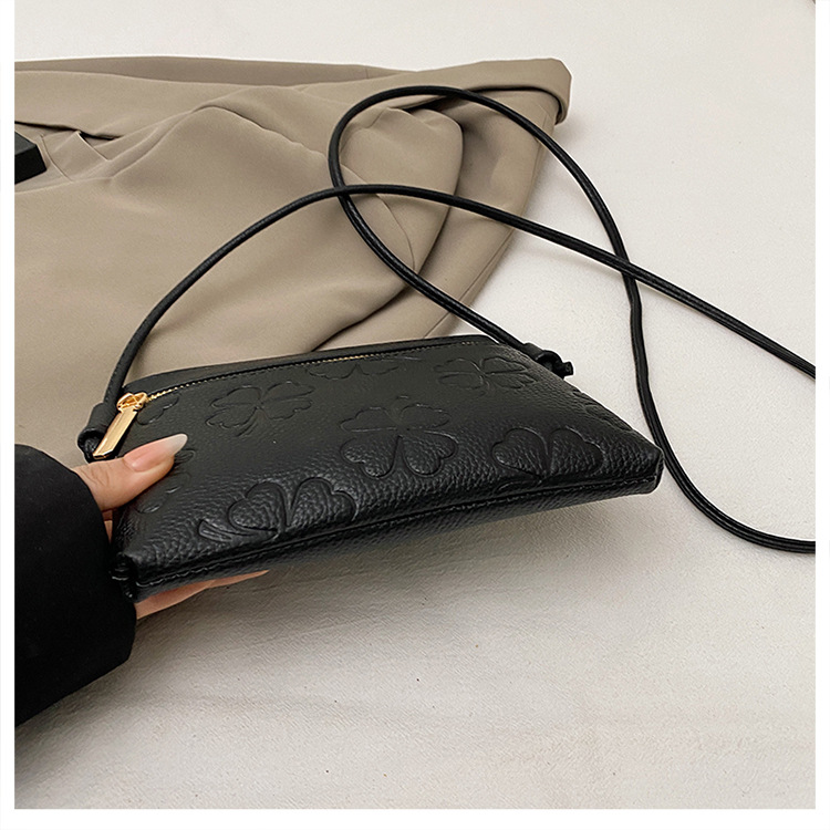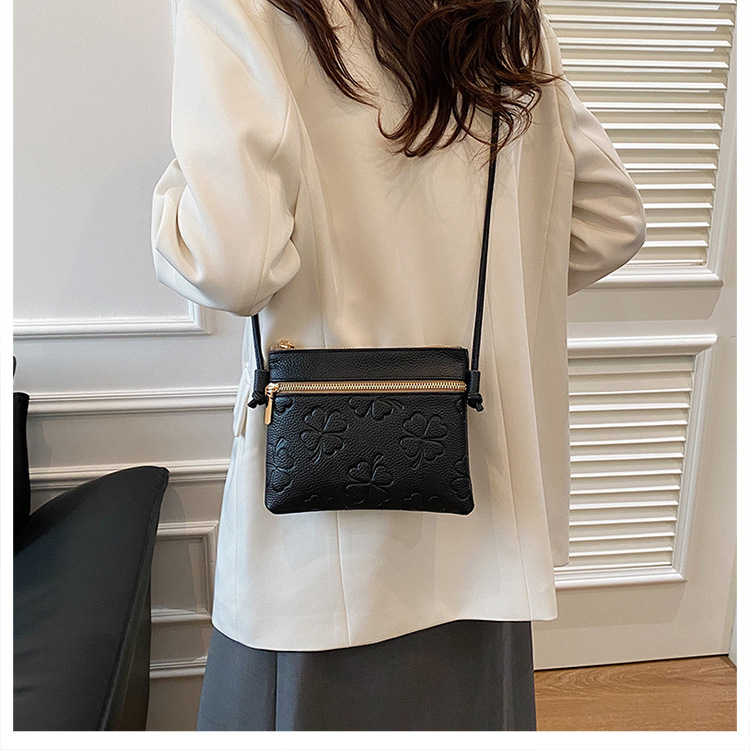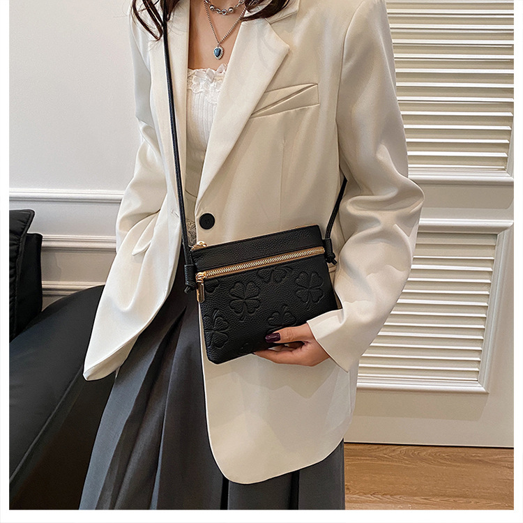 雀说 真皮菱格压花单肩包四叶草斜挎包小方包2037