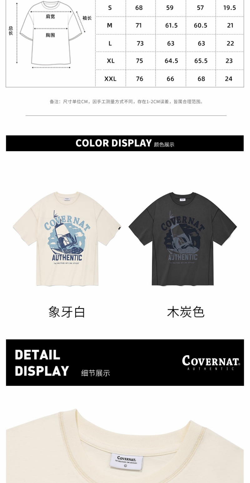 covernat韩国潮牌圆领T恤布罗肯船短袖时尚舒适全棉2025春CO2402ST11