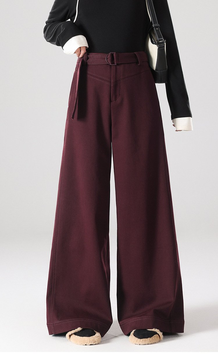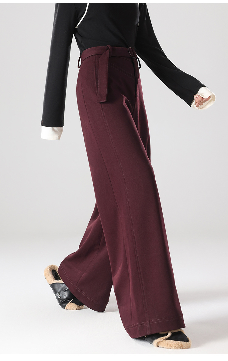 SM 5003阔腿裤高腰宽松显瘦微喇带腰带款长裤 商品图0