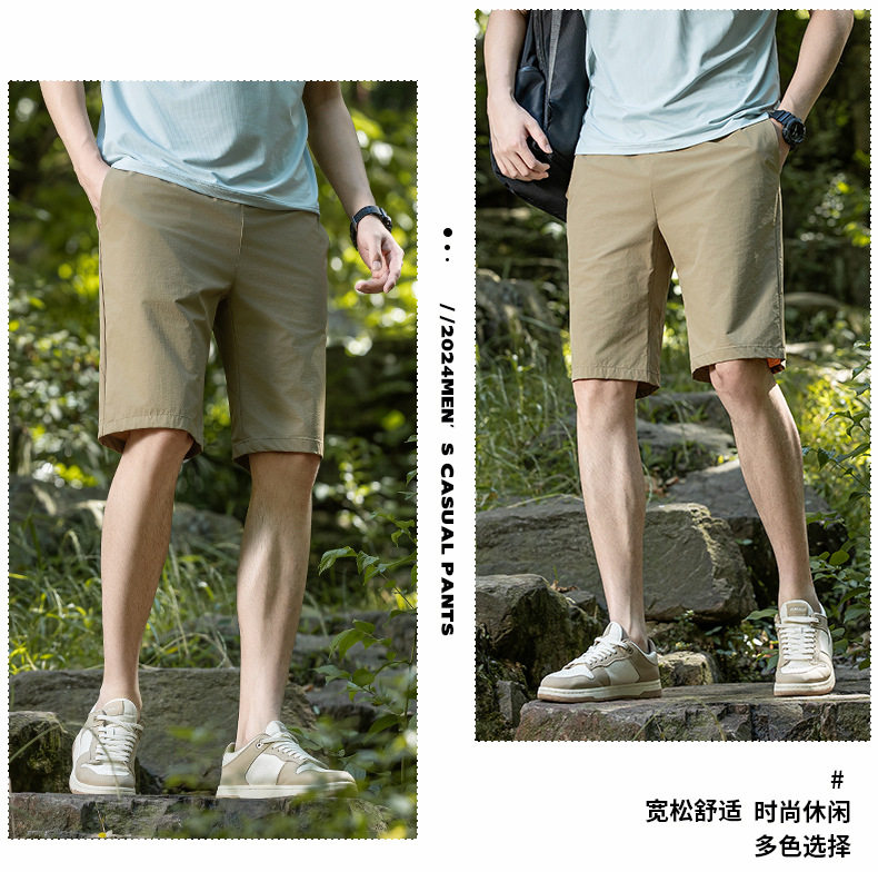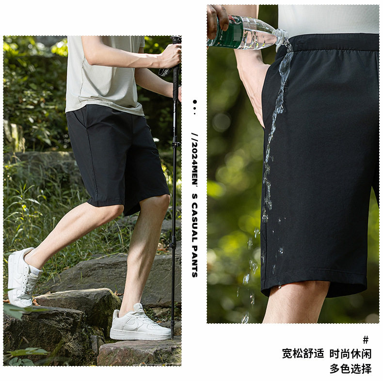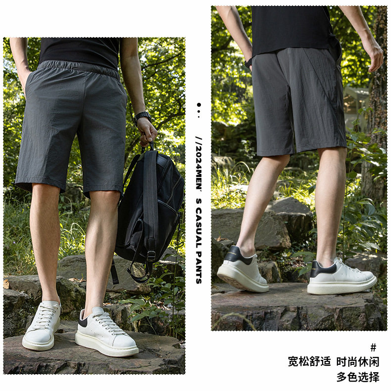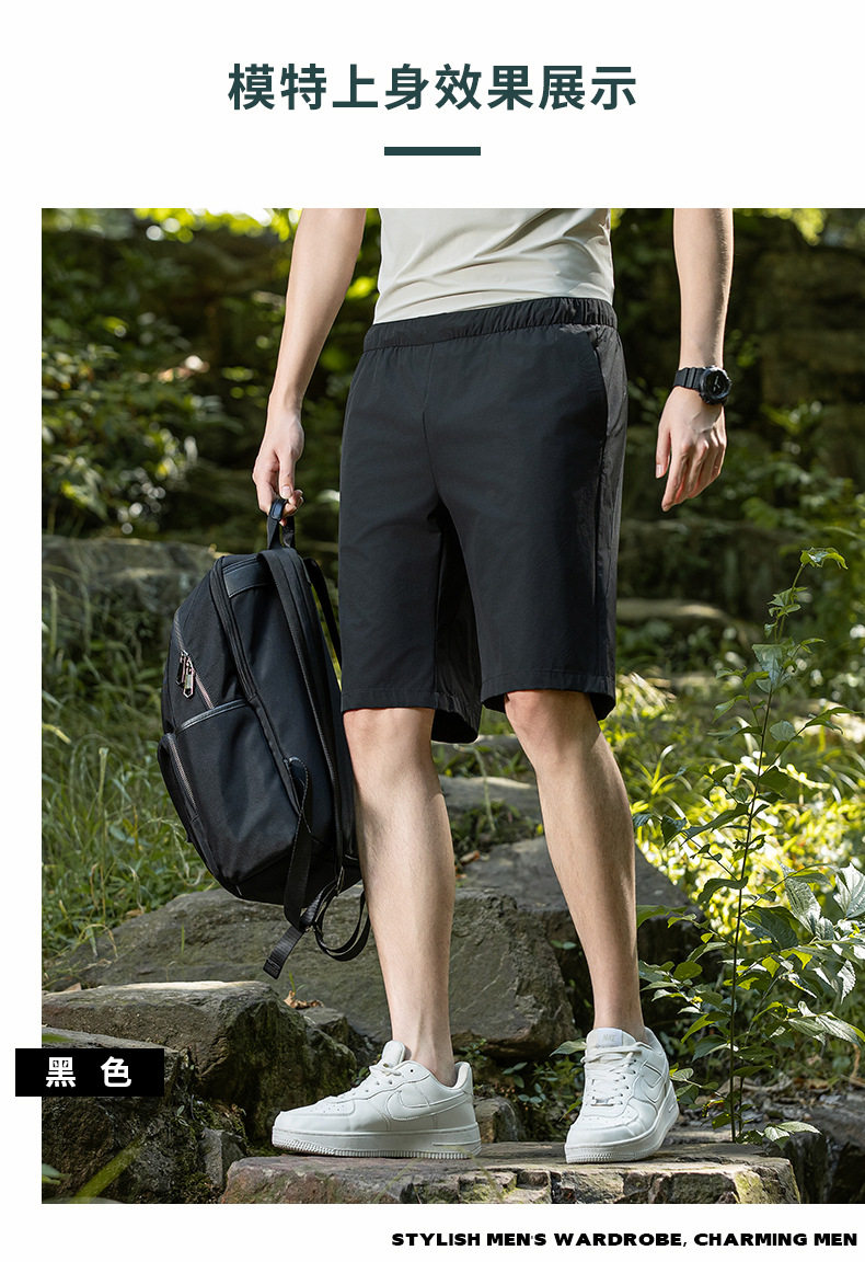 锦纶弹力牛奶丝夏季新款松紧腰休闲中裤男士透气五分裤运动裤短裤 LSBT-6670【LB-6670】