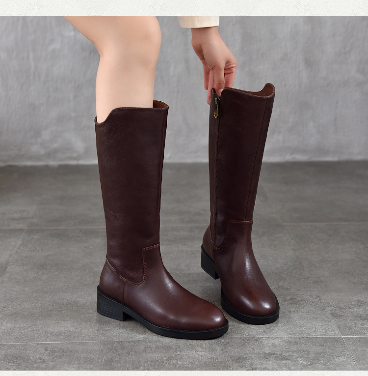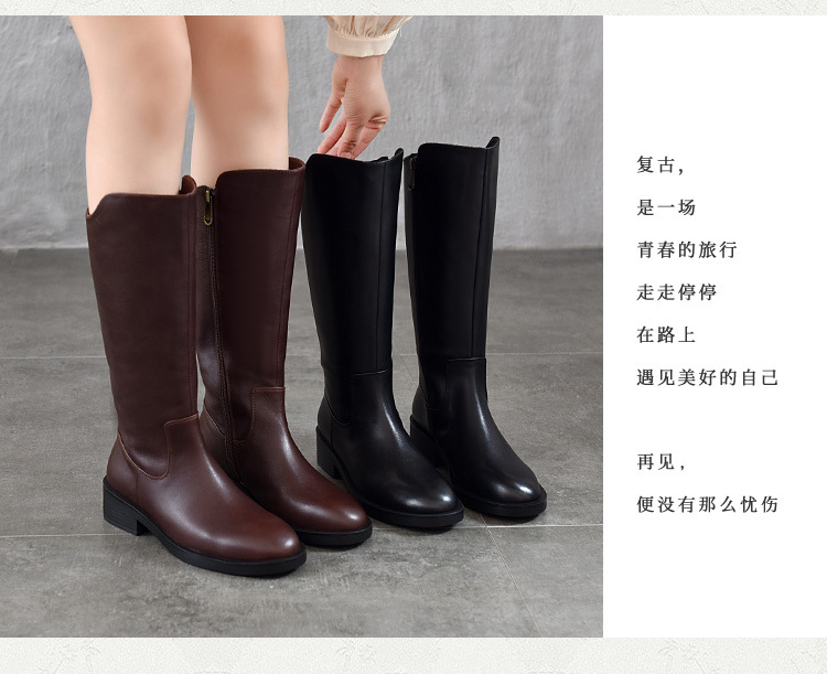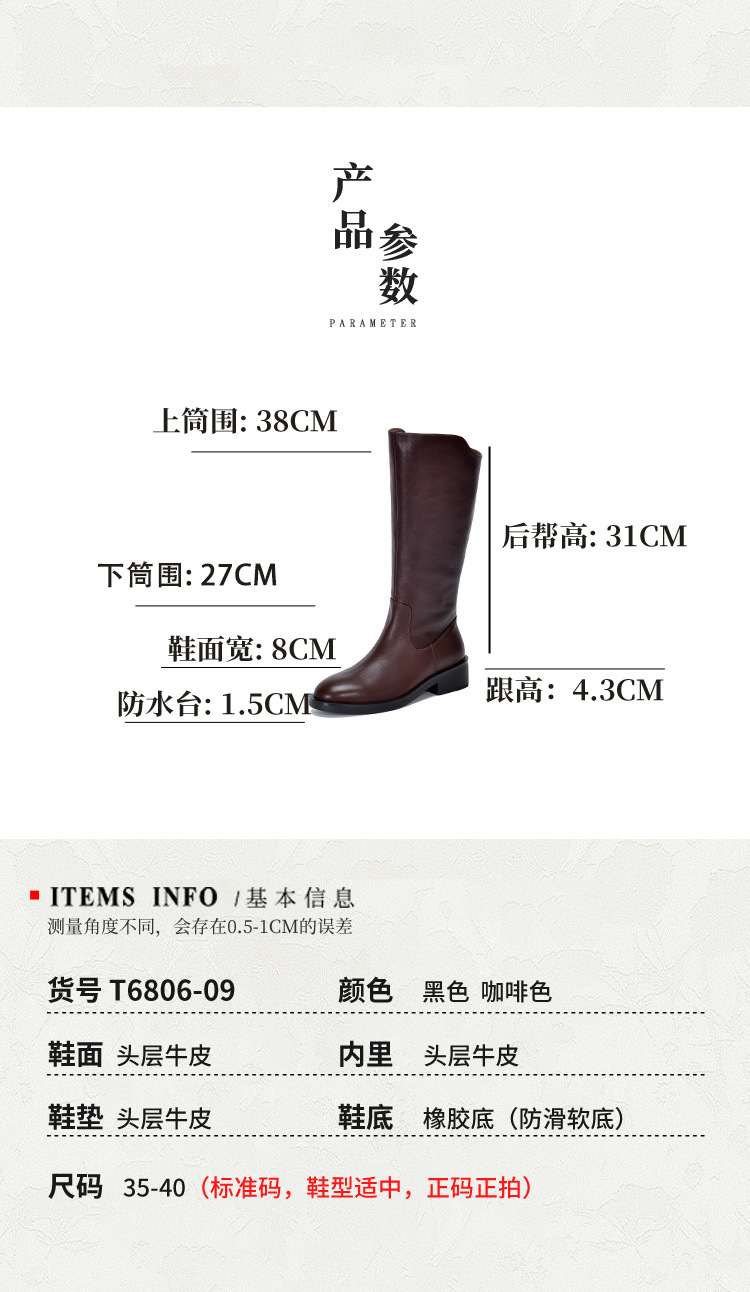TN T6806-09高筒中跟软皮大筒围长筒骑士靴