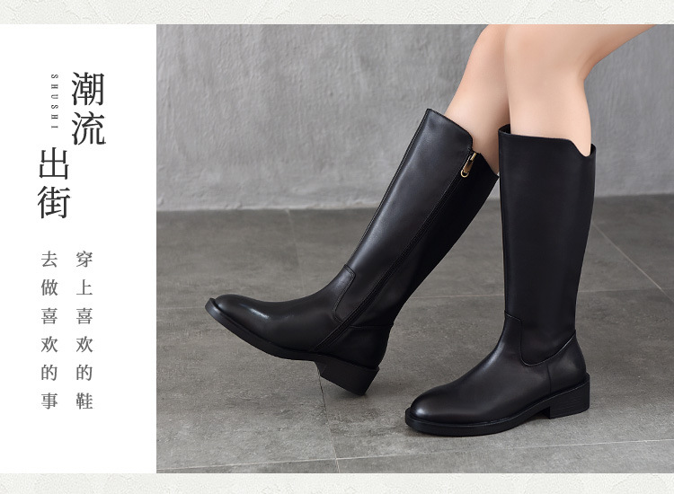 TN T6806-09高筒中跟软皮大筒围长筒骑士靴 商品图4