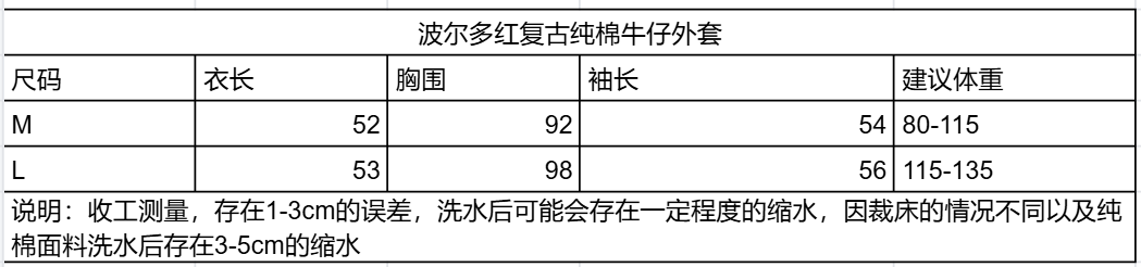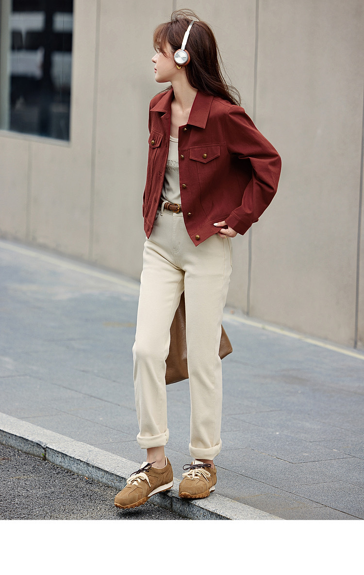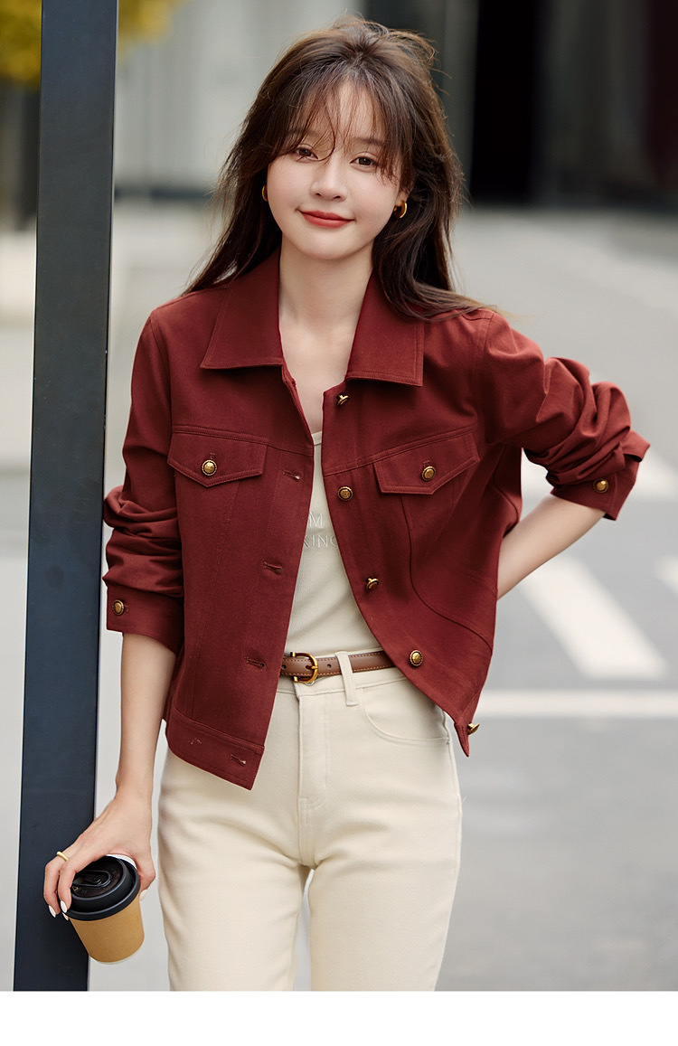 春秋款【ORIGNAL&CO波尔多红牛仔外套】100%棉 柔软舒适 亲肤透气 宽松有型