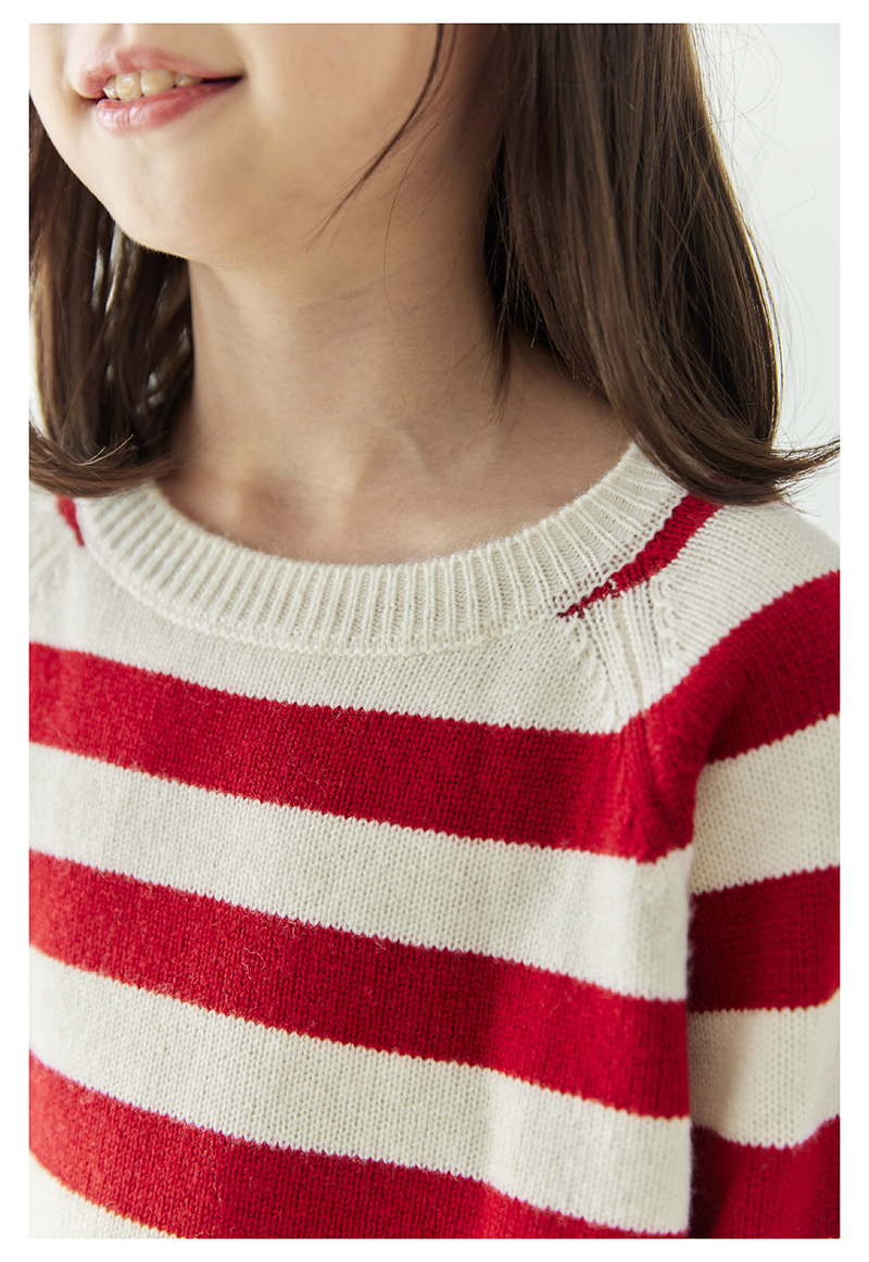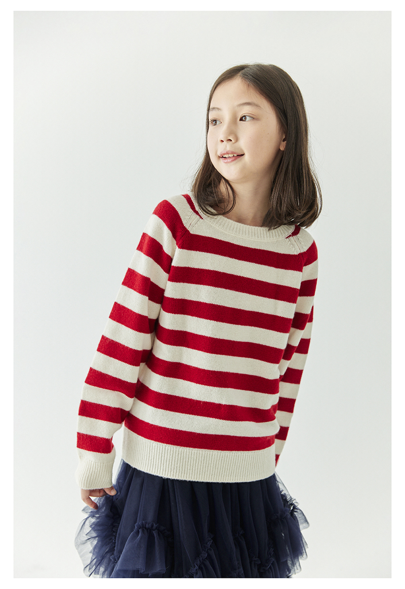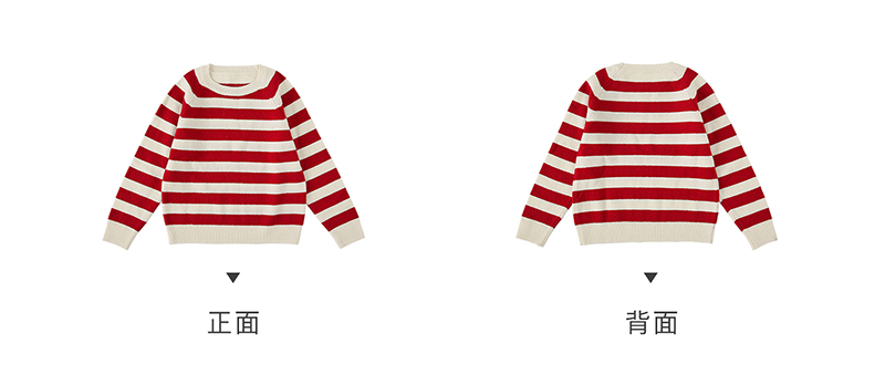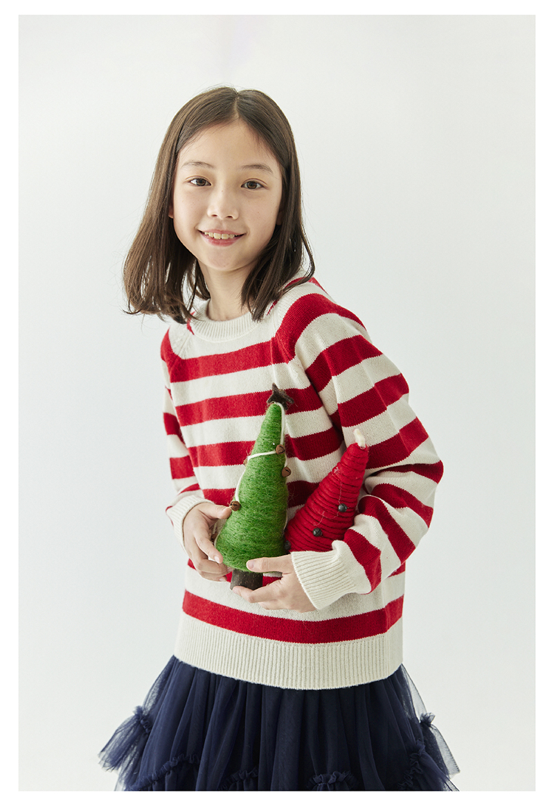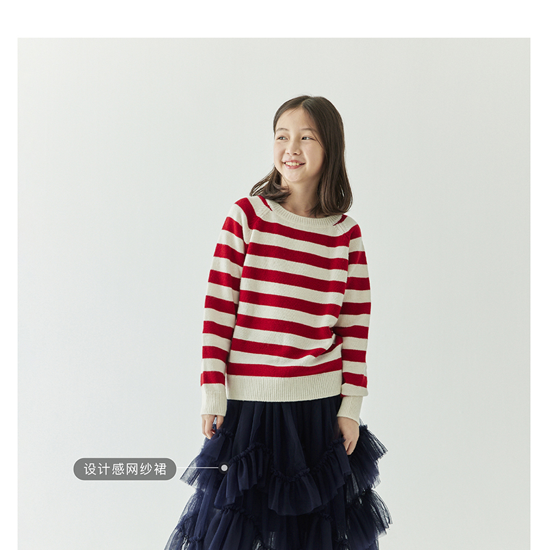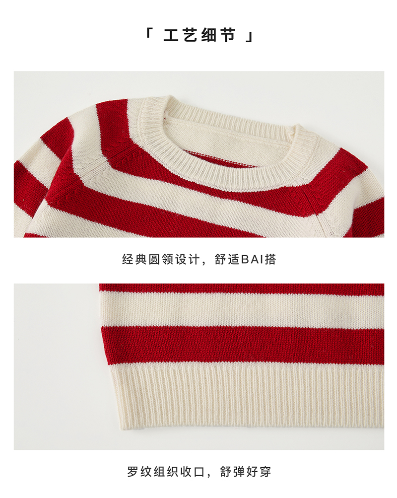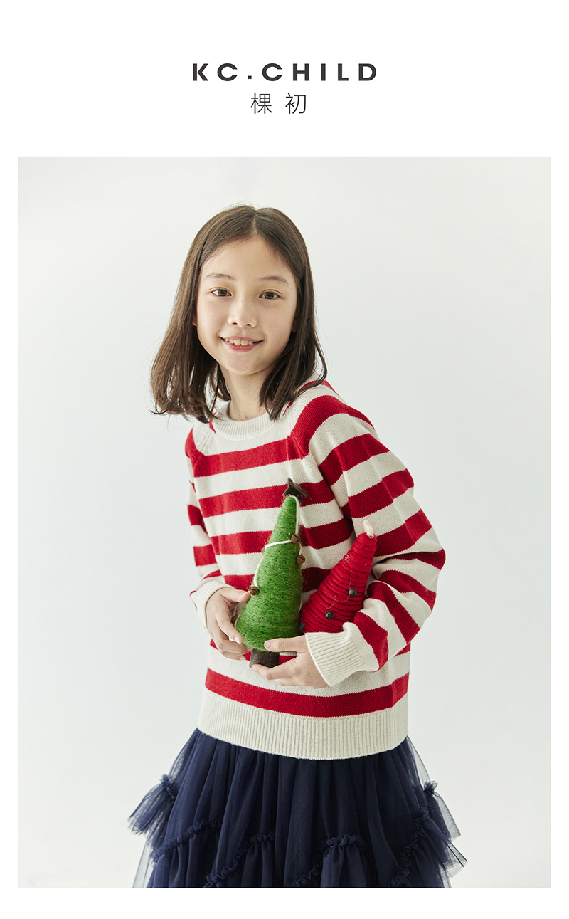 棵初24冬季儿童节日氛围感红条纹羊毛衫女童拼色保暖软糯针织毛衣