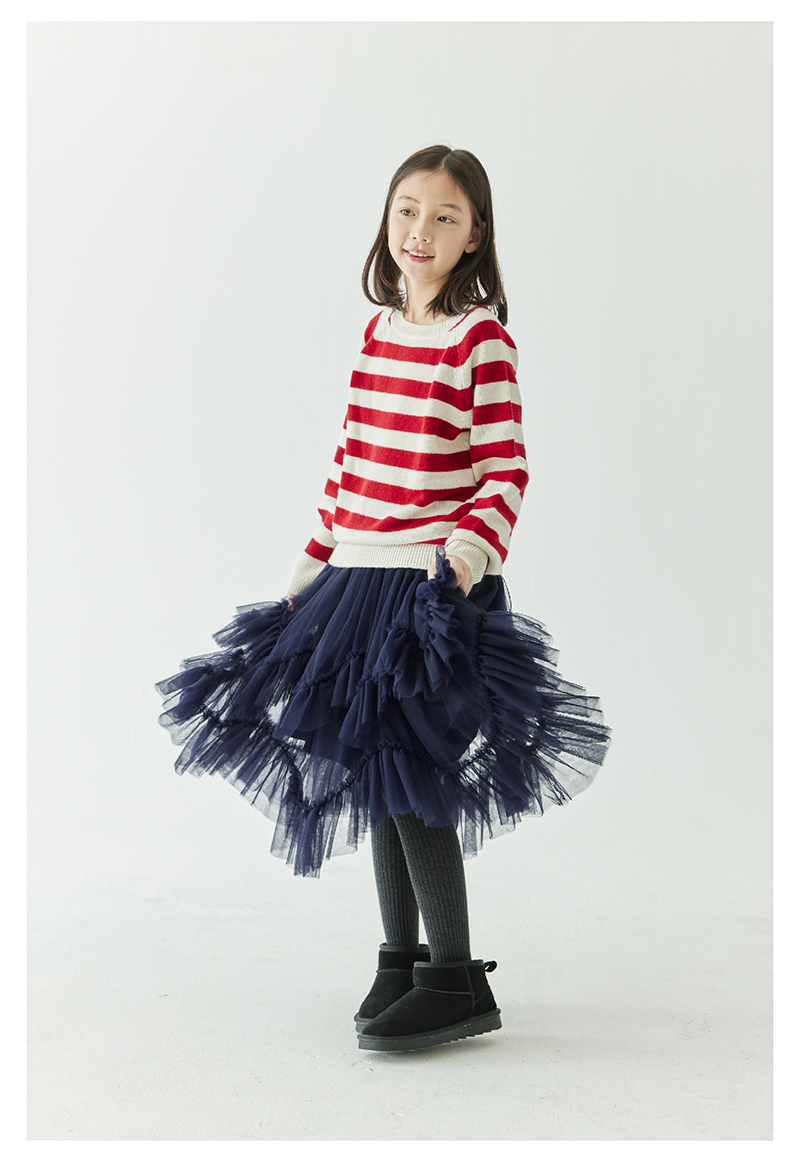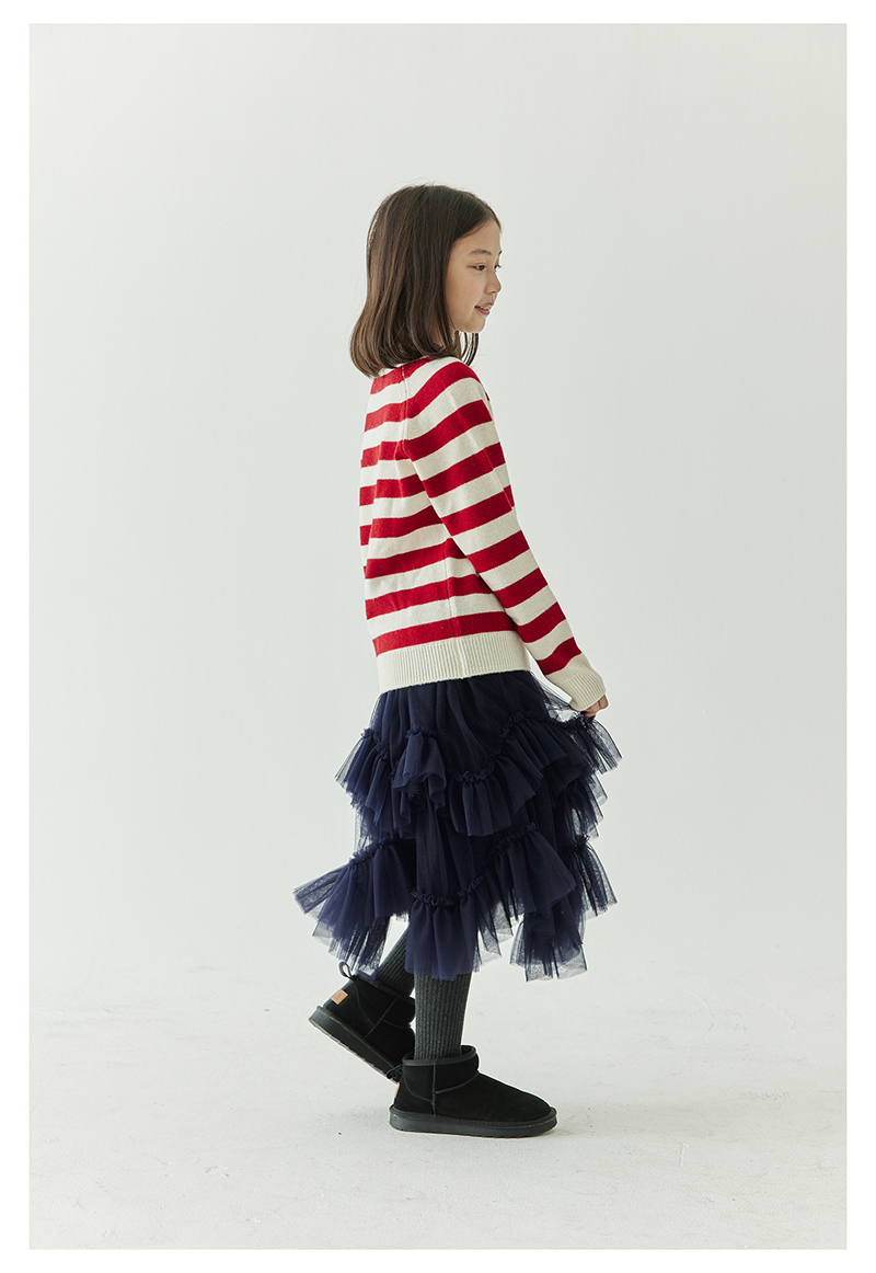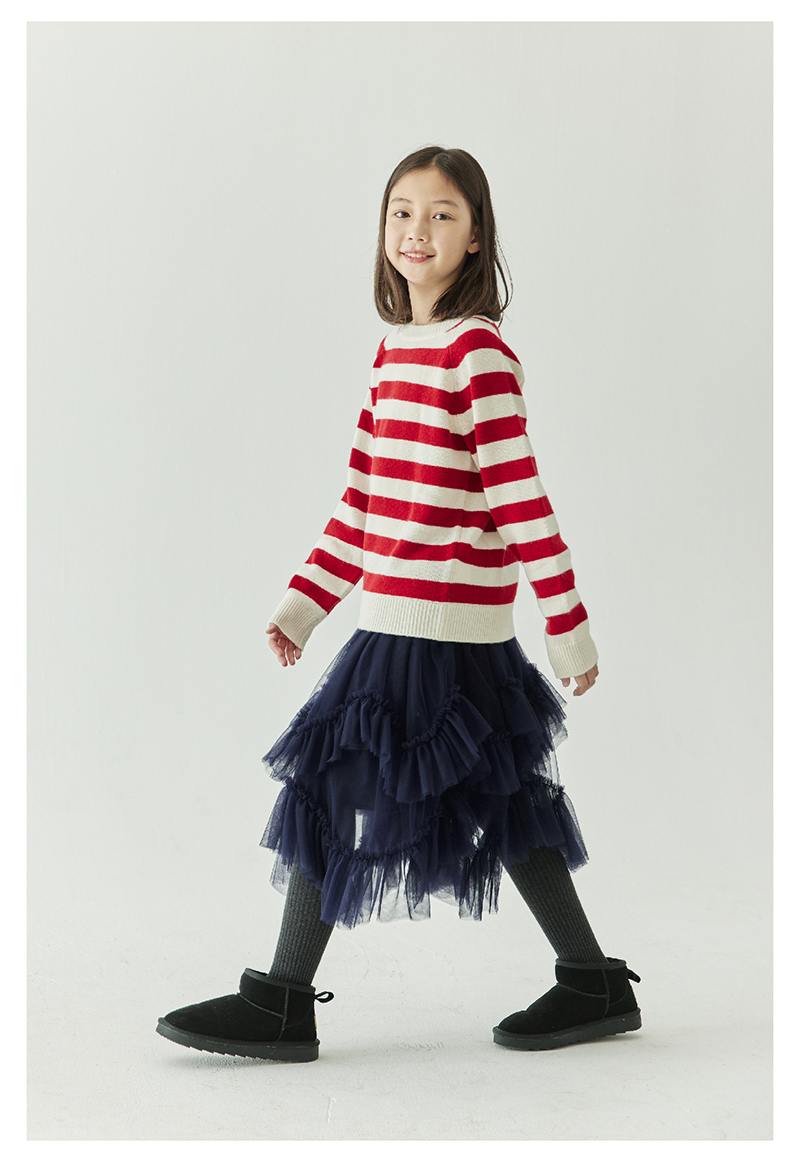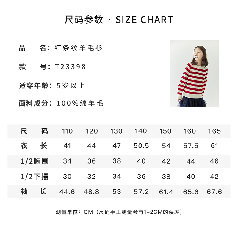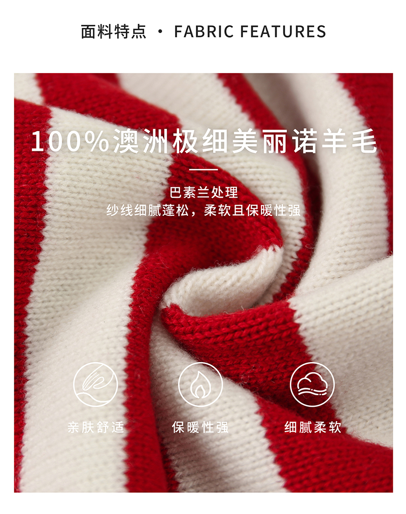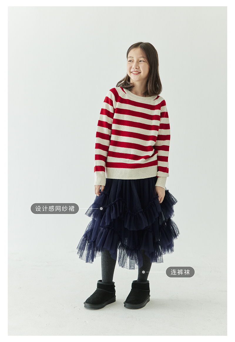 棵初24冬季儿童节日氛围感红条纹羊毛衫女童拼色保暖软糯针织毛衣