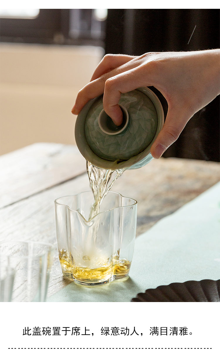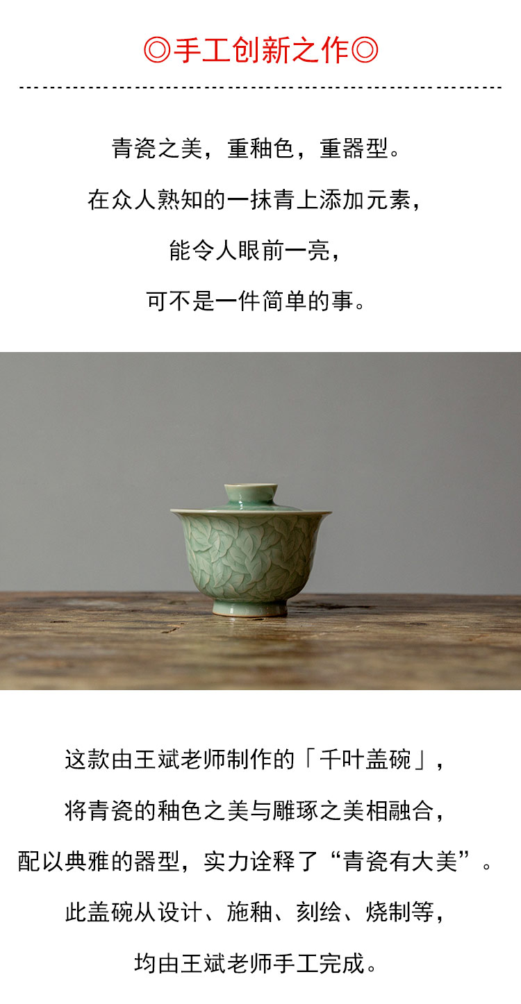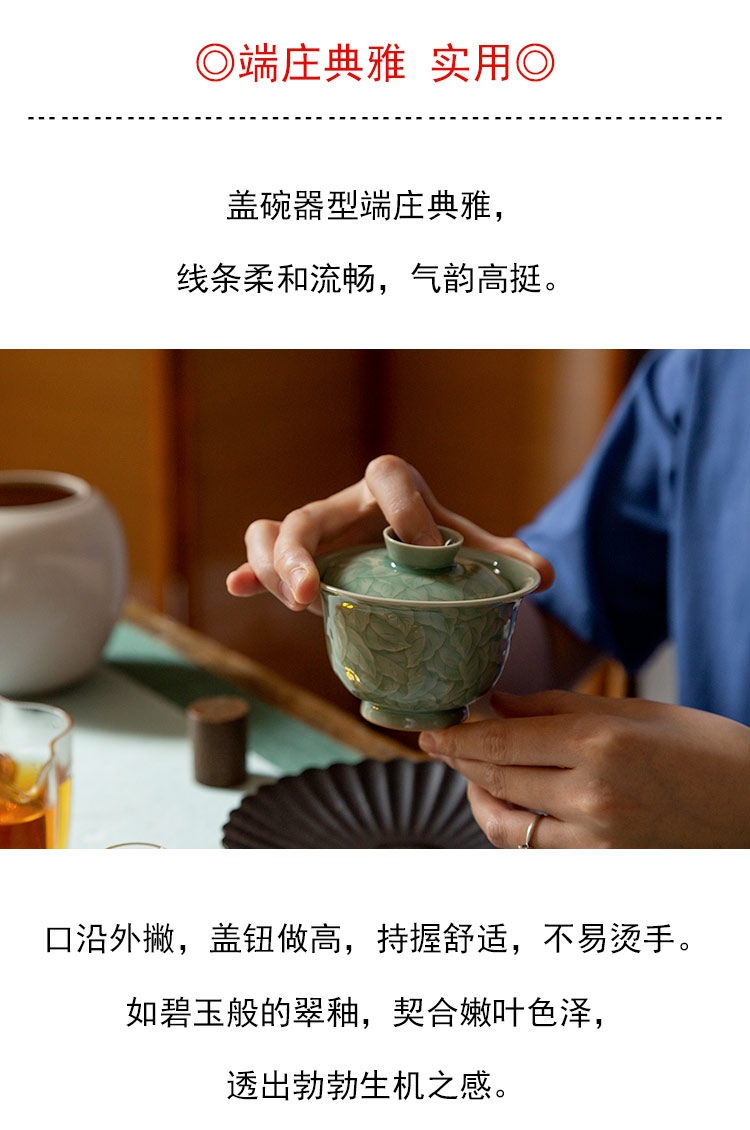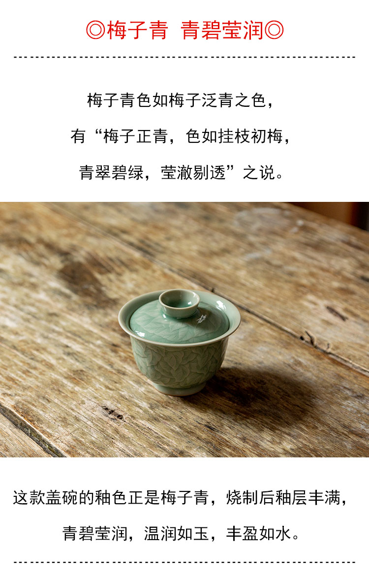 茶香记 千叶盖碗 手工青瓷 梅子青 古典清雅 大气端庄 灵动生机