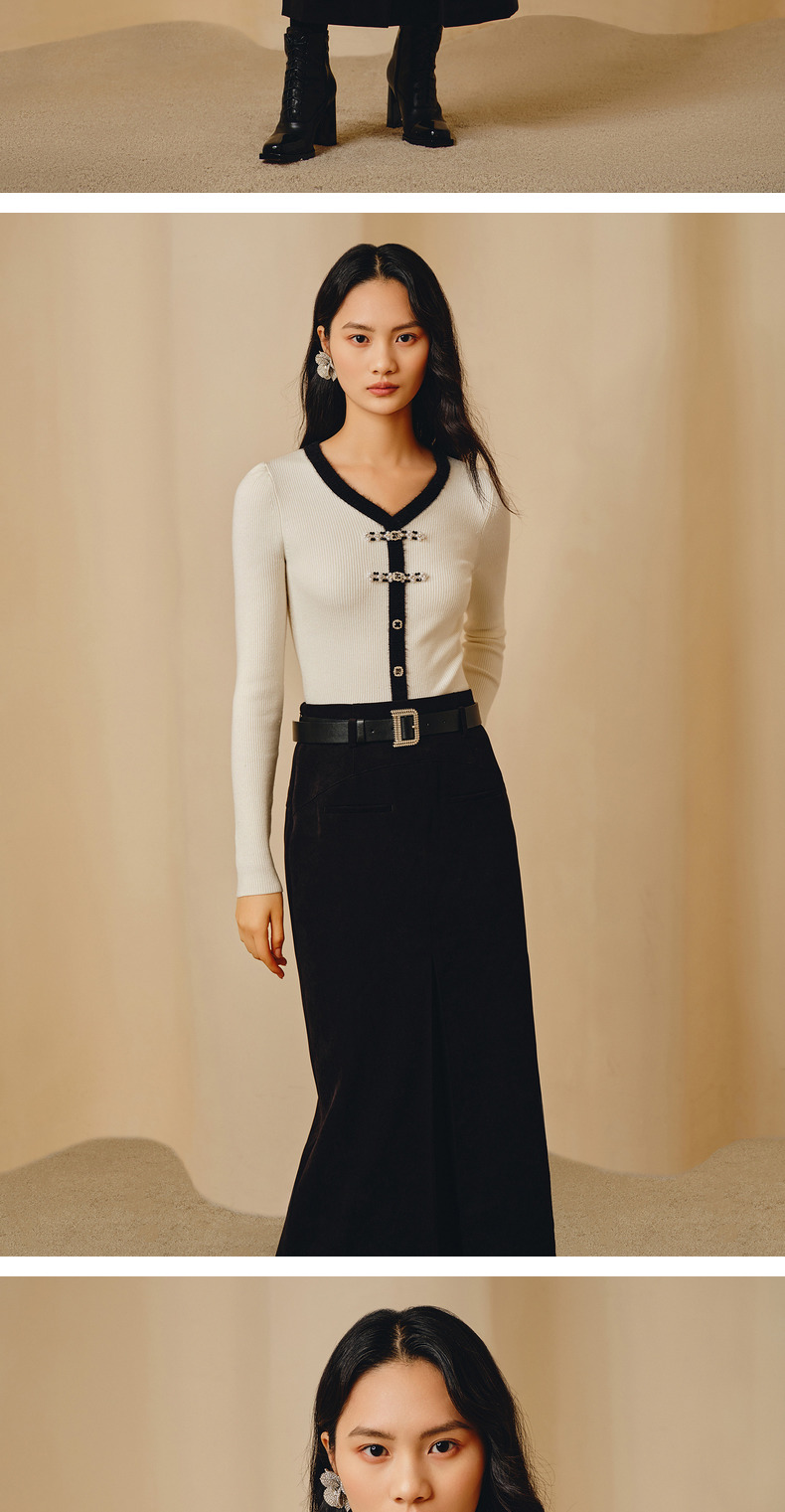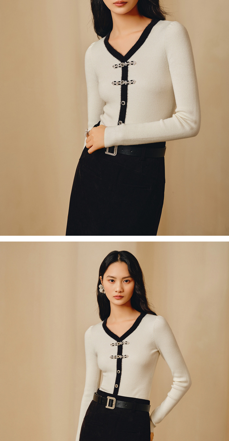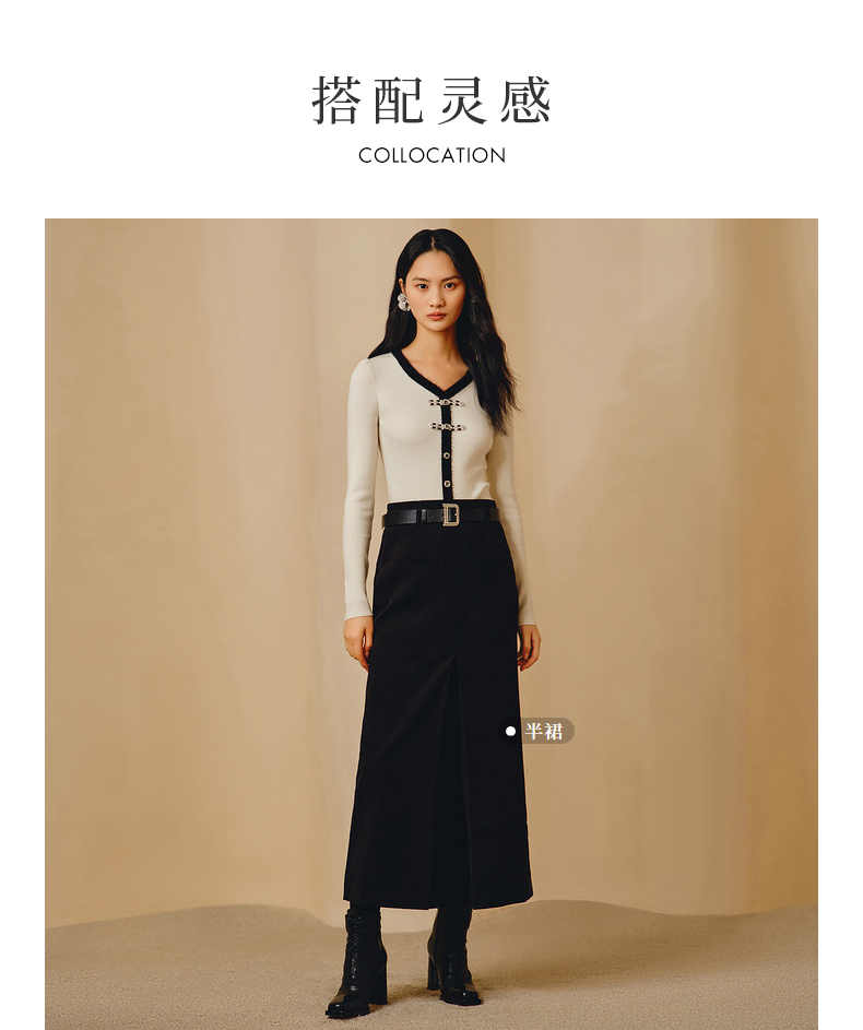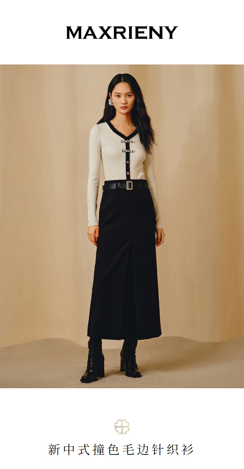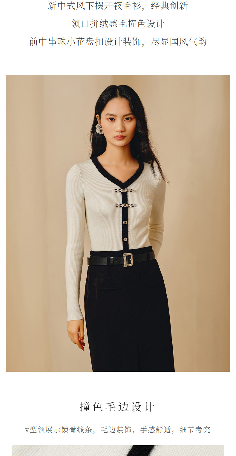 MAXRIENY国风新中式撞色边套头针织衫修身上衣(货号:MC88SW851)
