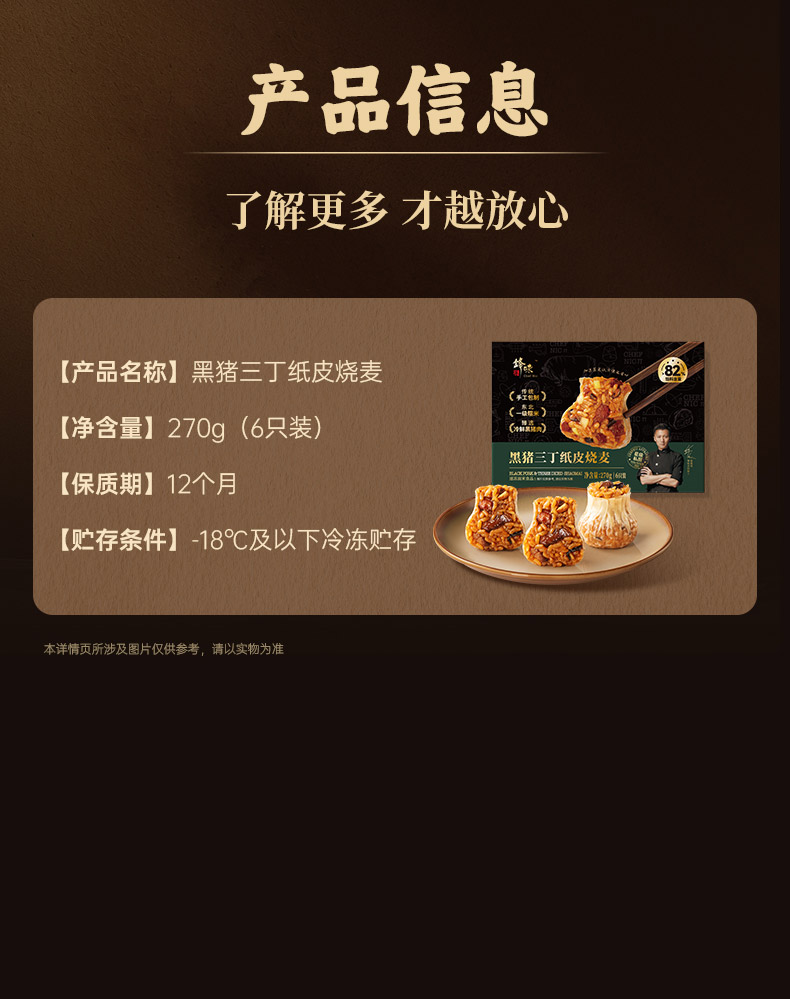 【预售-12月22日配送】锋味派黑猪三丁纸皮烧麦/1盒(6个,共270g)生产日期:25年10月