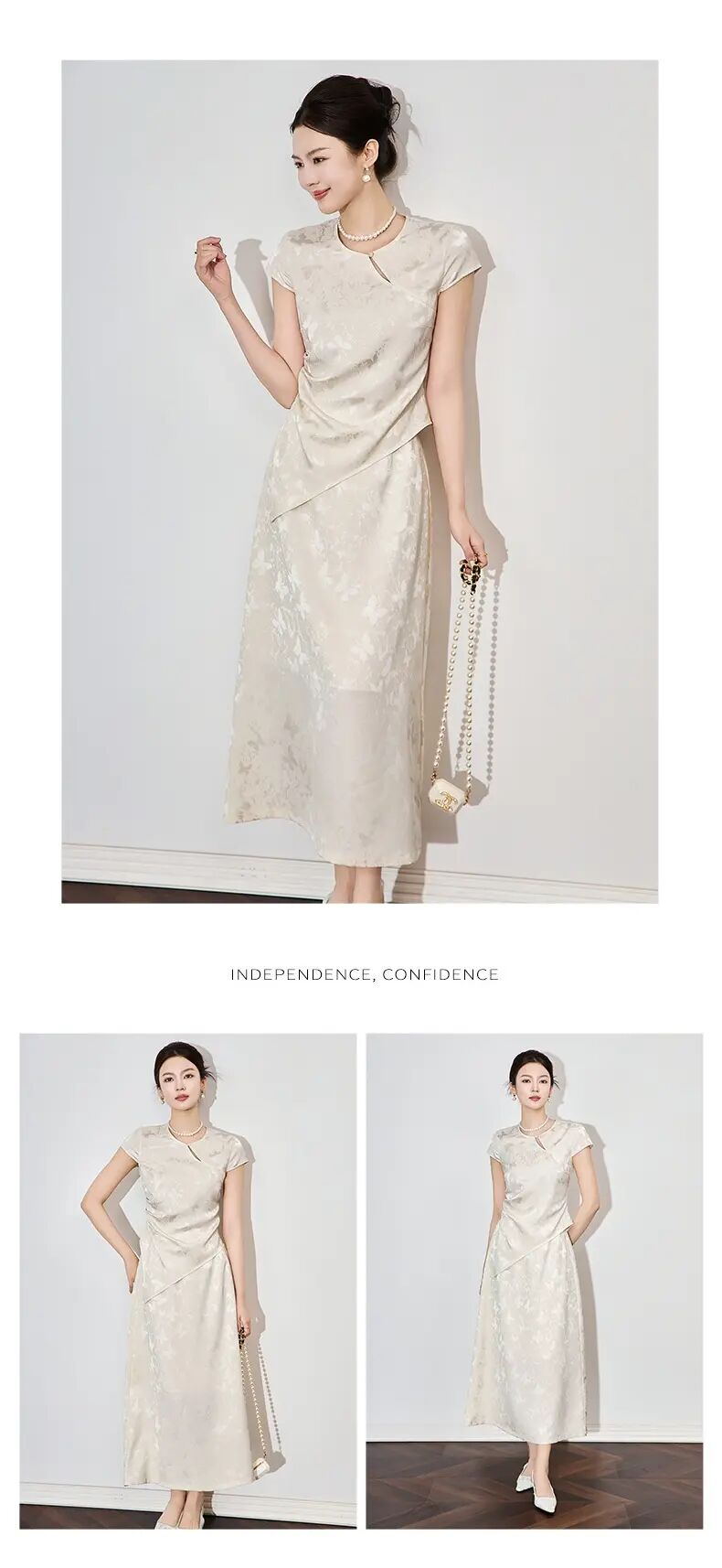 【高货wl】全新升级【铂金会员330/天猫439/差价109】(99157) 洛诗琳新中式国风旗袍连衣裙雅致高级感浮雕提花裙子套装