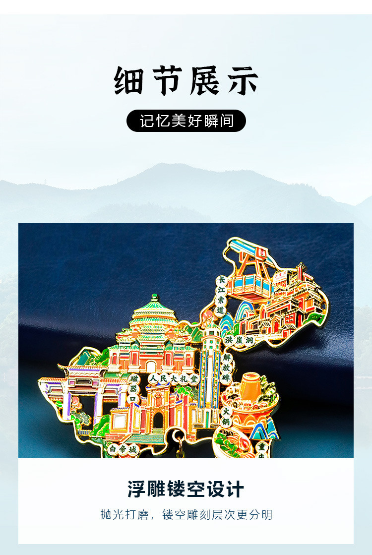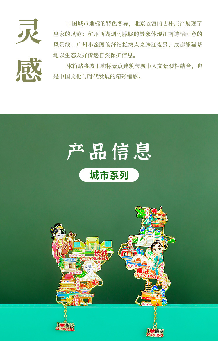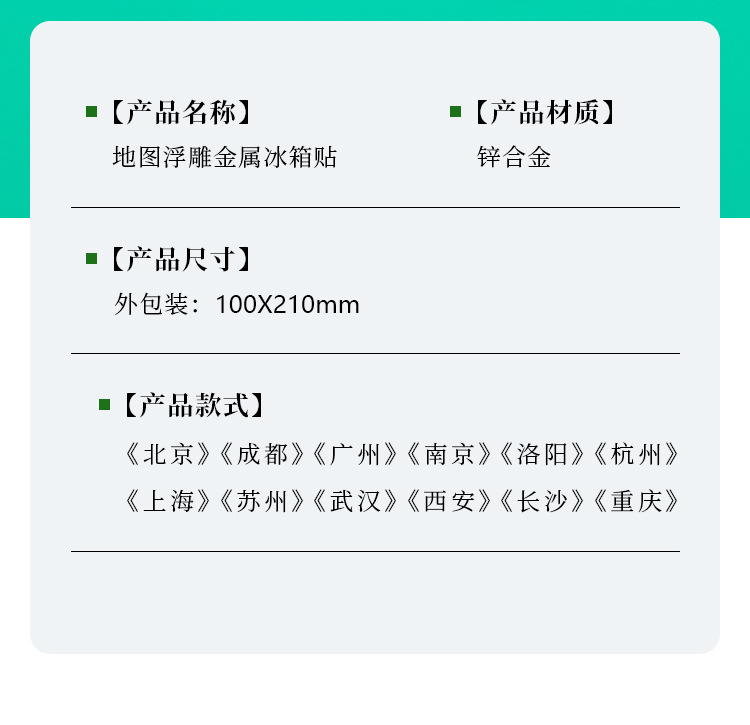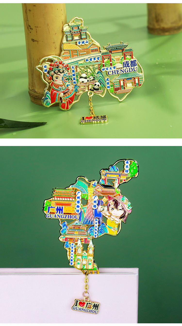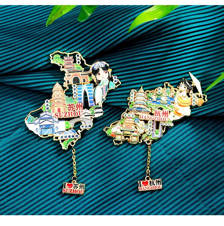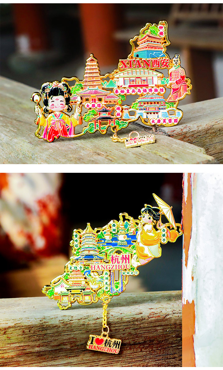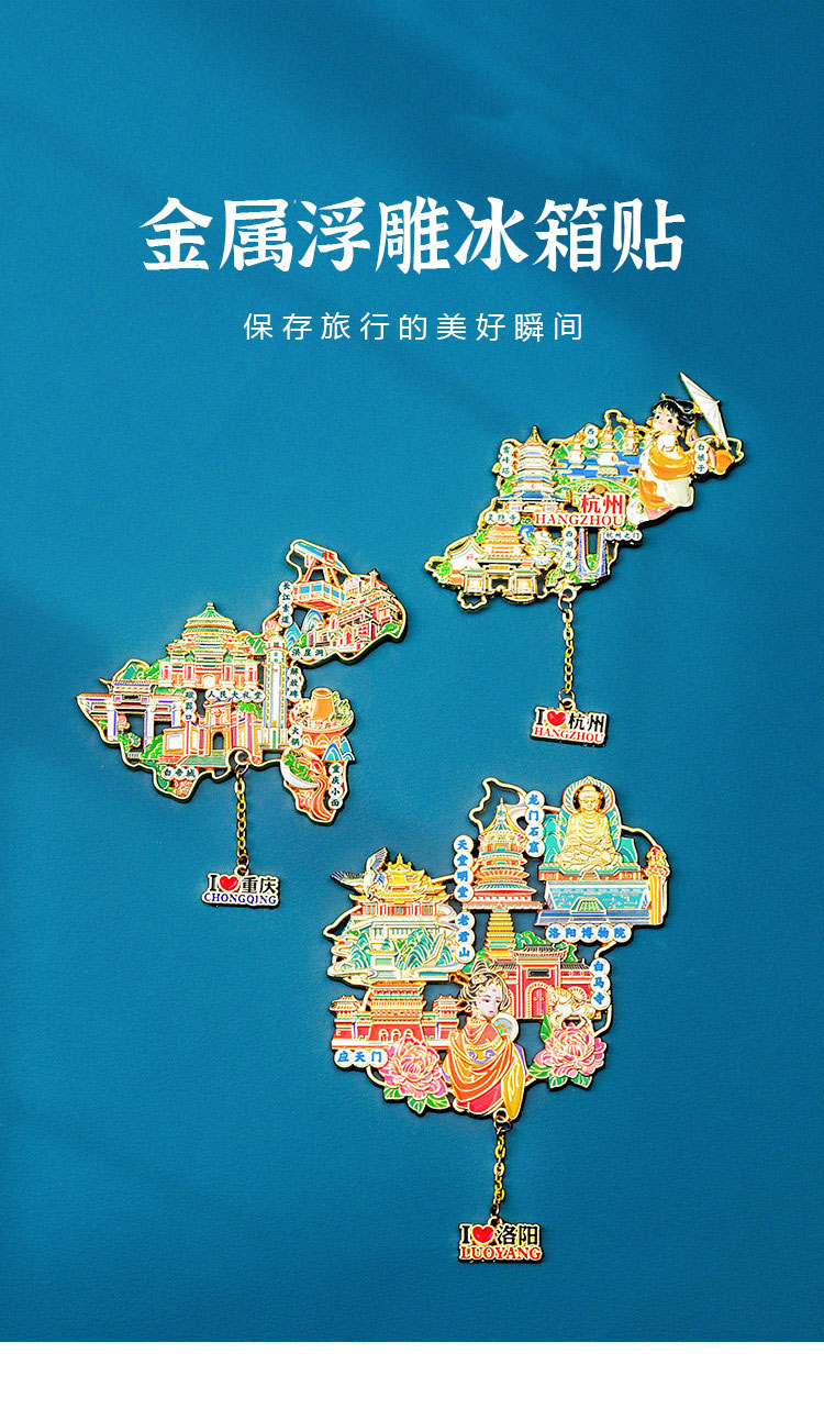 【城市地图金属浮雕冰箱贴】北京上海广州西安洛阳杭州武汉旅游金属纪念品文创磁吸贴
