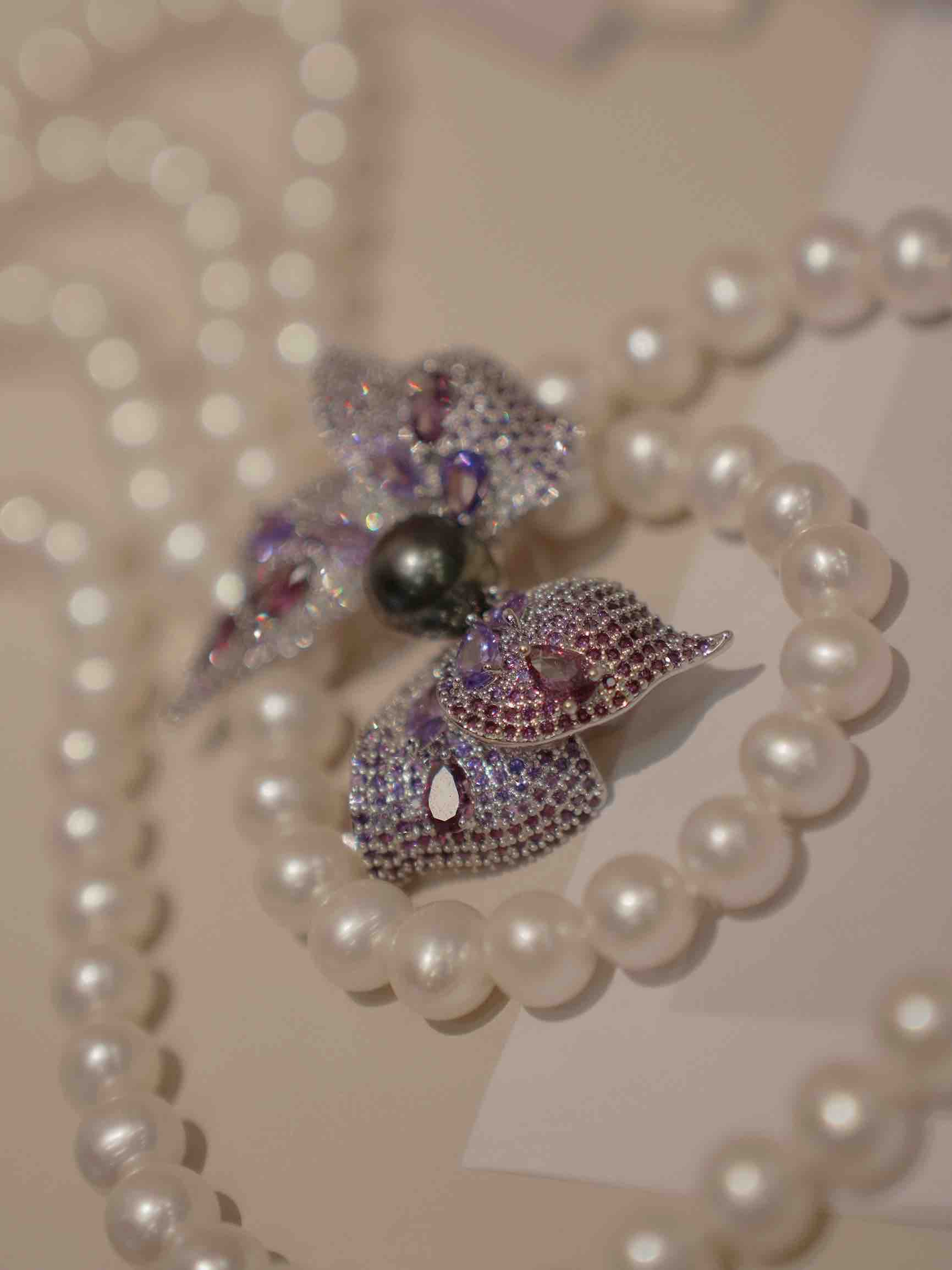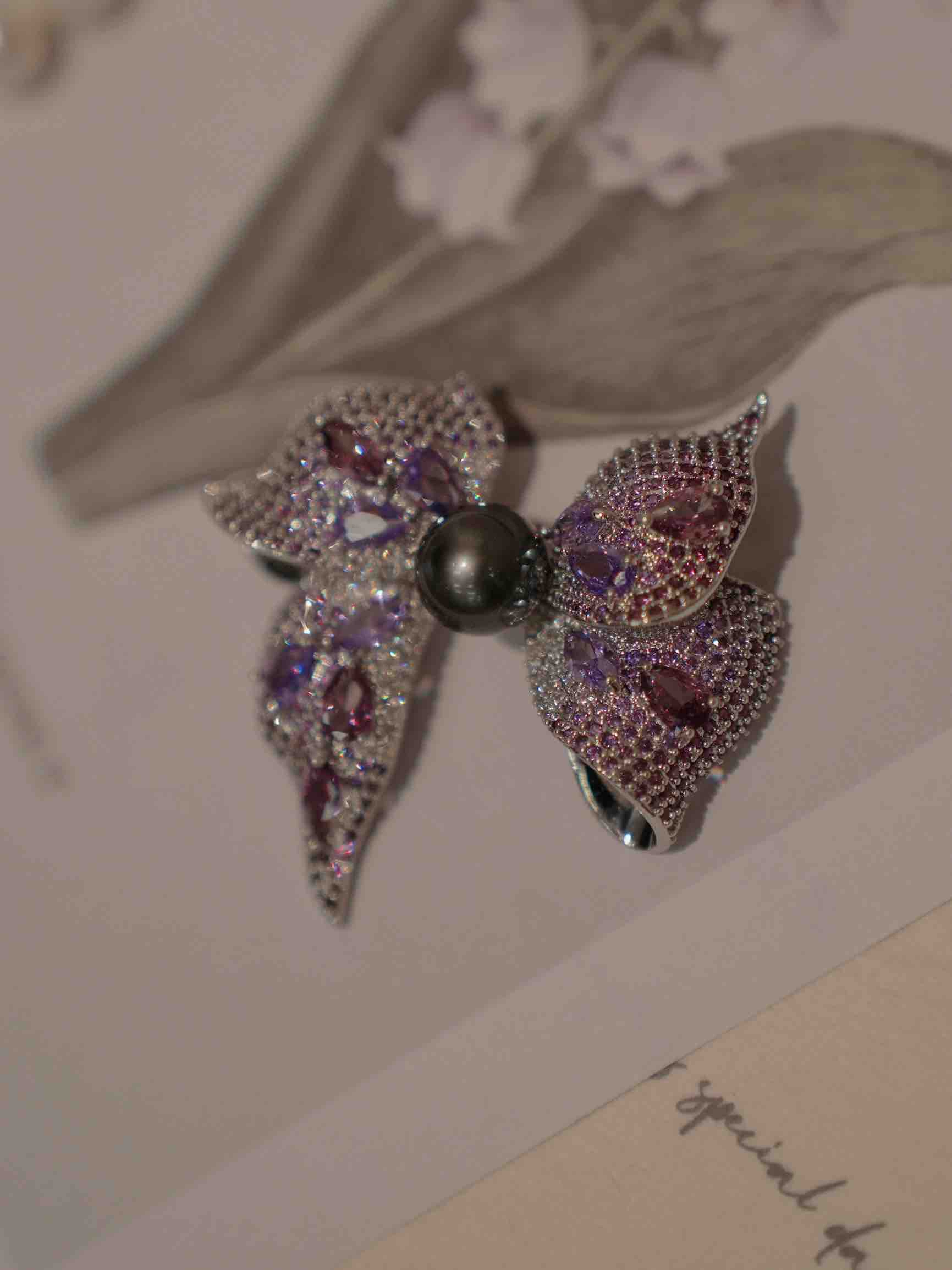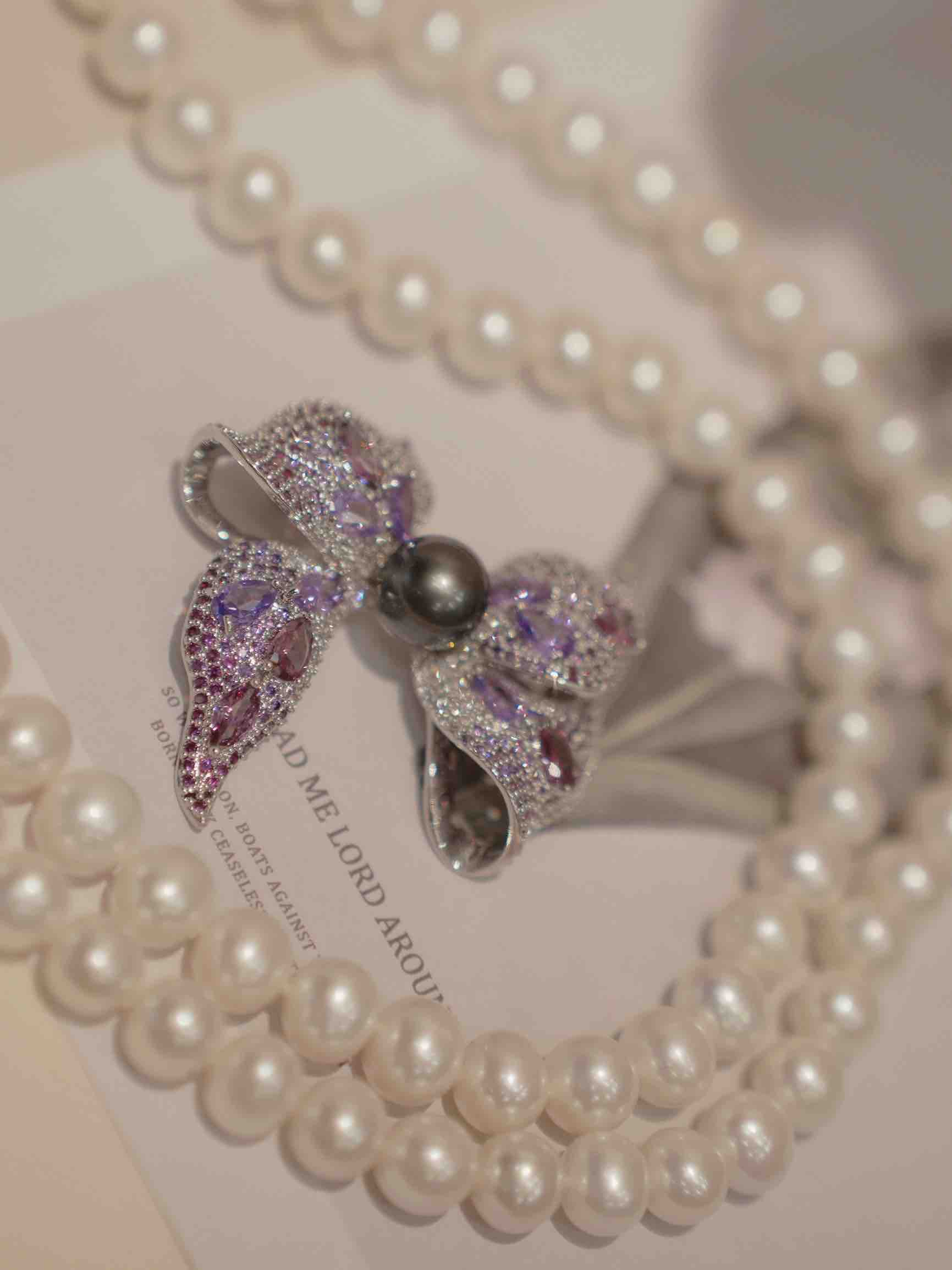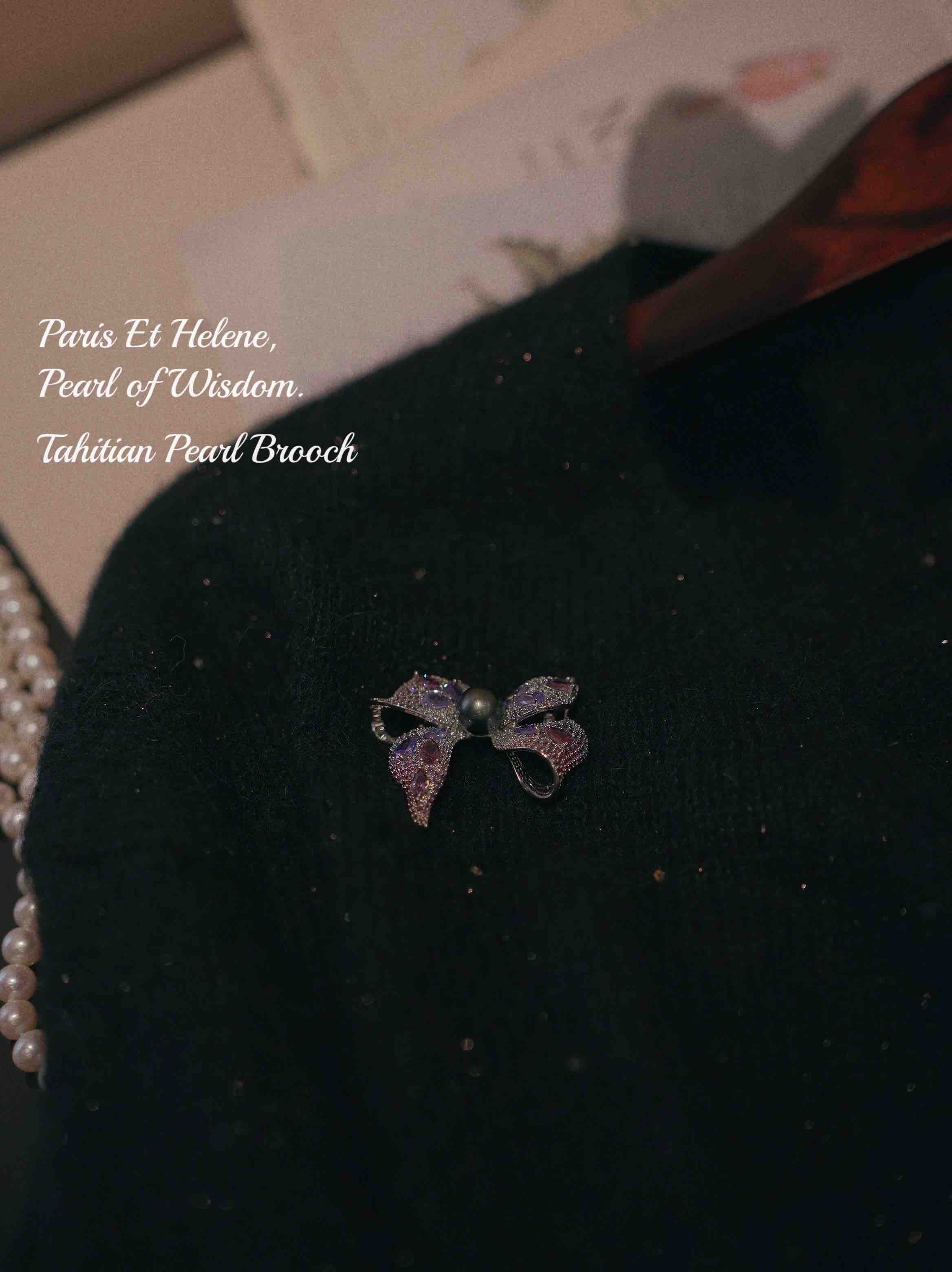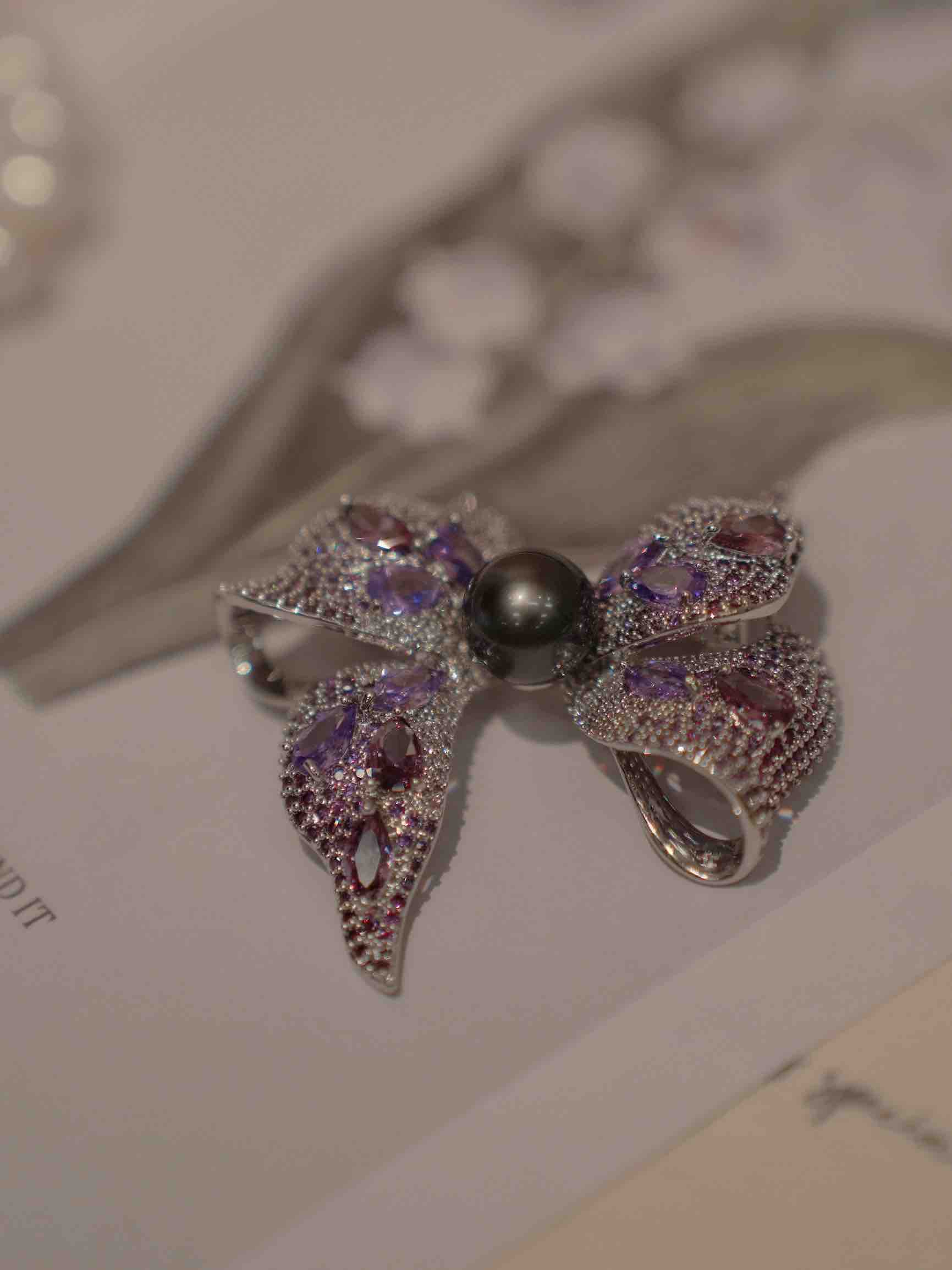 秋冬季胸针 2024 new collection “彩钻”豪镶 10mm左右大溪地黑珍珠 九紫离火运 紫色能量 立体蝴蝶结胸针