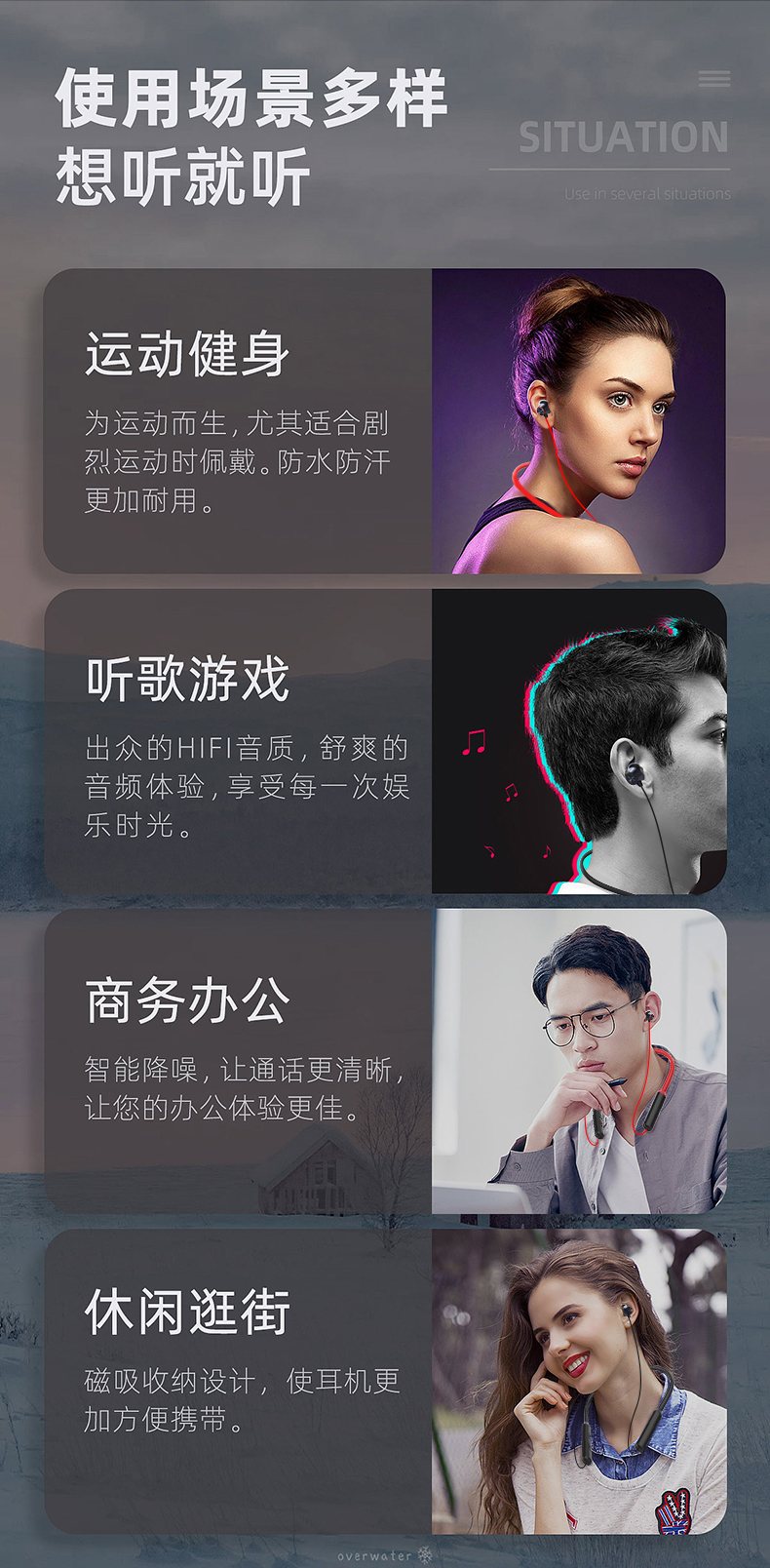 Gerripuer歌利浦G2蓝牙无线耳机挂脖式运动型颈挂式30小时长续航待机男女士款