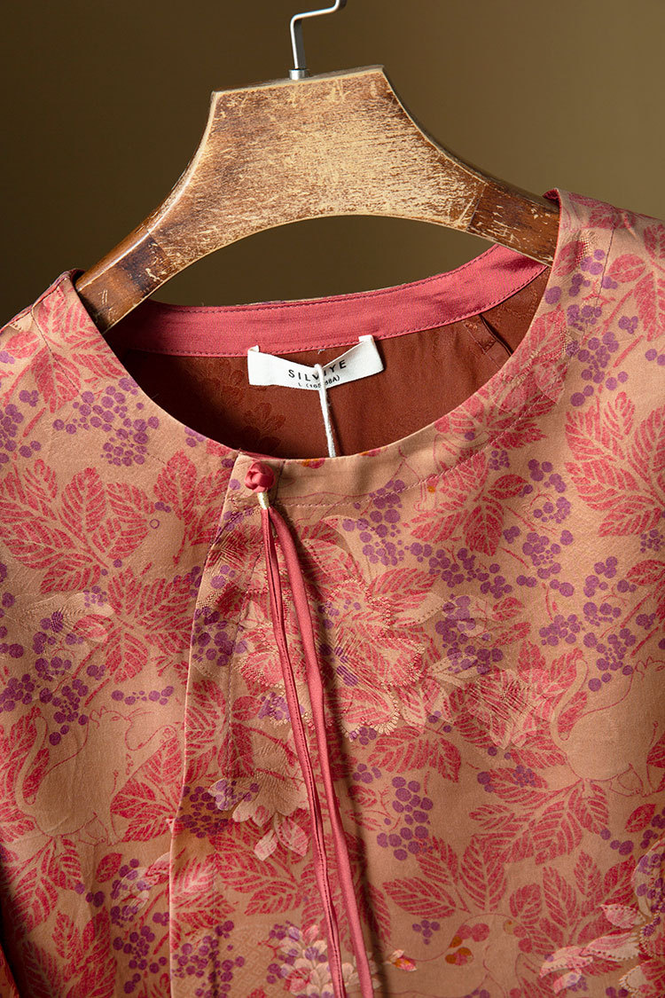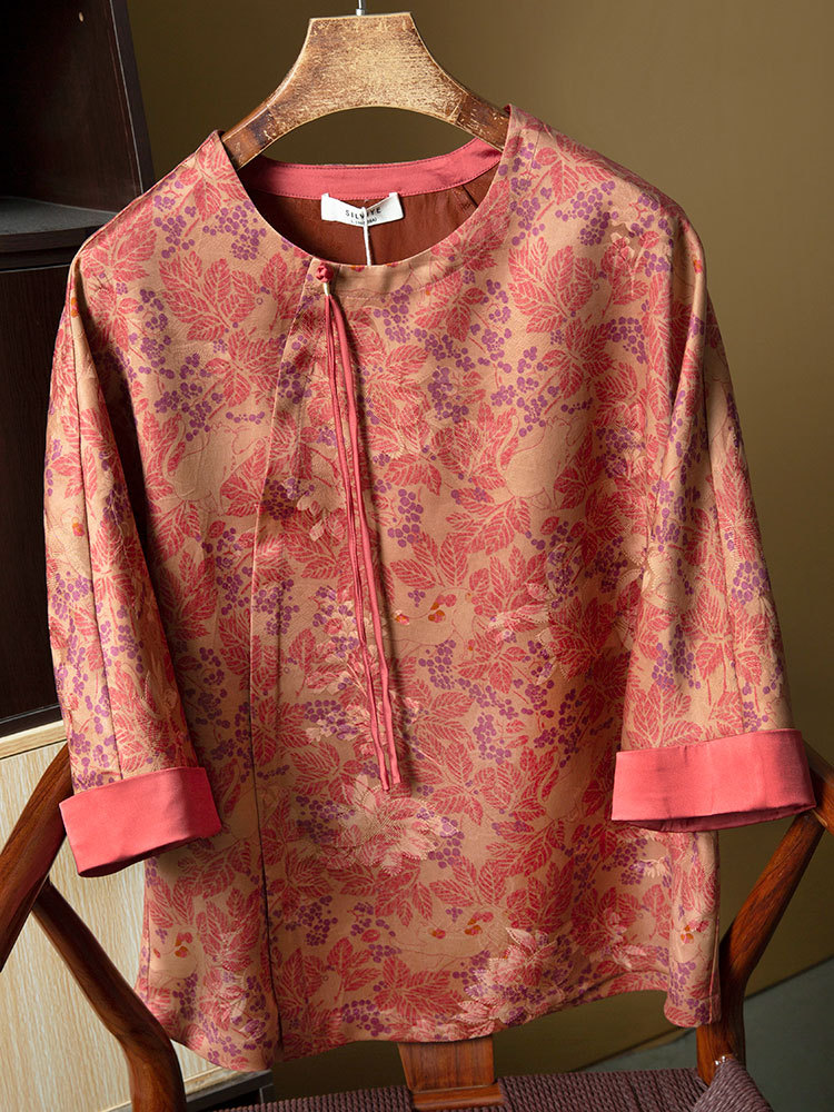 丁摩 真丝非遗香云纱提花国风气质上衣桑蚕丝斜门襟衬衣秋季新4ZF-SYD142