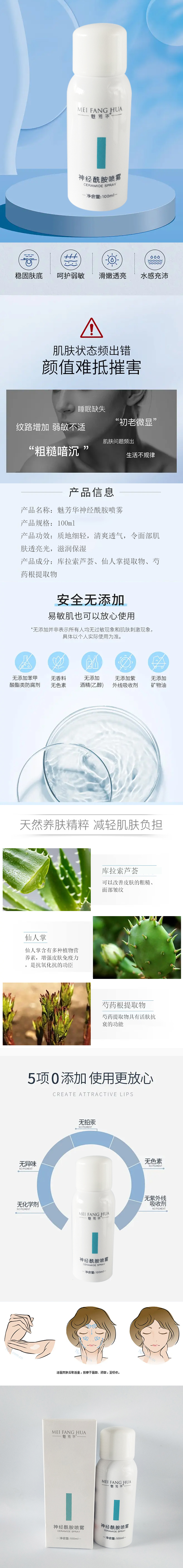 魅芳华神经酰胺喷雾100ml清爽透气滋养保湿修护肌底