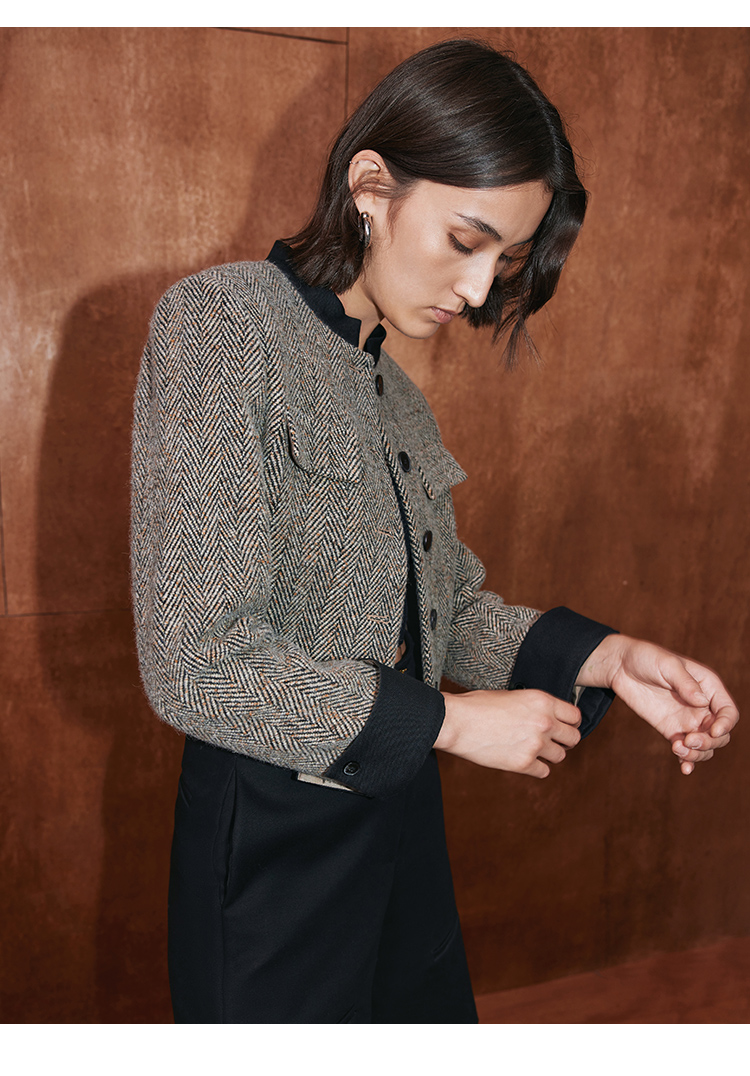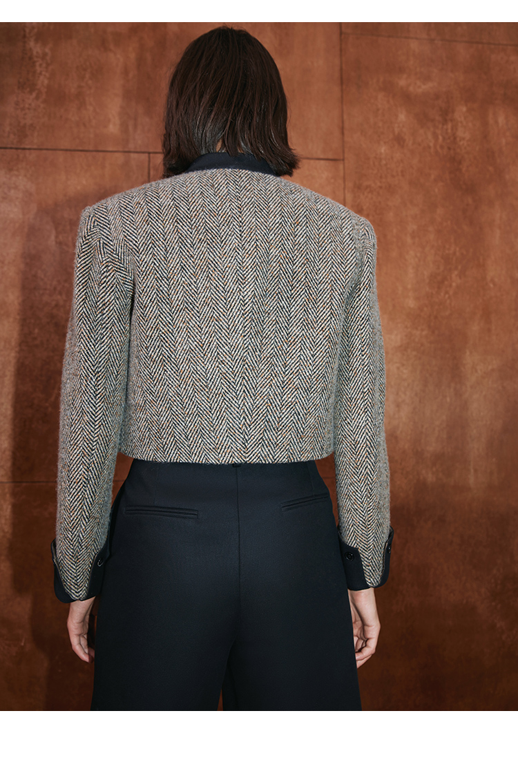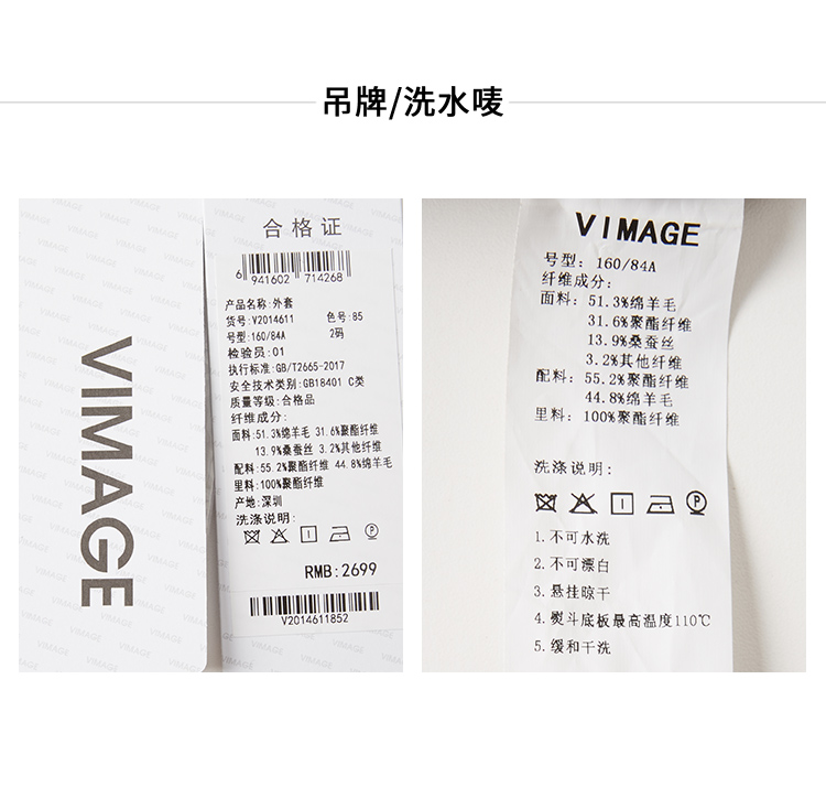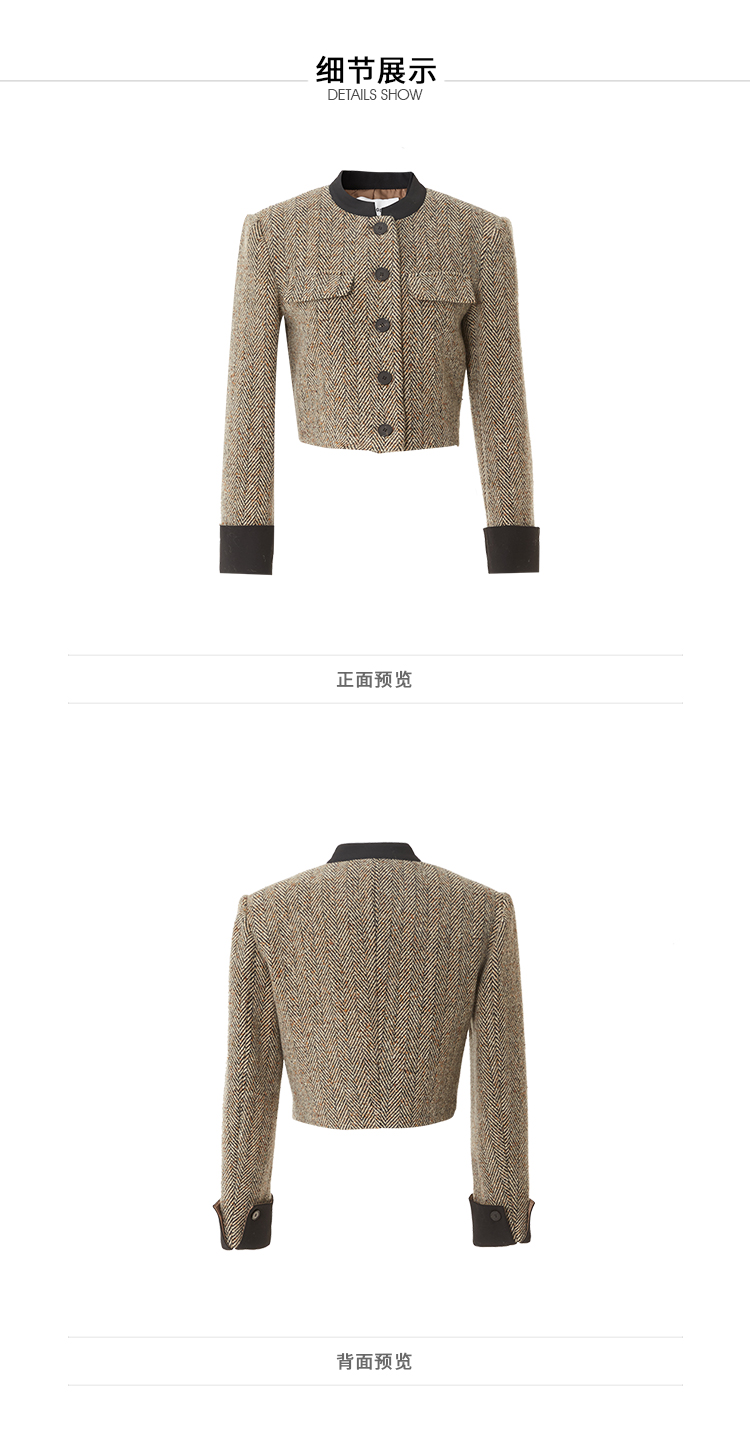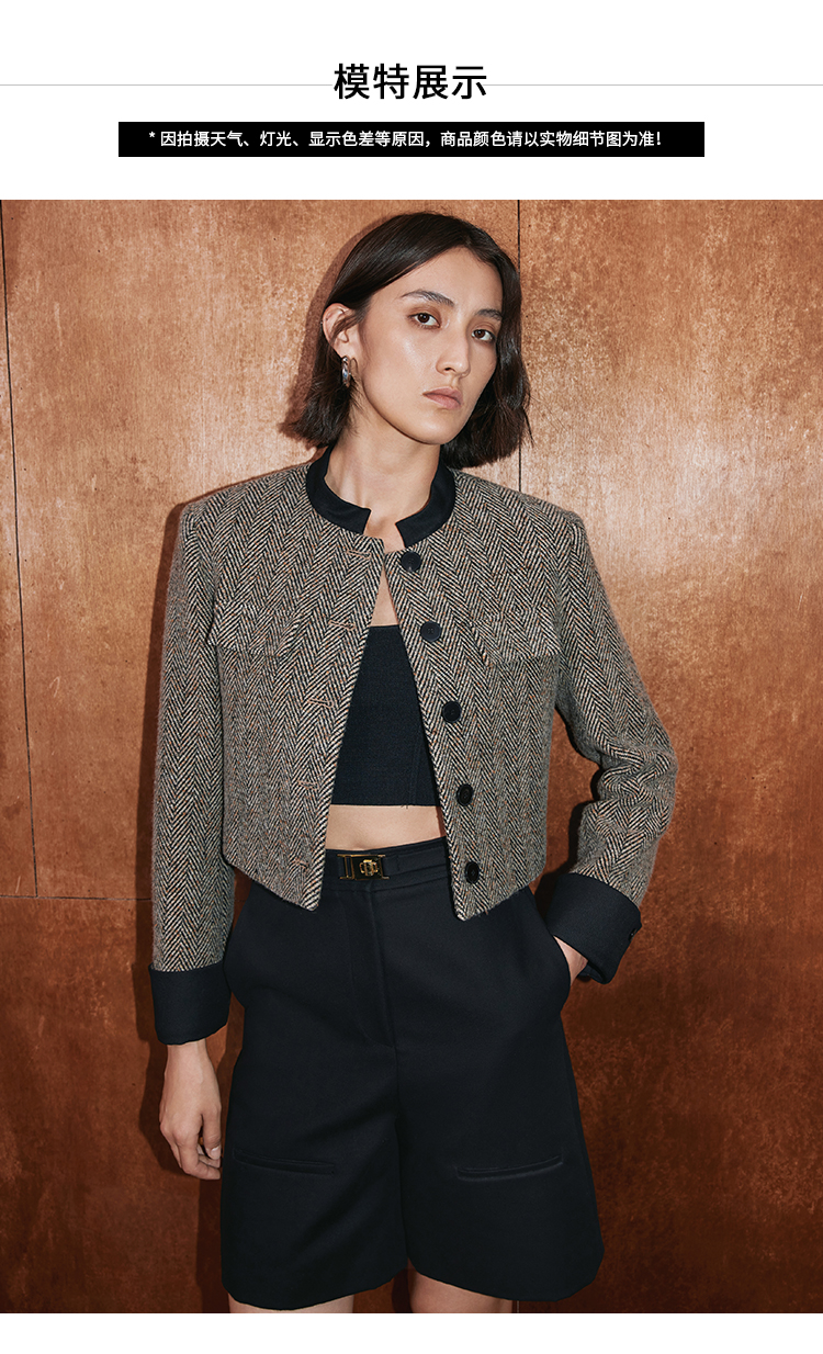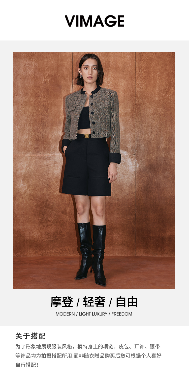 VIMAGE纬漫纪冬季新款经典撞色洋气短款大衣外套V2014611