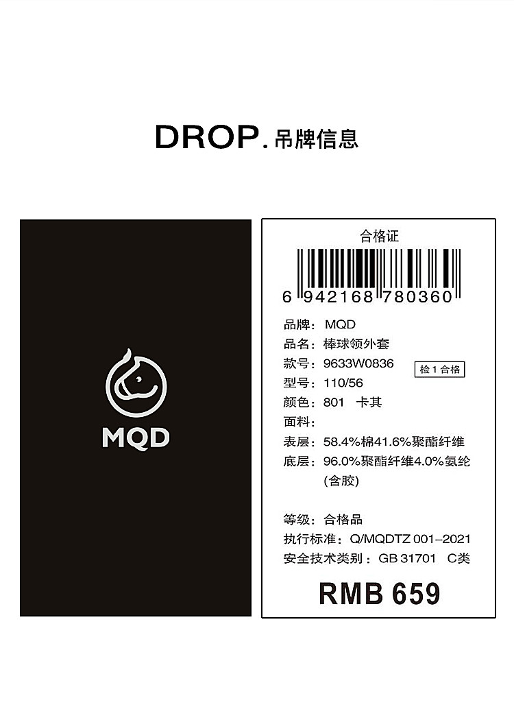 【秒2】【MQD】童装男童棒球领外套年秋冬儿童韩版学院风撞色外套