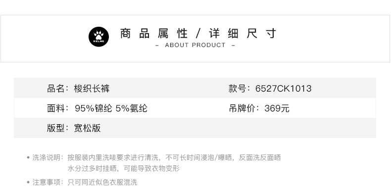 卡尔美新款马德里浪漫之境系列男士梭织长裤