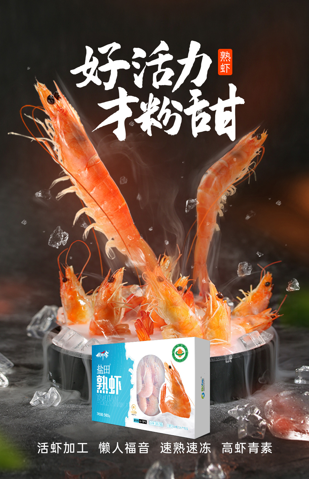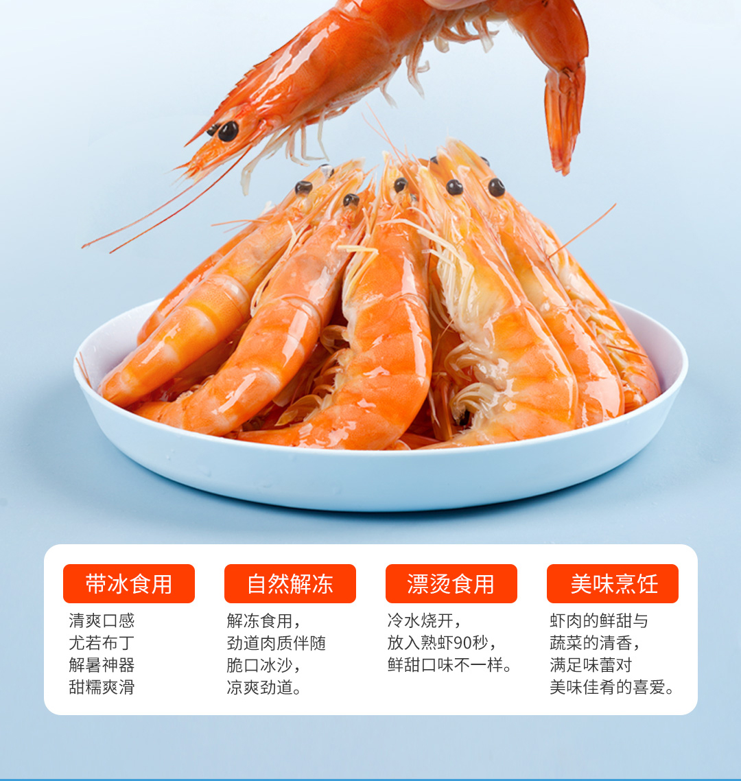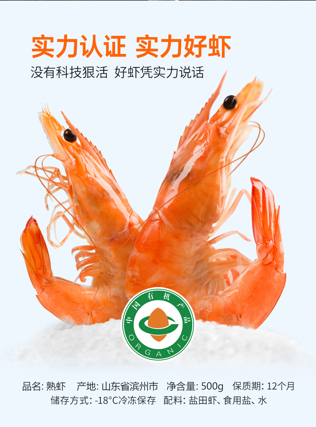 俏虾客有机带头熟虾 规格31/35 克重500g/盒*3盒