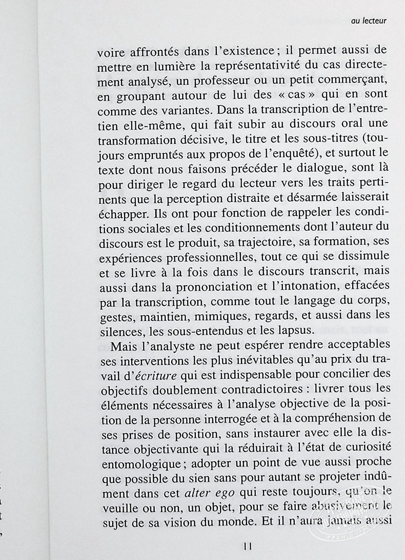 " Même si la souffrance sociale la plus visible se rencontre chez les plus démunis, il y a aussi des souffrances moins visibles à tous les niveaux du monde social. [...] On peut appartenir à un univers prestigieux, mais n'y occuper qu'une position obscure. Être ce musicien perdu dans l'orchestre qu'évoque la pièce de Patrick Süskind La Contrebasse. L'infériorité relative de ceux qui sont inférieurs parmi les supérieurs, derniers parmi les premiers, est ce qui définit les misères de position, irréductibles aux misères de condition, mais tout aussi réelles, et profondes. "