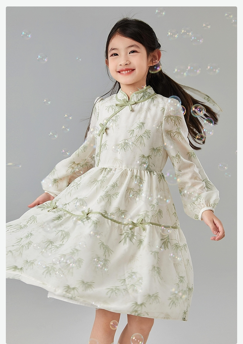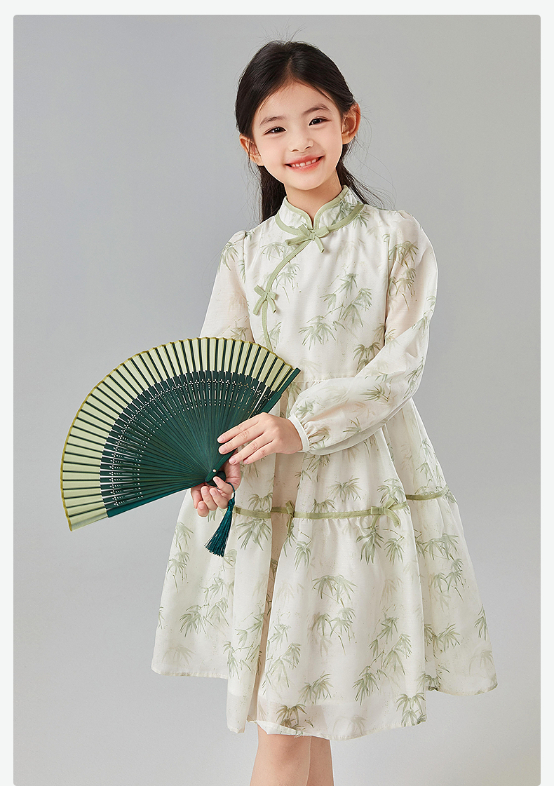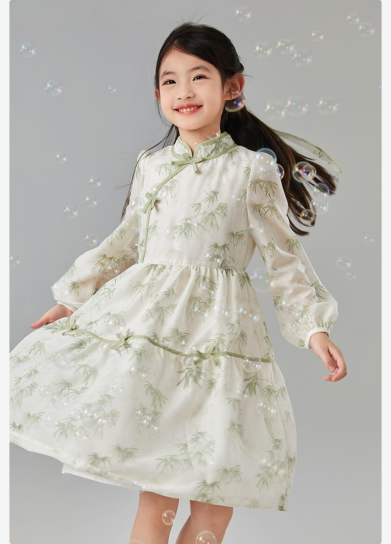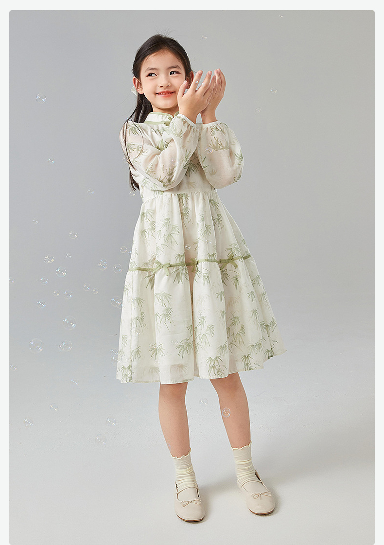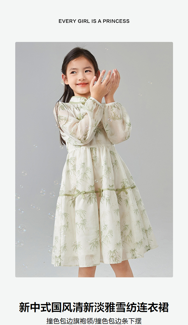 笛莎Deesha 童装女童连衣裙2025春新款新中式国风清新淡雅雪纺连衣裙