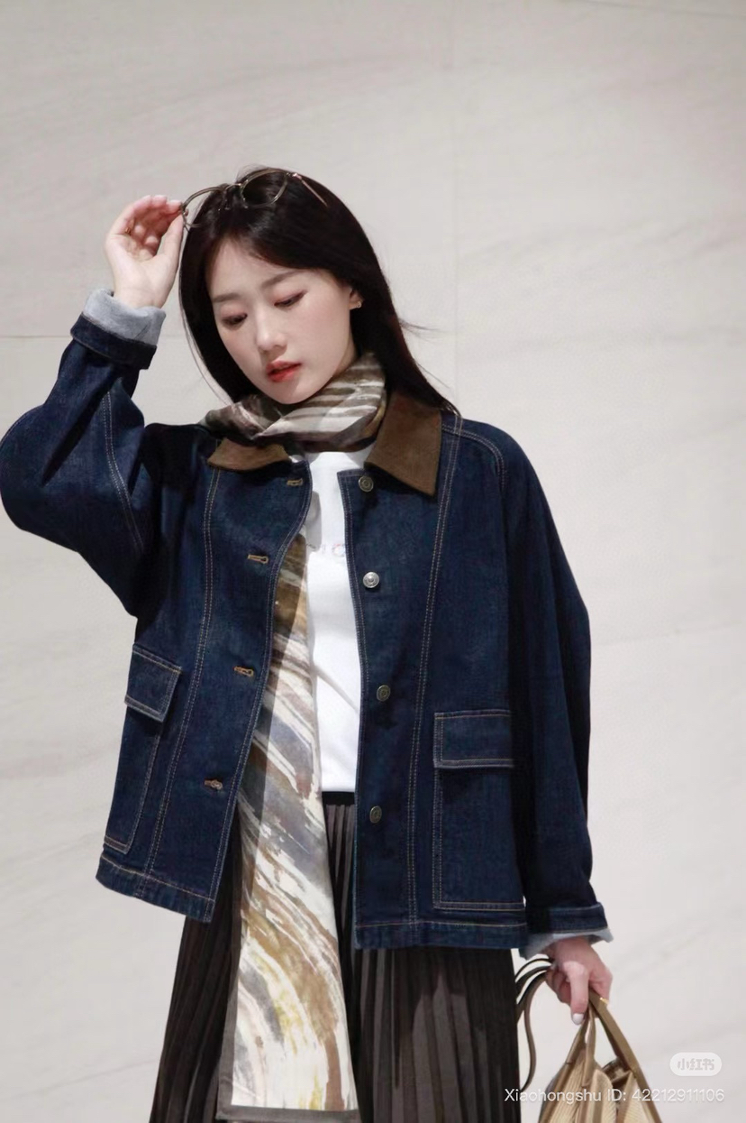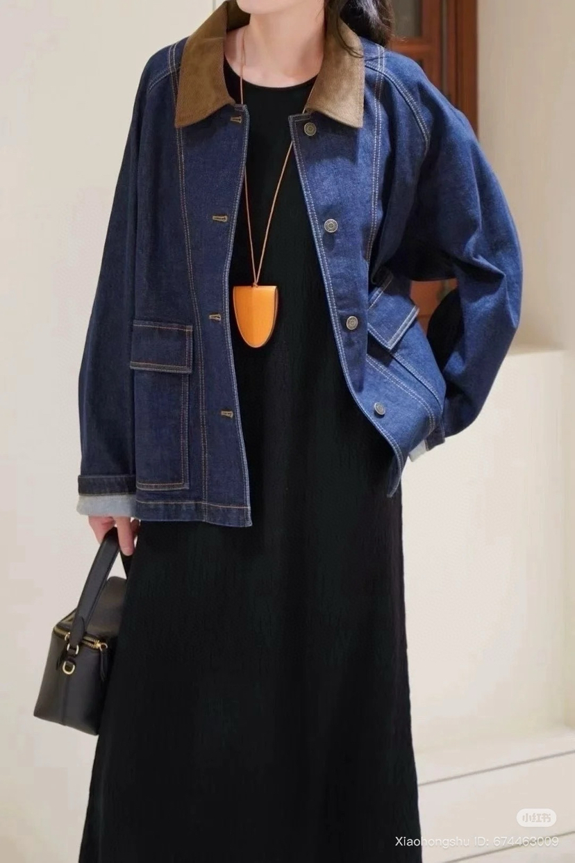 95-4 独家圆正 灯芯绒领牛仔外套 我穿38码很宽松