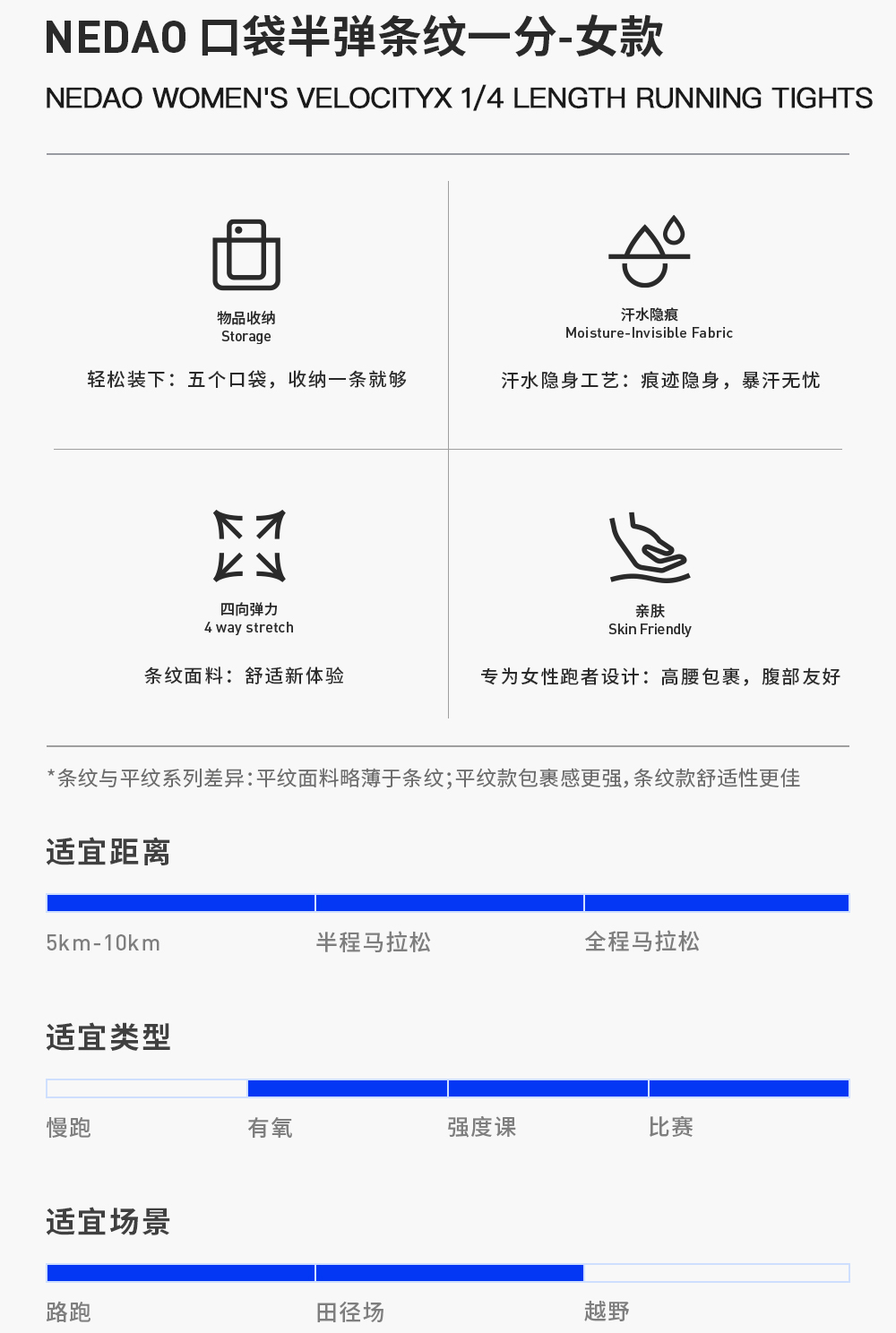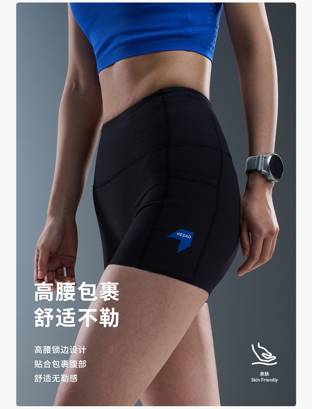 NEDAO内道汗隐痕条纹紧身半弹春夏新款女士运动训练一分跑步短裤