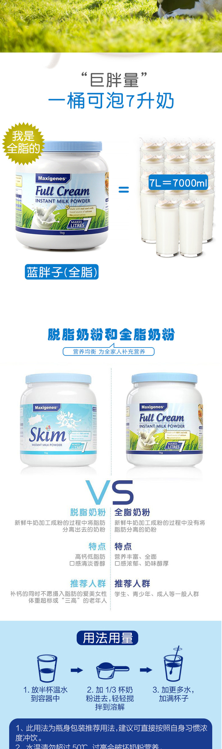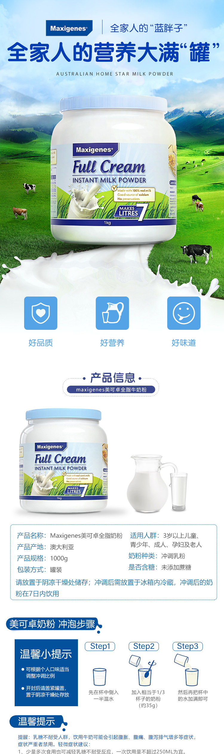 澳大利亚美可卓全脂奶粉1000g/120128 全家营养奶奶香浓郁