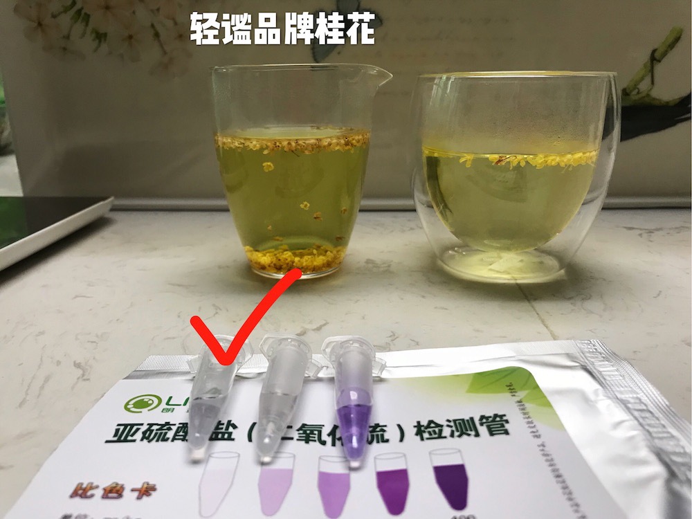 看起来鲜艳的桂花,十有八九都是硫磺熏的,大家淘宝买一盒检测器二氧化硫的试纸,一目了然,我们都测试过,这是大部分的测试结果(买了10个评价高的,基本出来如下图)