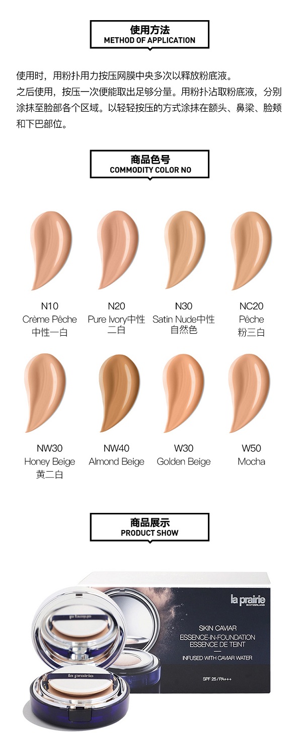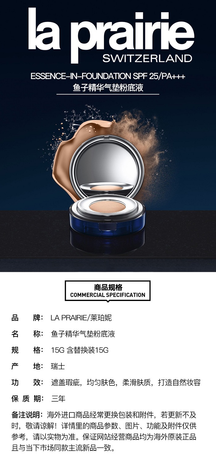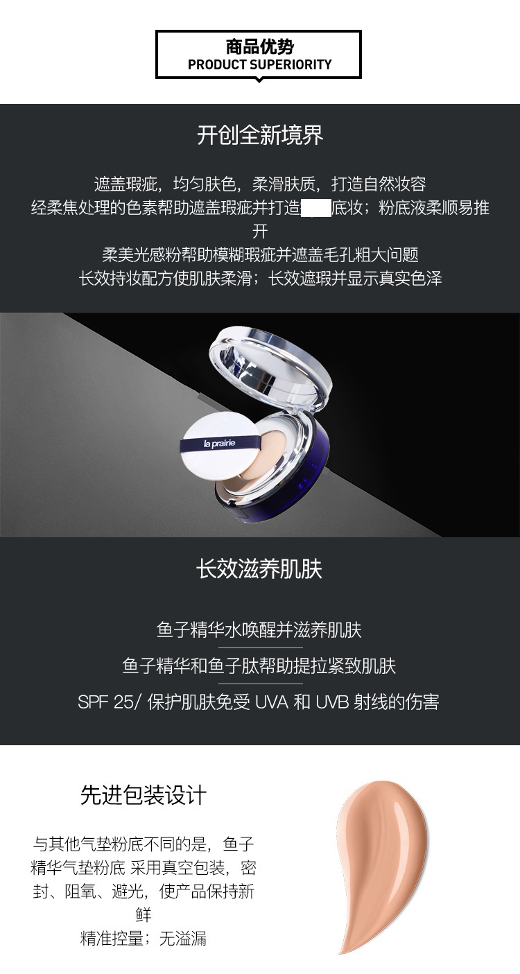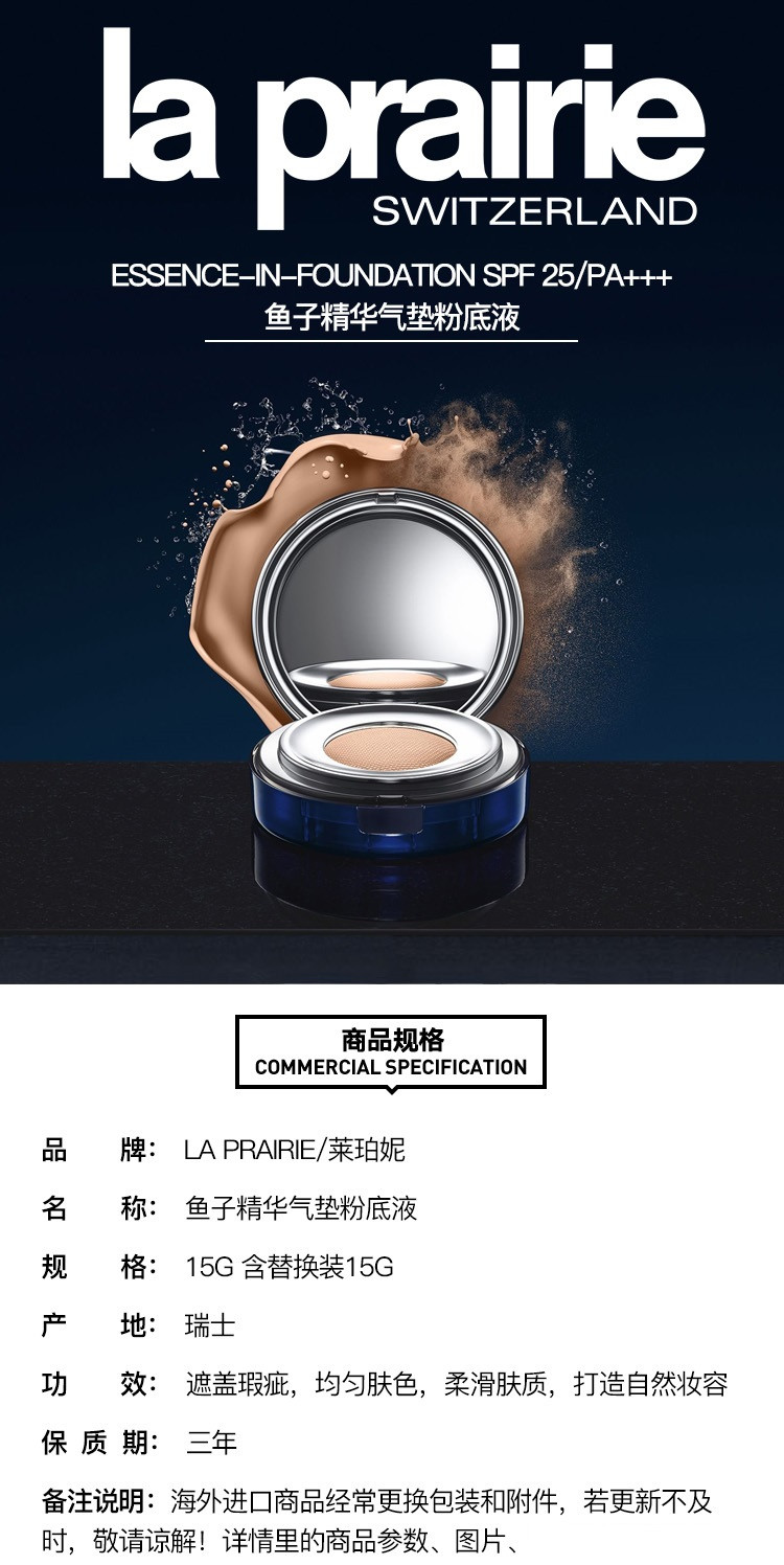 La Prairie/莱珀妮 鱼子精华气垫BB粉底液15G+替换芯15G (6色可选)