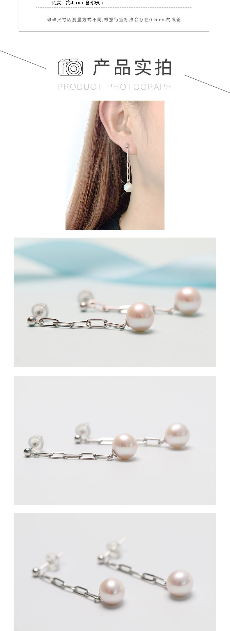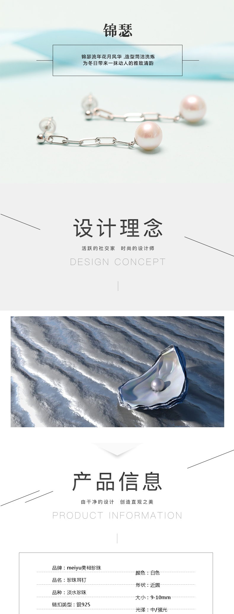 美裕 【锦瑟】银925淡水珍珠耳钉 9-10mm白 104967