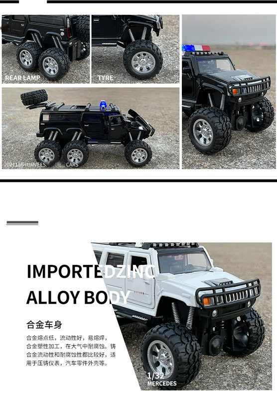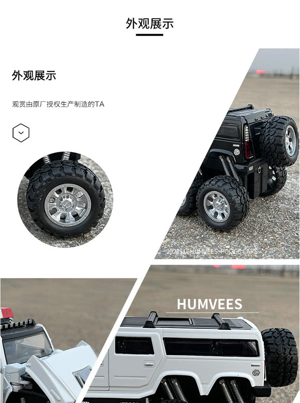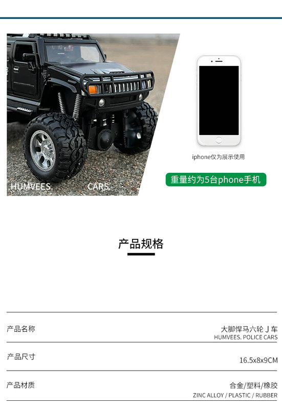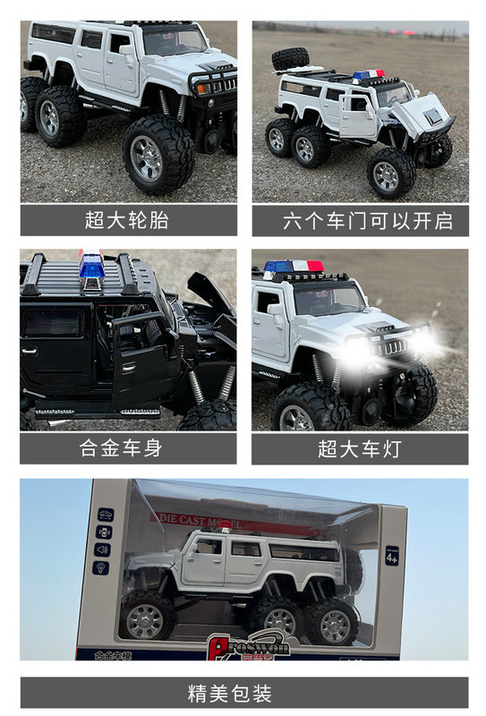 【六轮悍马J车】桌面装饰汽车模型 儿童玩具车仿真J笛车模摆件