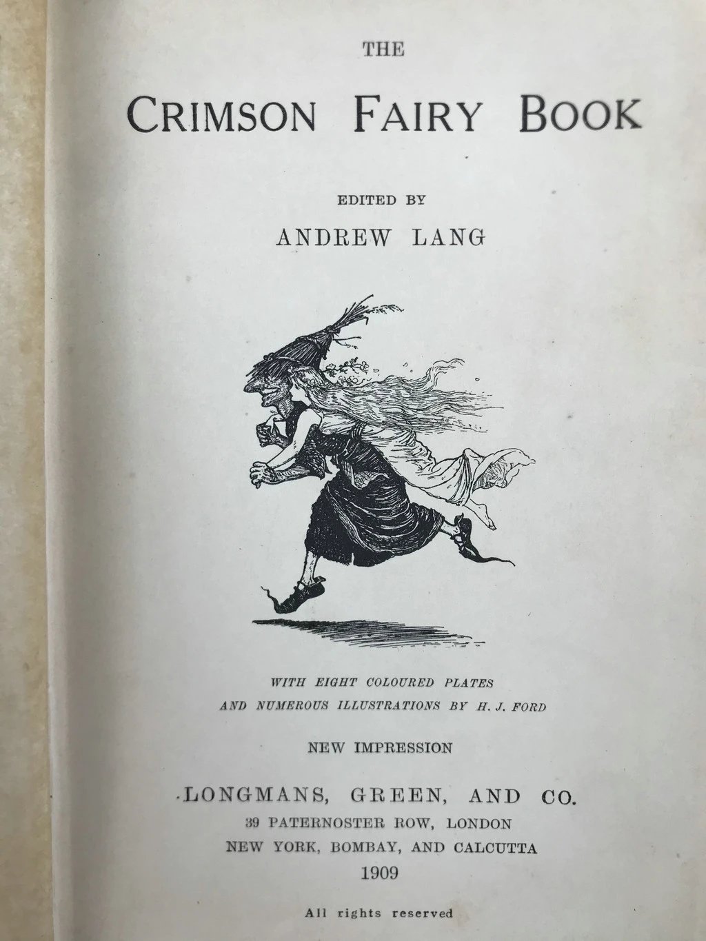 1909年 安德鲁·朗格《深红色童话书》 8幅彩色与大量黑白插图 漆布精装32开