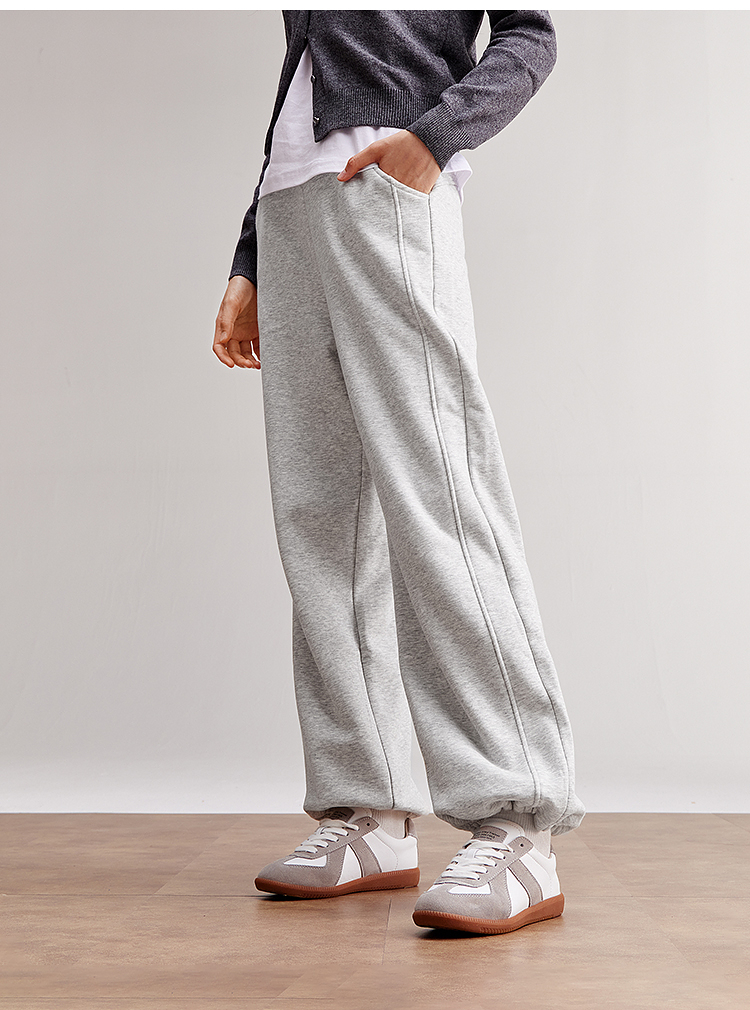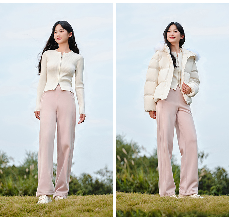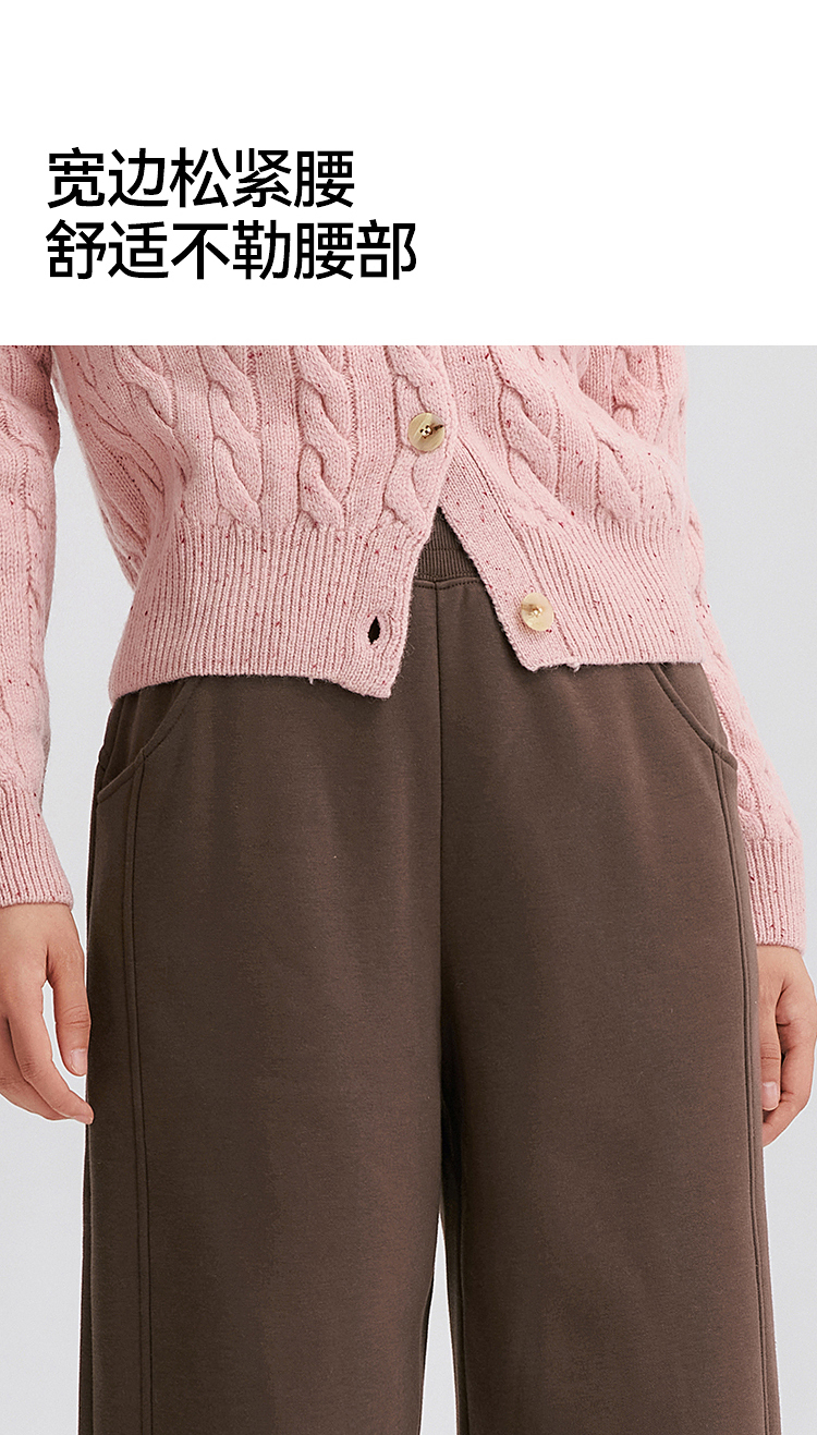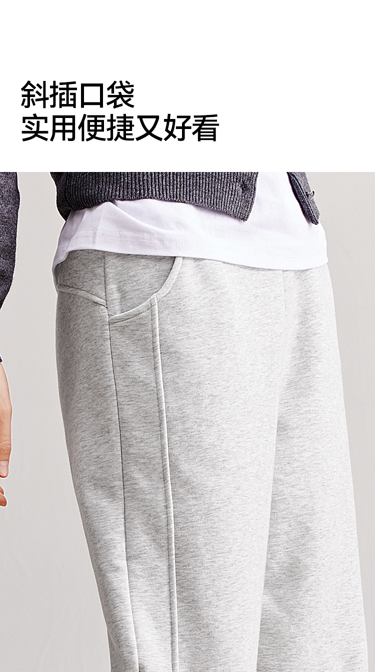森马休闲裤女发热抗菌长裤冬季新款气质摇粒绒纯色阔腿裤百搭