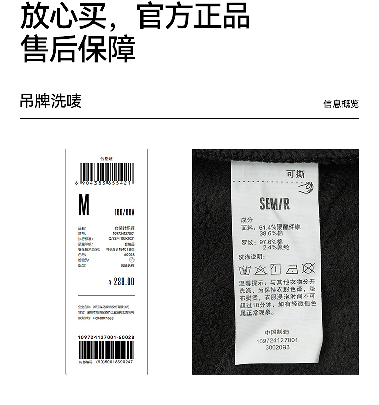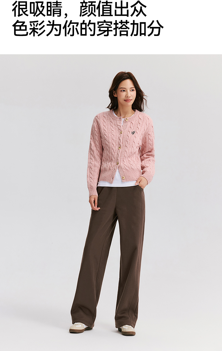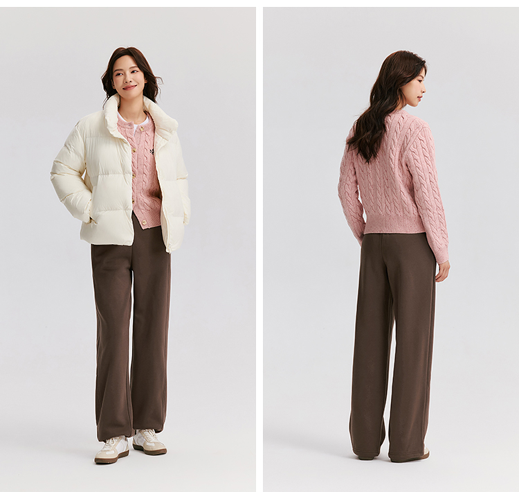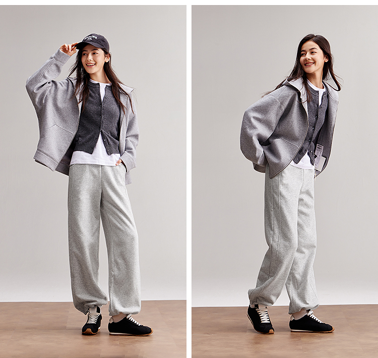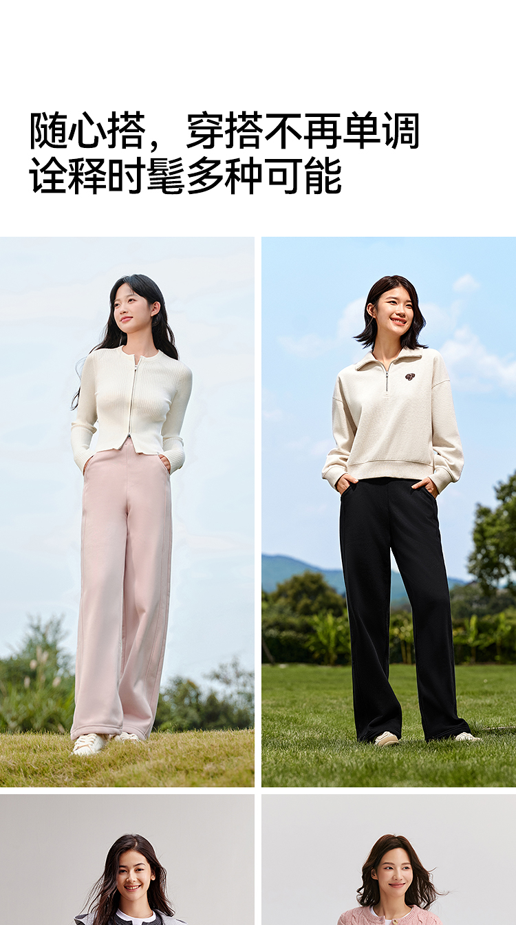 森马休闲裤女发热抗菌长裤冬季新款气质摇粒绒纯色阔腿裤百搭