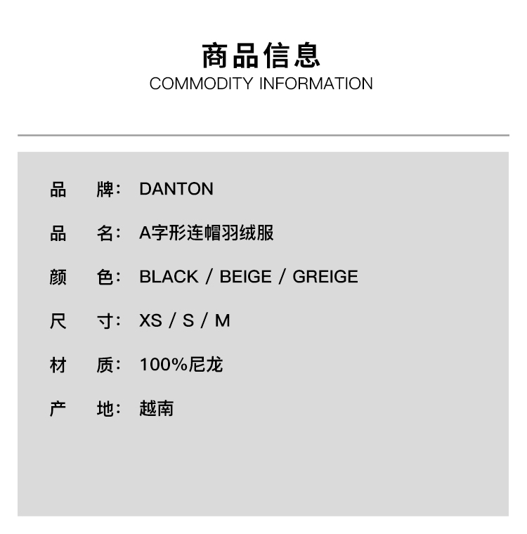 DANTON MIDDLE DOWN HOODED JACKET 女装A字形连帽羽绒服