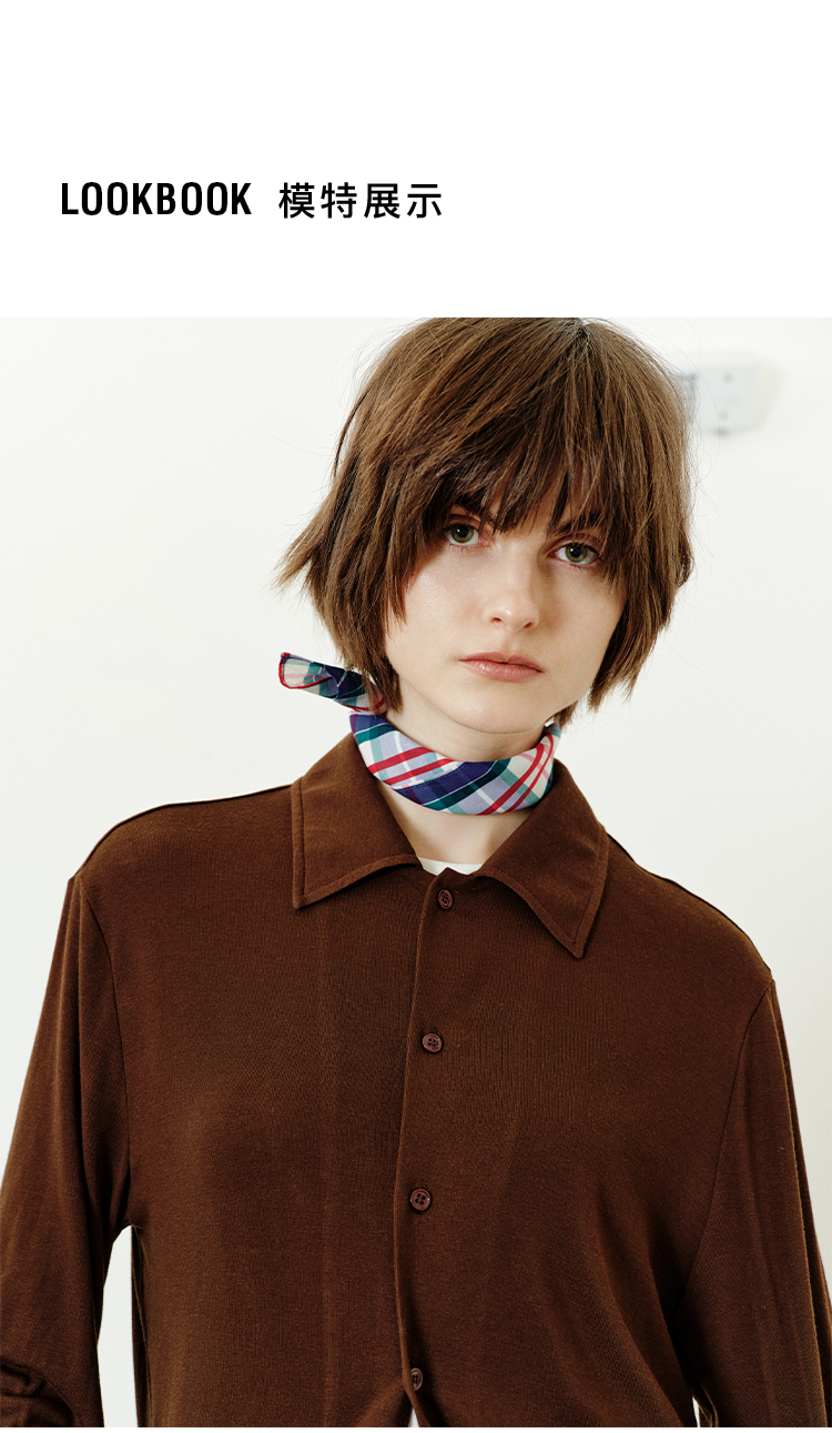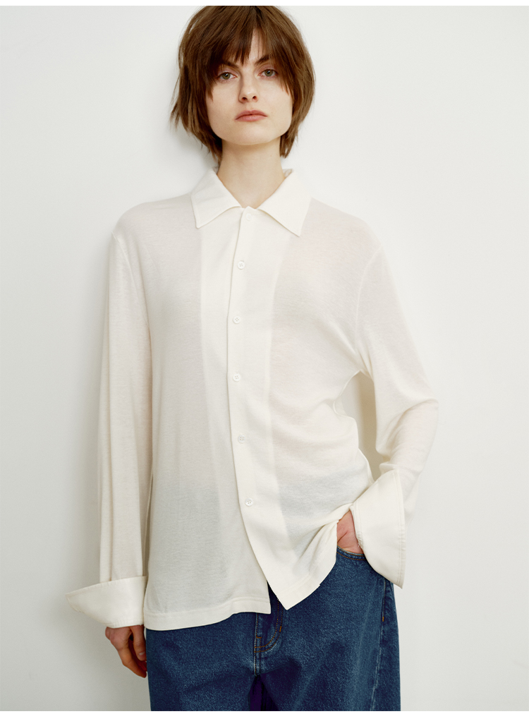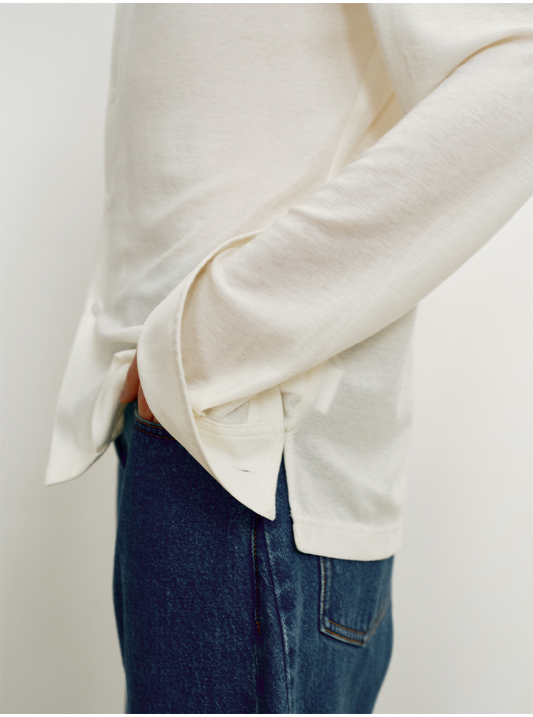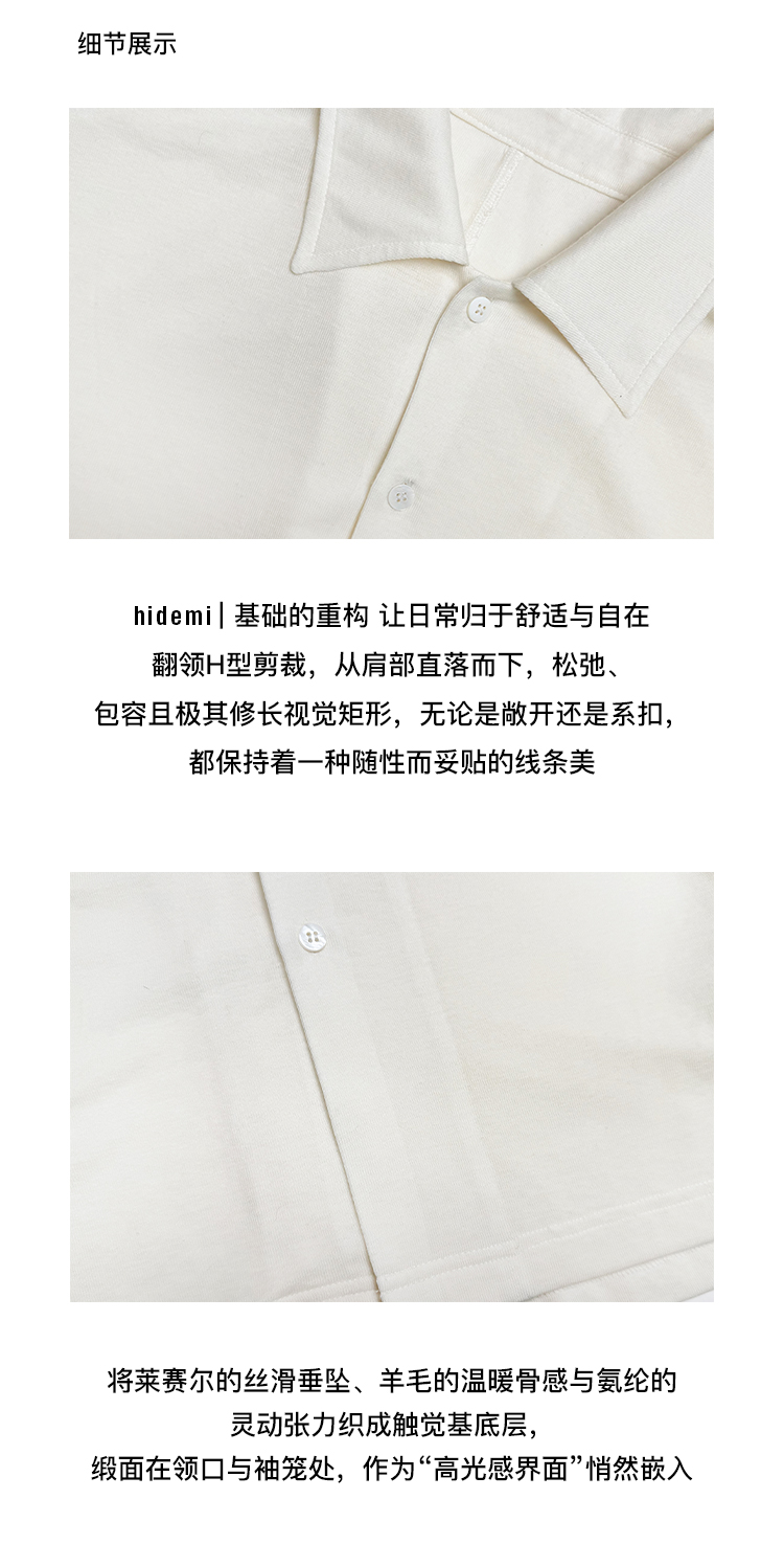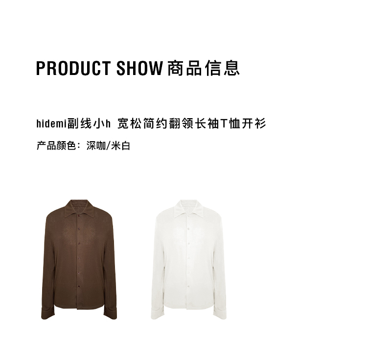 hidemi副线小h 宽松简约翻领长袖T恤开衫