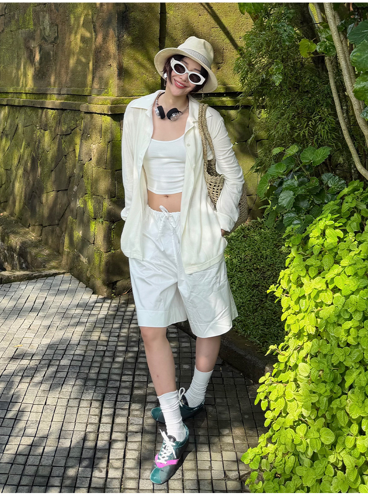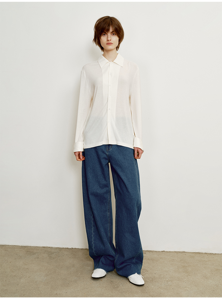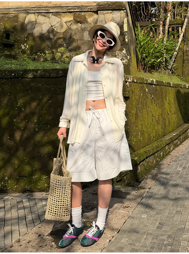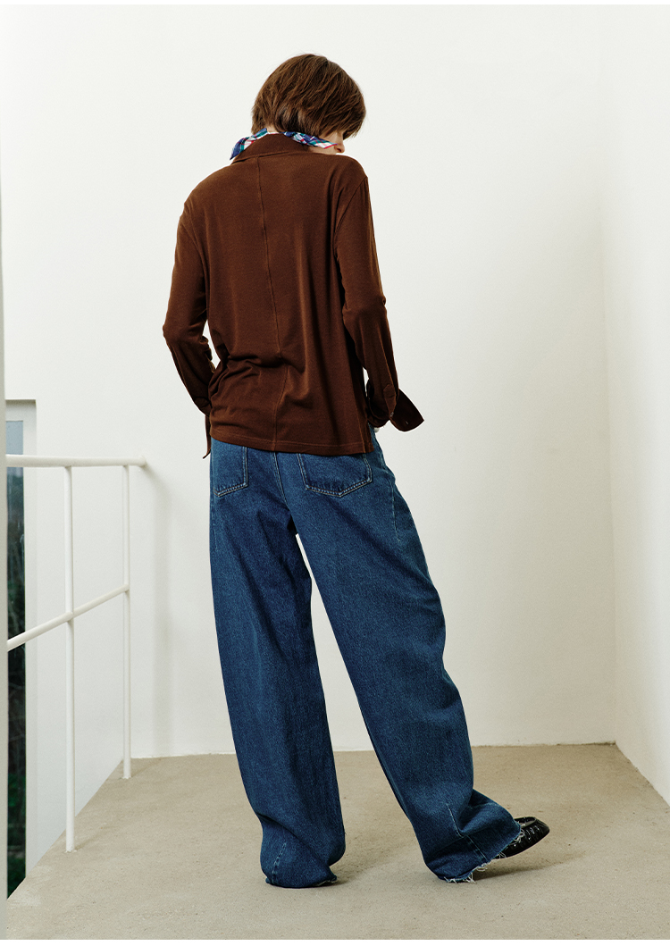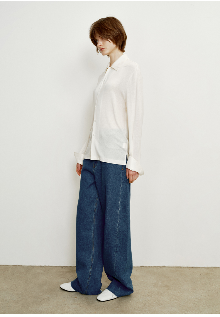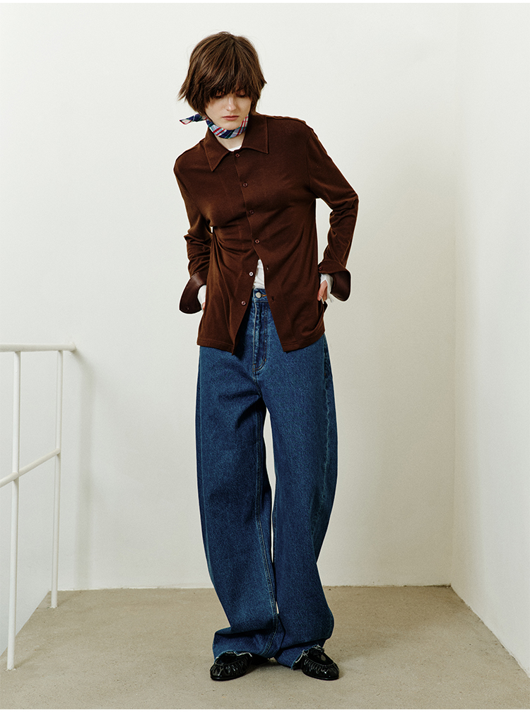 hidemi副线小h 宽松简约翻领长袖T恤开衫