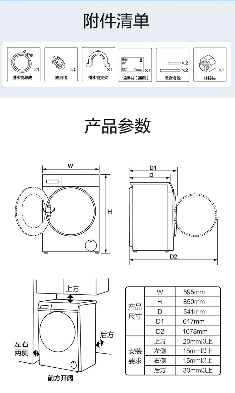 海尔(Haier)洗衣机 XQG120-HBD14596TWLU1