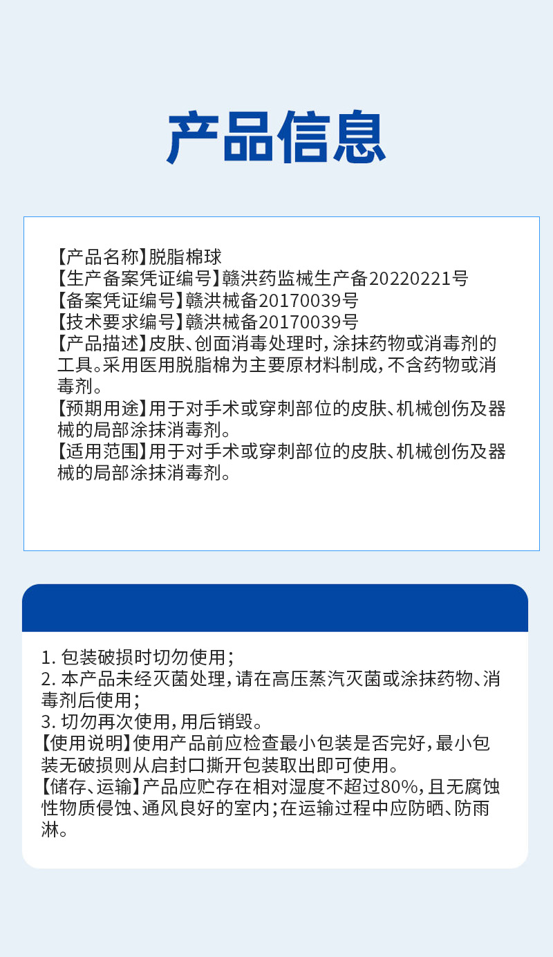 (器械号)朝伊康封口脱脂棉球 10g/袋 有效期20280601